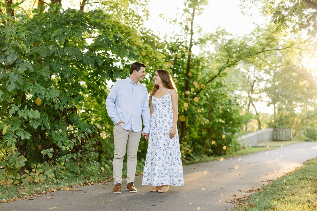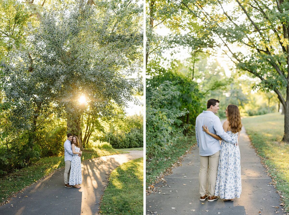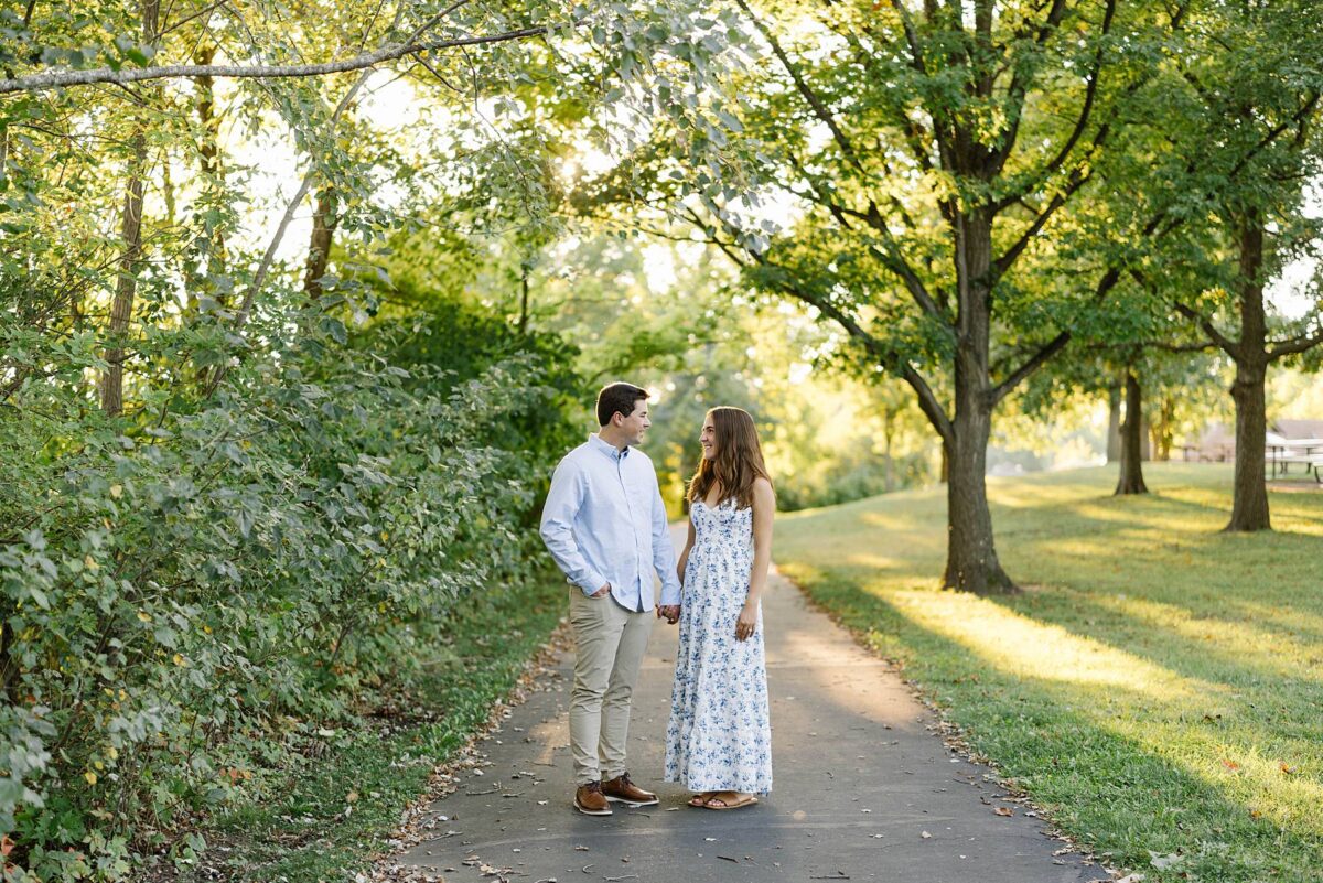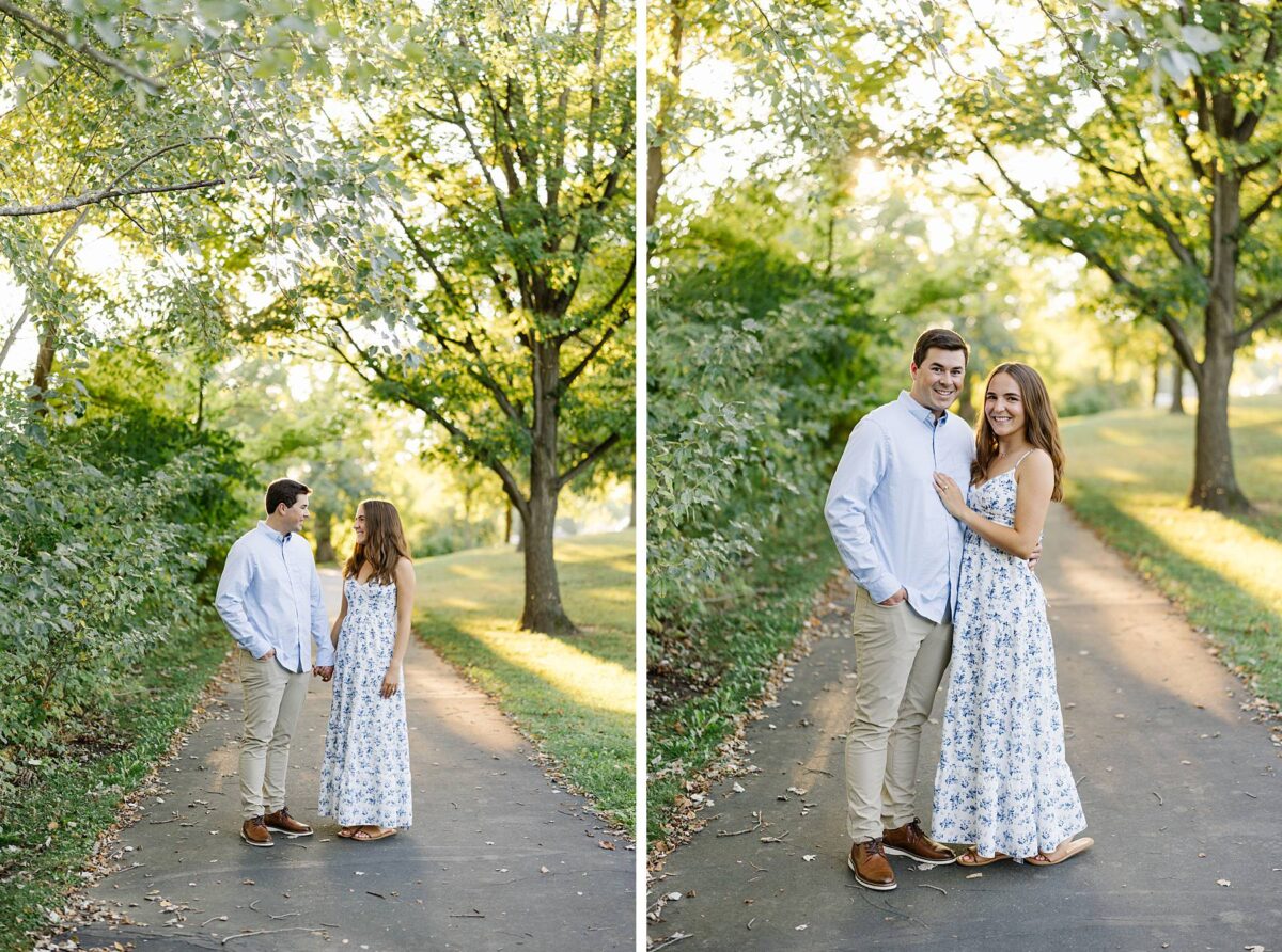 We simply can not get enough of this breathtaking fall weather for our engagement sessions! It’s always an incredible honor to capture this exciting milestone for so many amazing couples, and when Shelby reached out to book her wedding this past summer, we were thrilled! We had photographed weddings for two of her cousins, and we are beyond grateful for their referrals! Shelby and Mitch are the sweetest couple ever and love spending time together outdoors. They were hoping to schedule their session at a park with a lake, and we knew of the perfect place. We met at Clifton E. French Regional Park on an absolutely gorgeous evening, and set off to explore together.