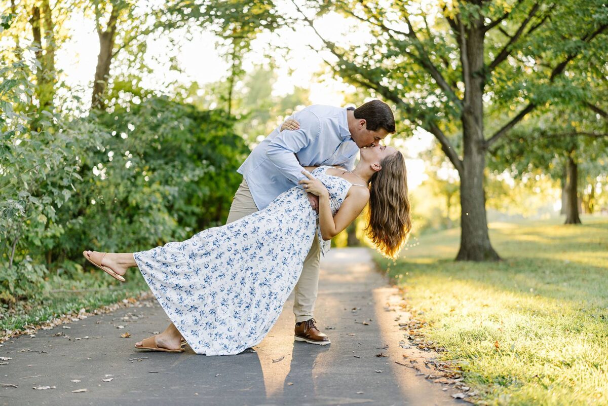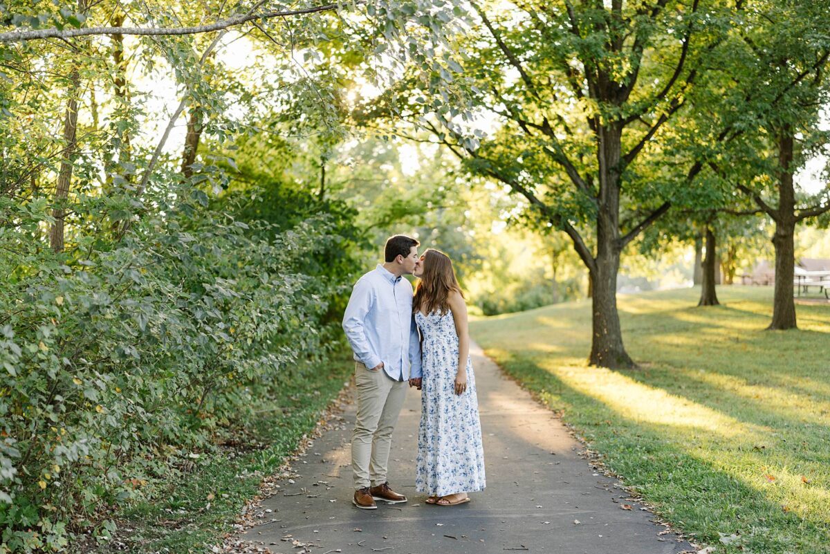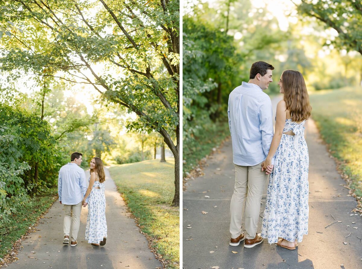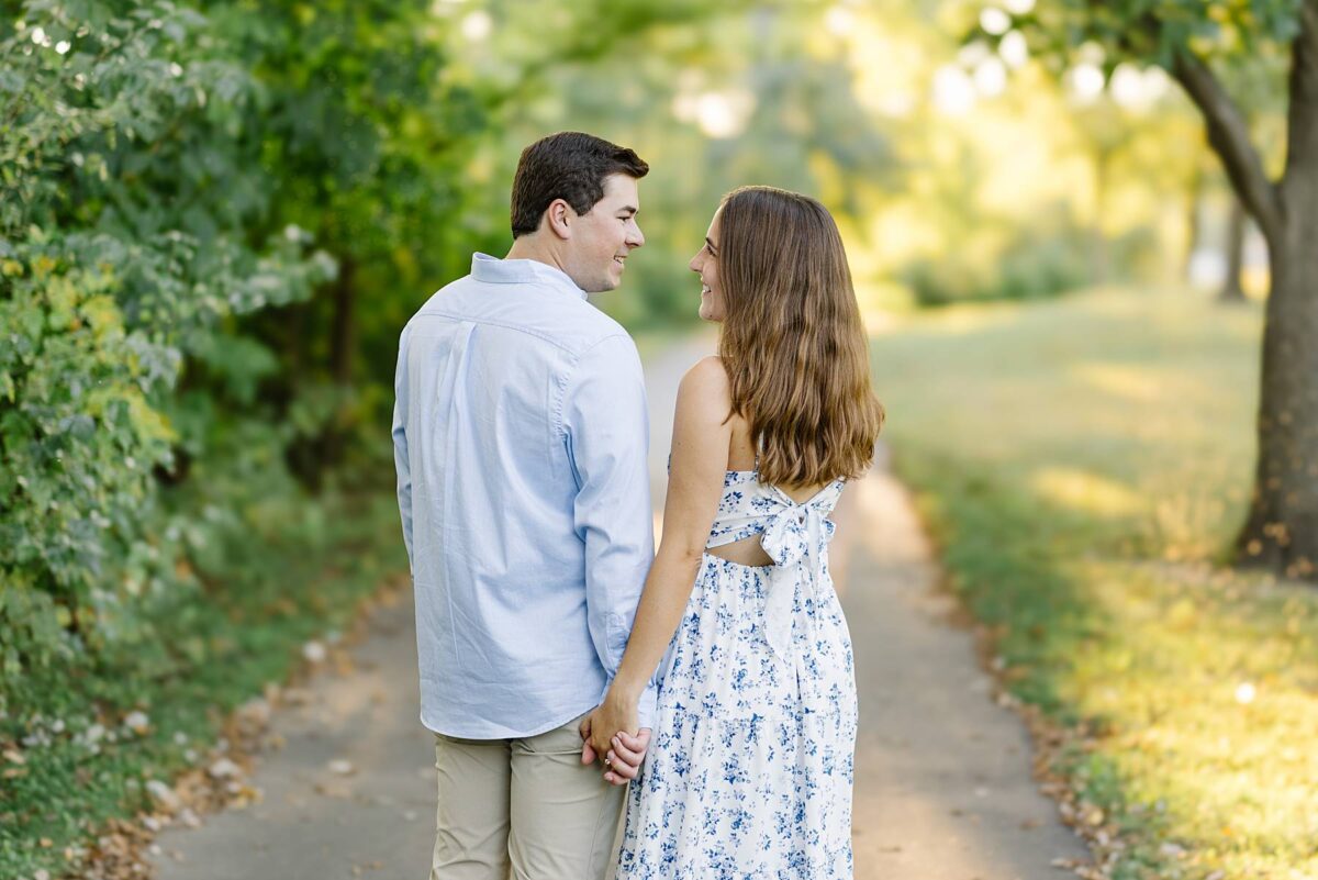 We simply can not get enough of this breathtaking fall weather for our engagement sessions! It’s always an incredible honor to capture this exciting milestone for so many amazing couples, and when Shelby reached out to book her wedding this past summer, we were thrilled! We had photographed weddings for two of her cousins, and we are beyond grateful for their referrals! Shelby and Mitch are the sweetest couple ever and love spending time together outdoors. They were hoping to schedule their session at a park with a lake, and we knew of the perfect place. We met at Clifton E. French Regional Park on an absolutely gorgeous evening, and set off to explore together.