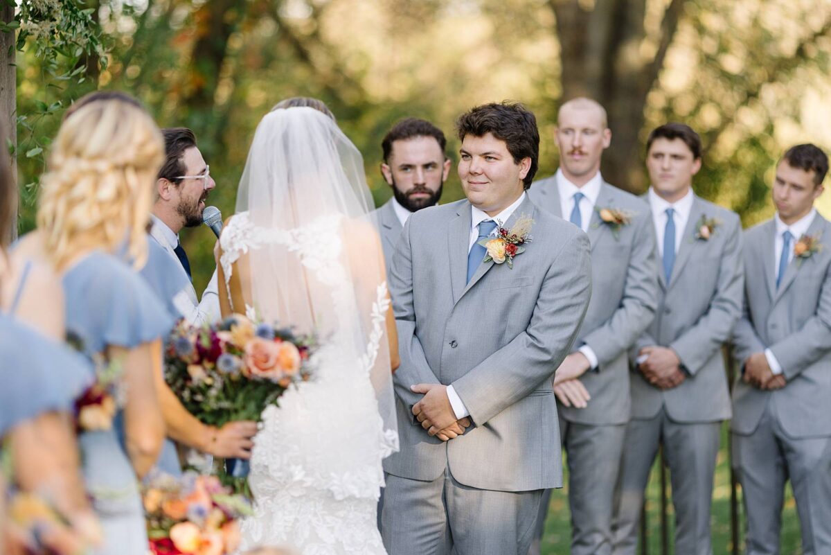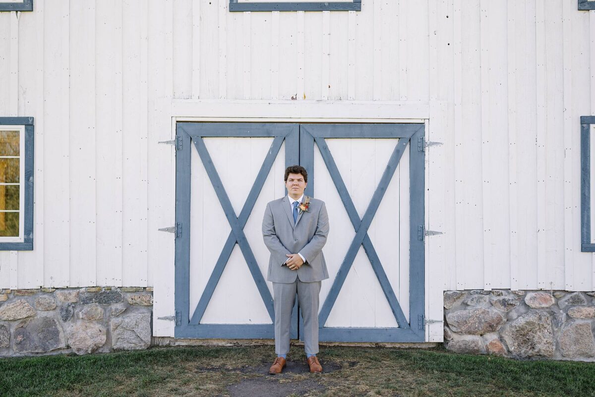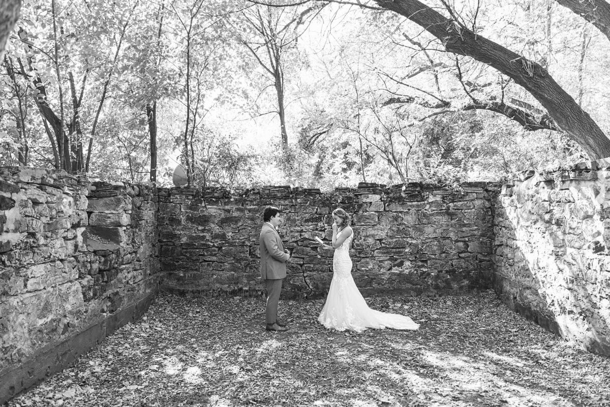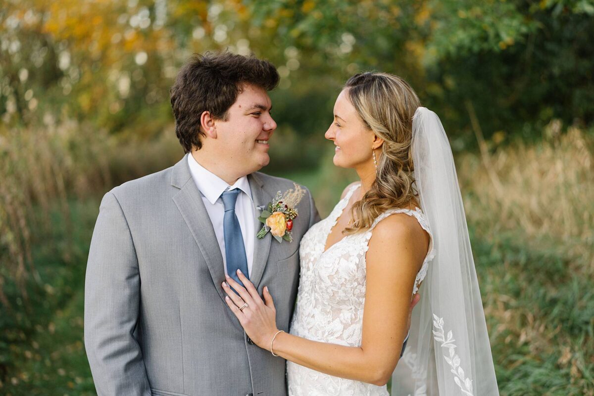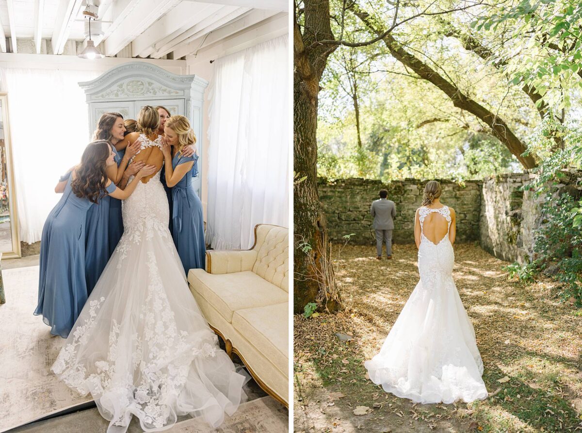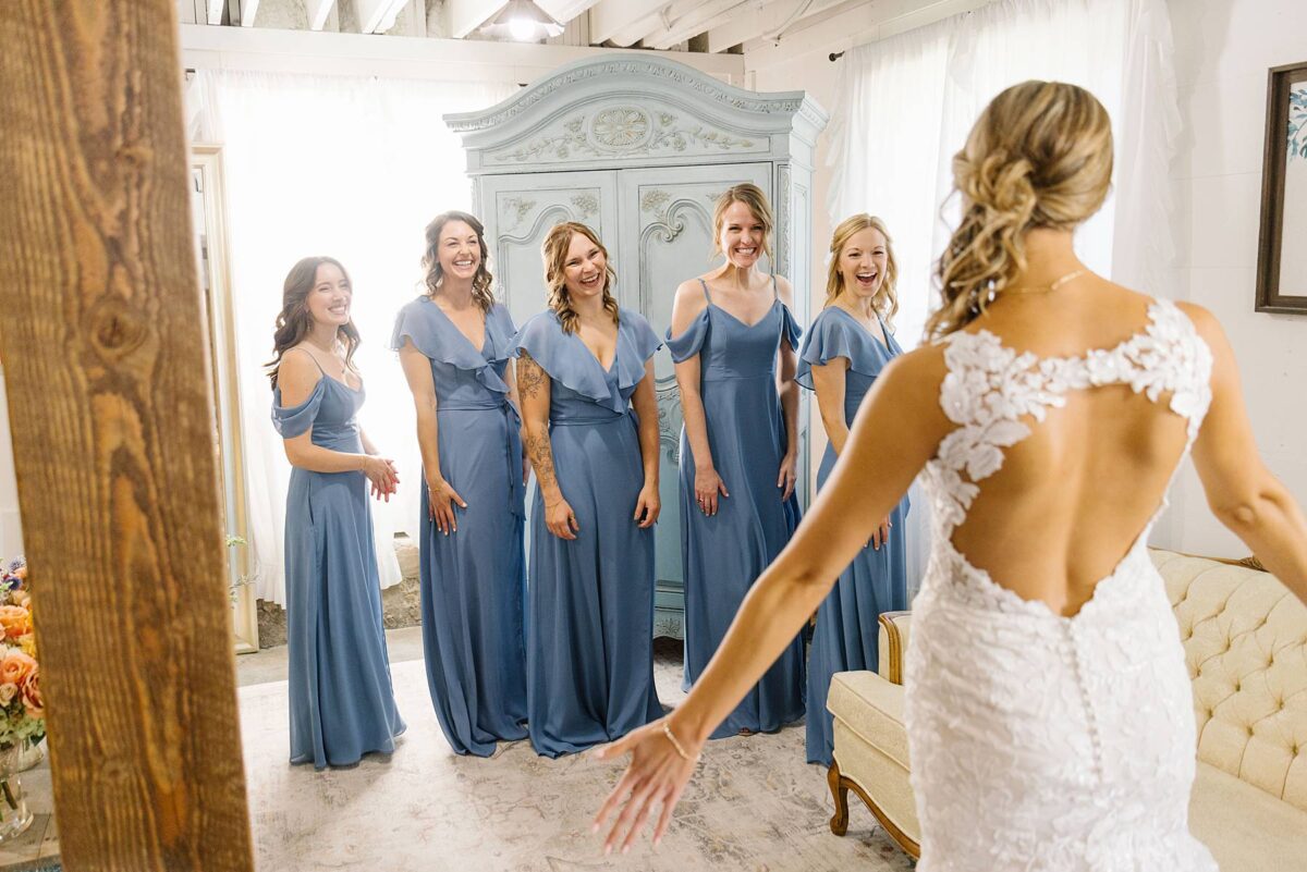 The incredible Bloom Lake Barn in Shafer could not have been a more perfect place to host Maren and Austin’s big day! Their team was phenomenal to work with, and they ensured every single detail was nothing short of perfection! The ladies had spent the morning in the bridal suite preparing with Hair by J. Lu, and we captured photos in their matching pjs along with documenting the details including rings from Helzberg Diamonds. Maren put on her gorgeous gown from Our Shop Bridal and stepped outside to meet her groom. The two shared the sweetest first look and private vows before we set off to explore the grounds for portraits.