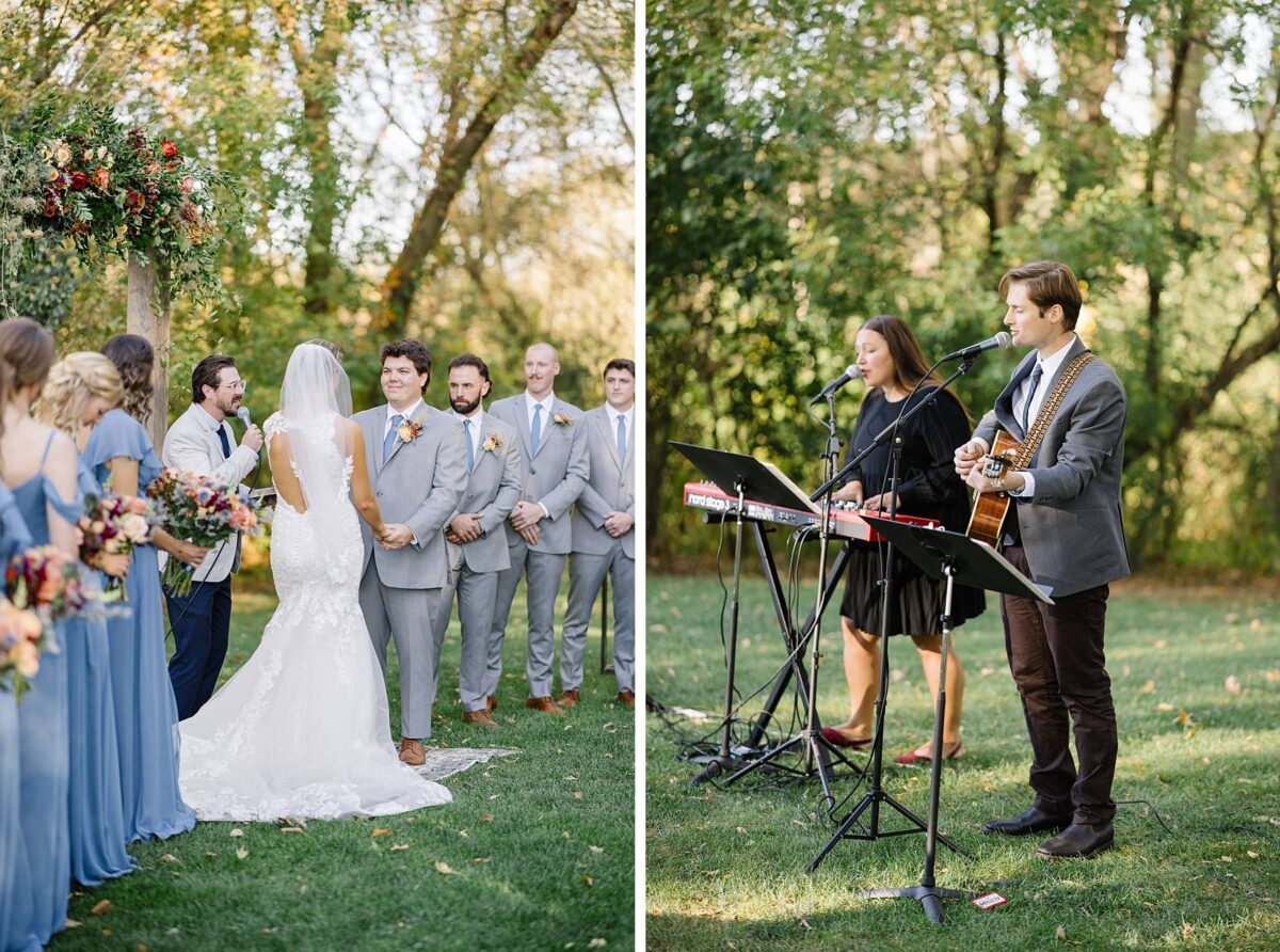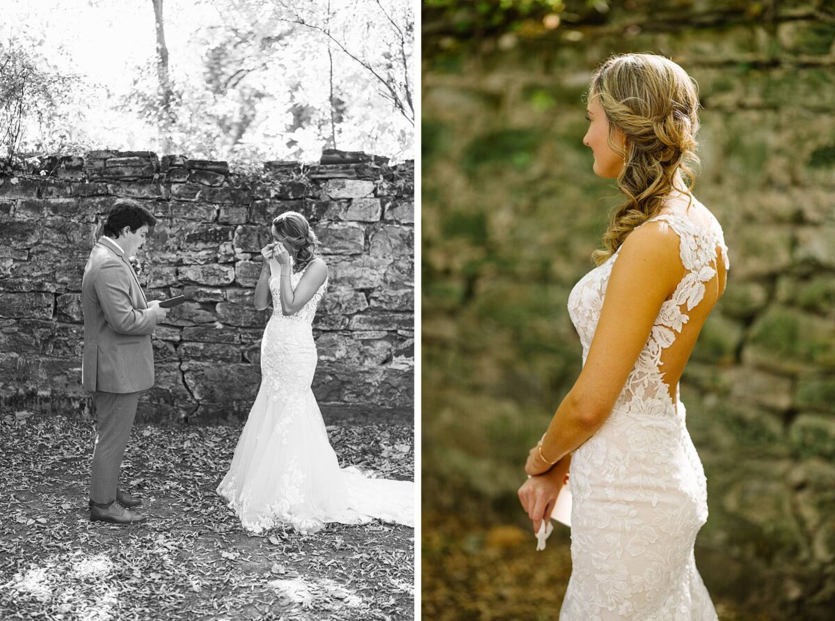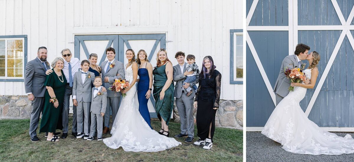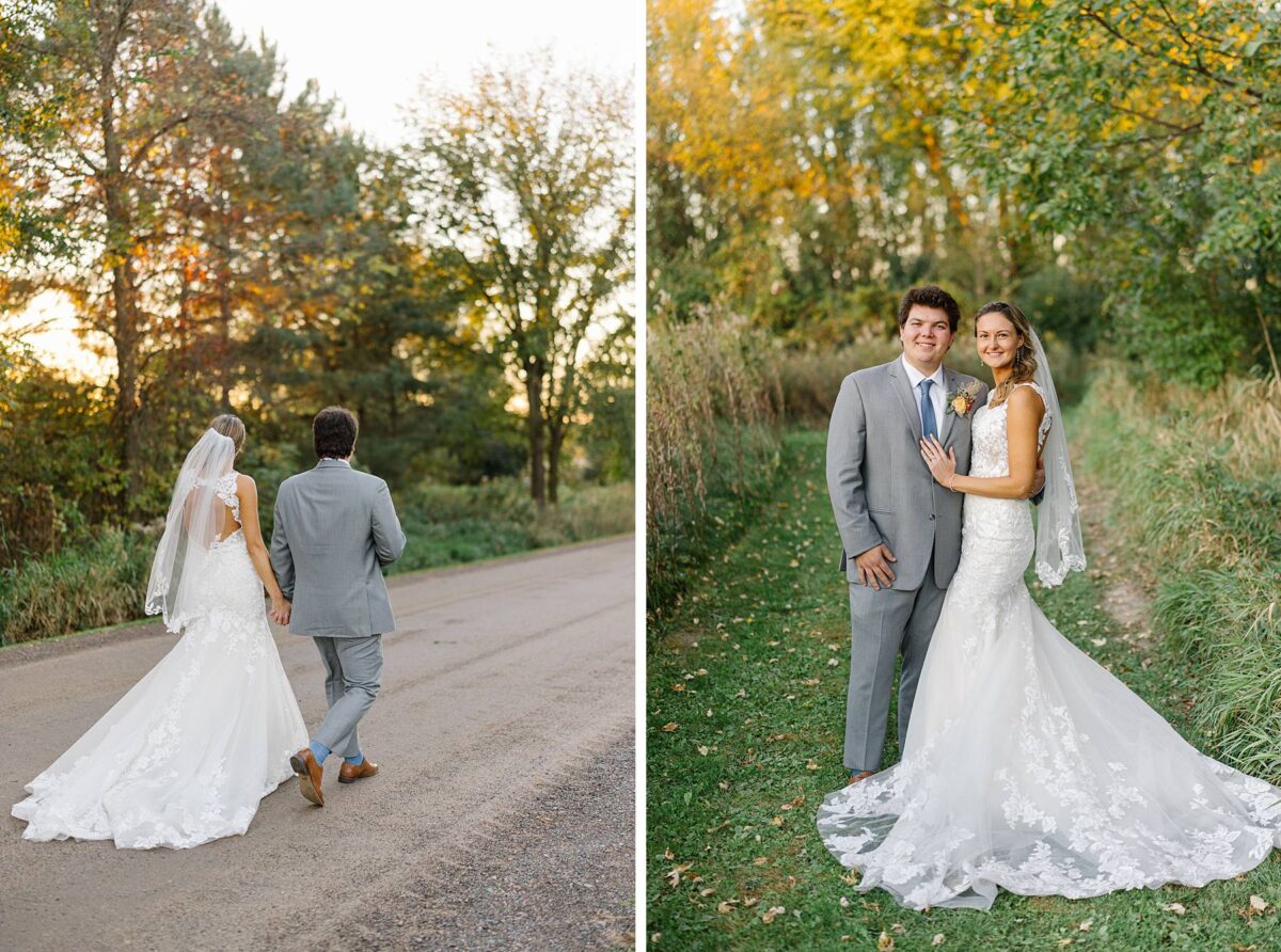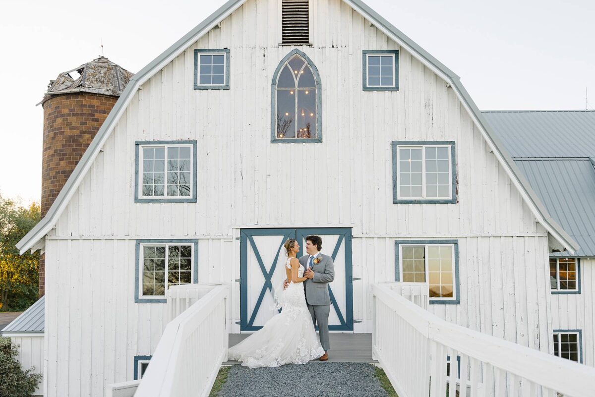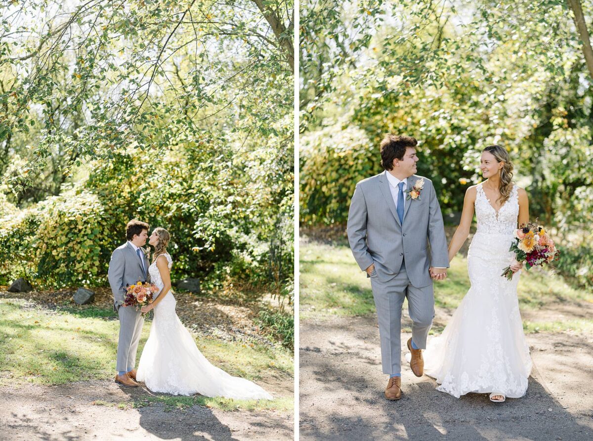 The incredible Bloom Lake Barn in Shafer could not have been a more perfect place to host Maren and Austin’s big day! Their team was phenomenal to work with, and they ensured every single detail was nothing short of perfection! The ladies had spent the morning in the bridal suite preparing with Hair by J. Lu, and we captured photos in their matching pjs along with documenting the details including rings from Helzberg Diamonds. Maren put on her gorgeous gown from Our Shop Bridal and stepped outside to meet her groom. The two shared the sweetest first look and private vows before we set off to explore the grounds for portraits.