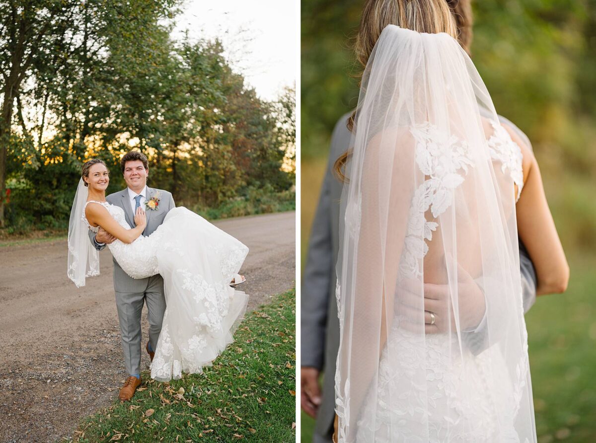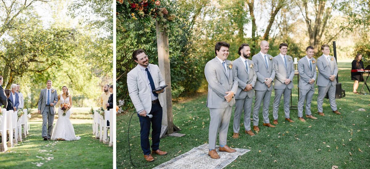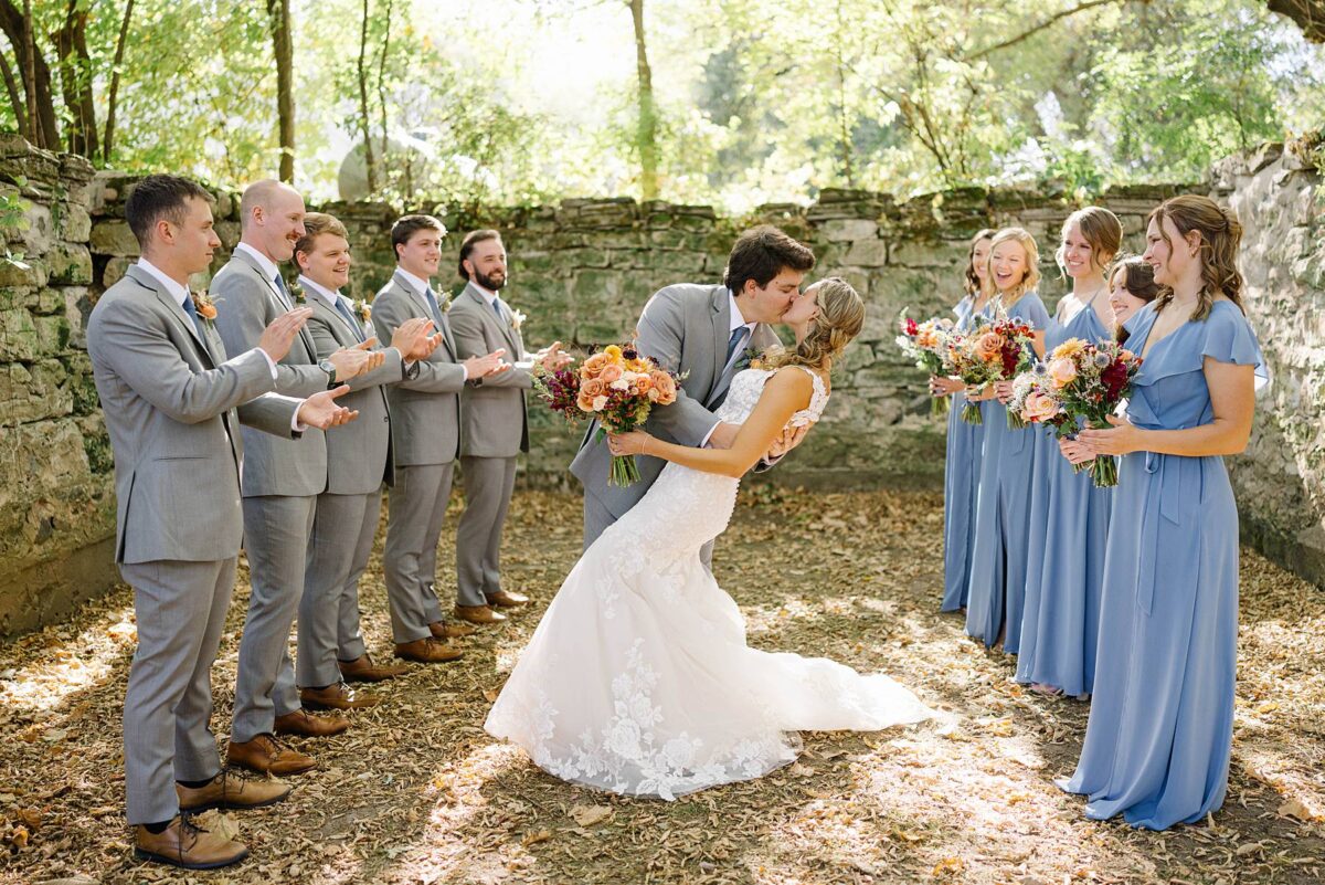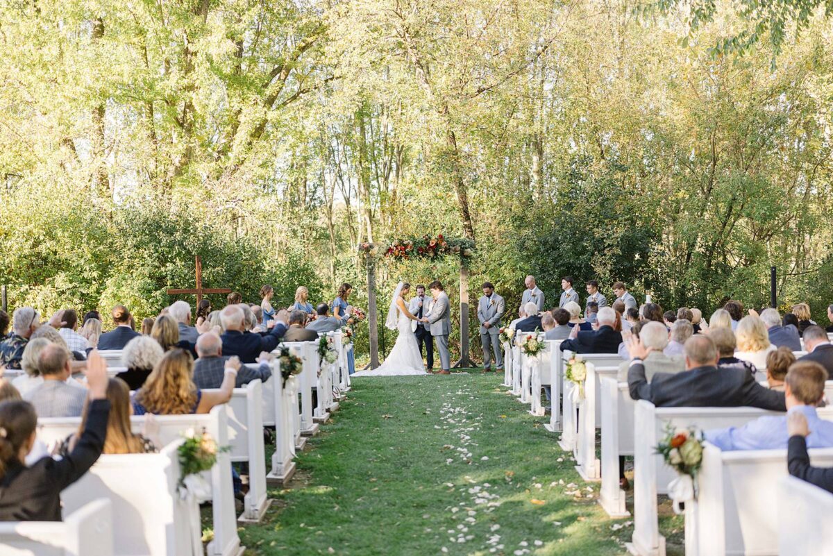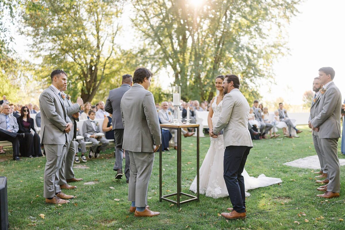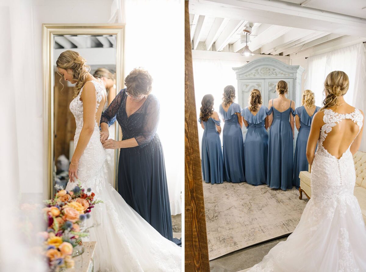 The incredible Bloom Lake Barn in Shafer could not have been a more perfect place to host Maren and Austin’s big day! Their team was phenomenal to work with, and they ensured every single detail was nothing short of perfection! The ladies had spent the morning in the bridal suite preparing with Hair by J. Lu, and we captured photos in their matching pjs along with documenting the details including rings from Helzberg Diamonds. Maren put on her gorgeous gown from Our Shop Bridal and stepped outside to meet her groom. The two shared the sweetest first look and private vows before we set off to explore the grounds for portraits.