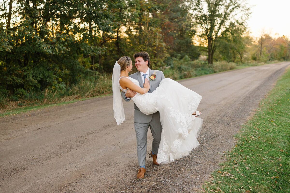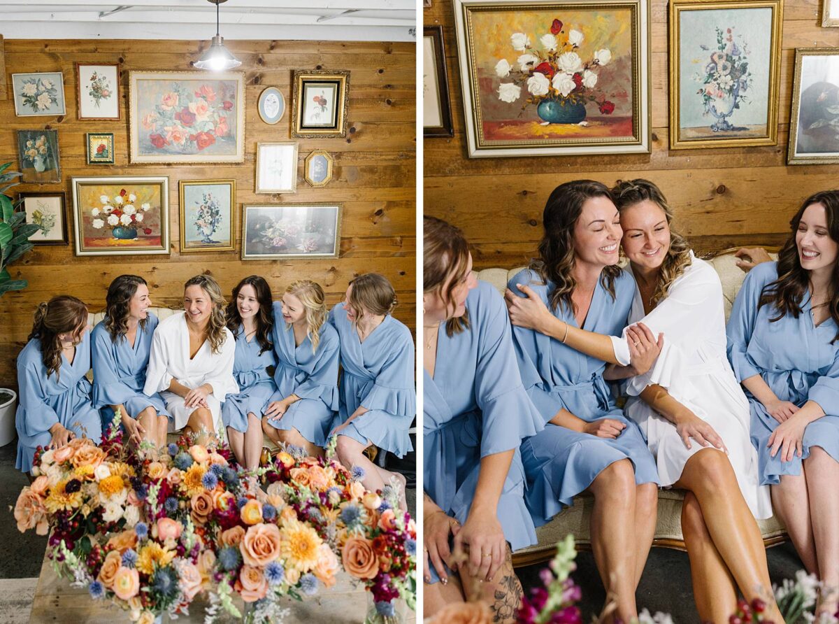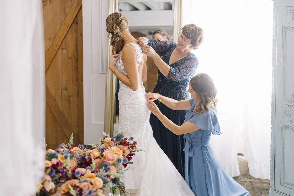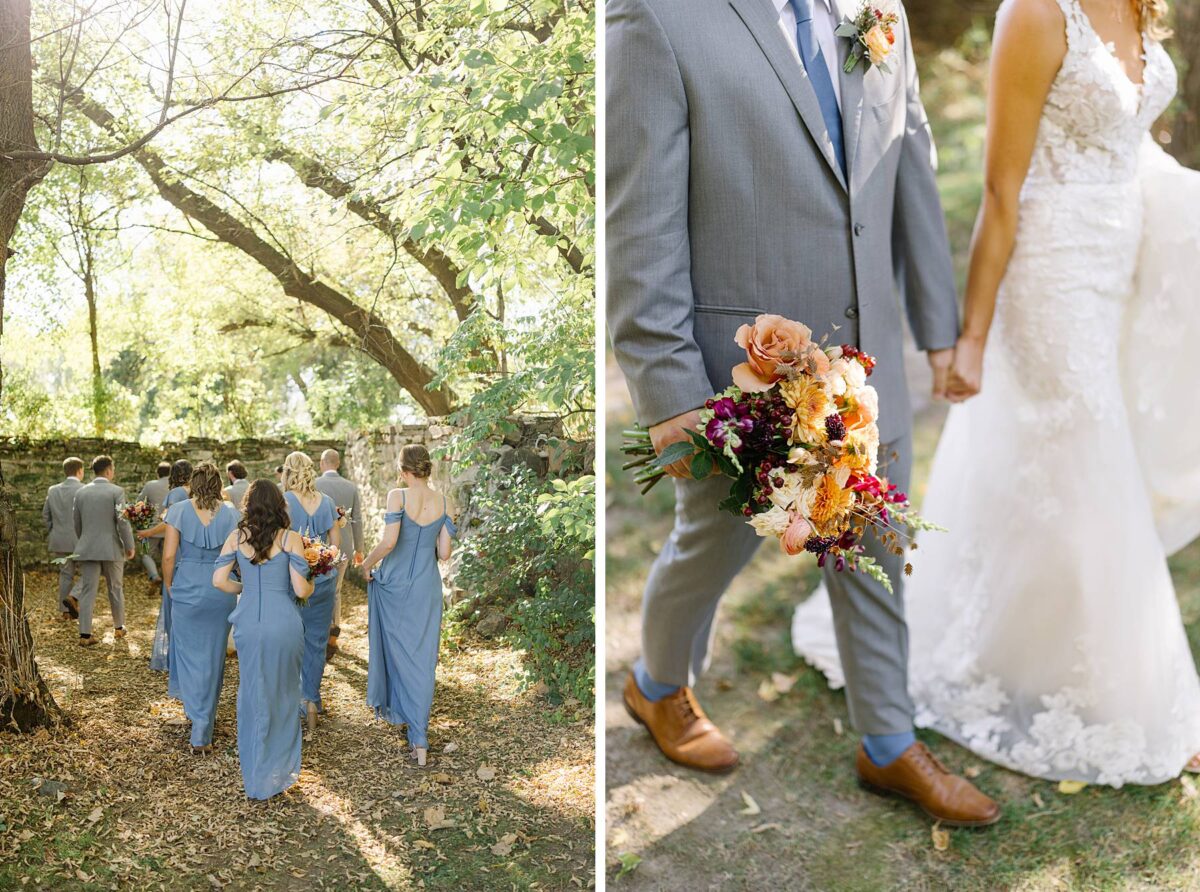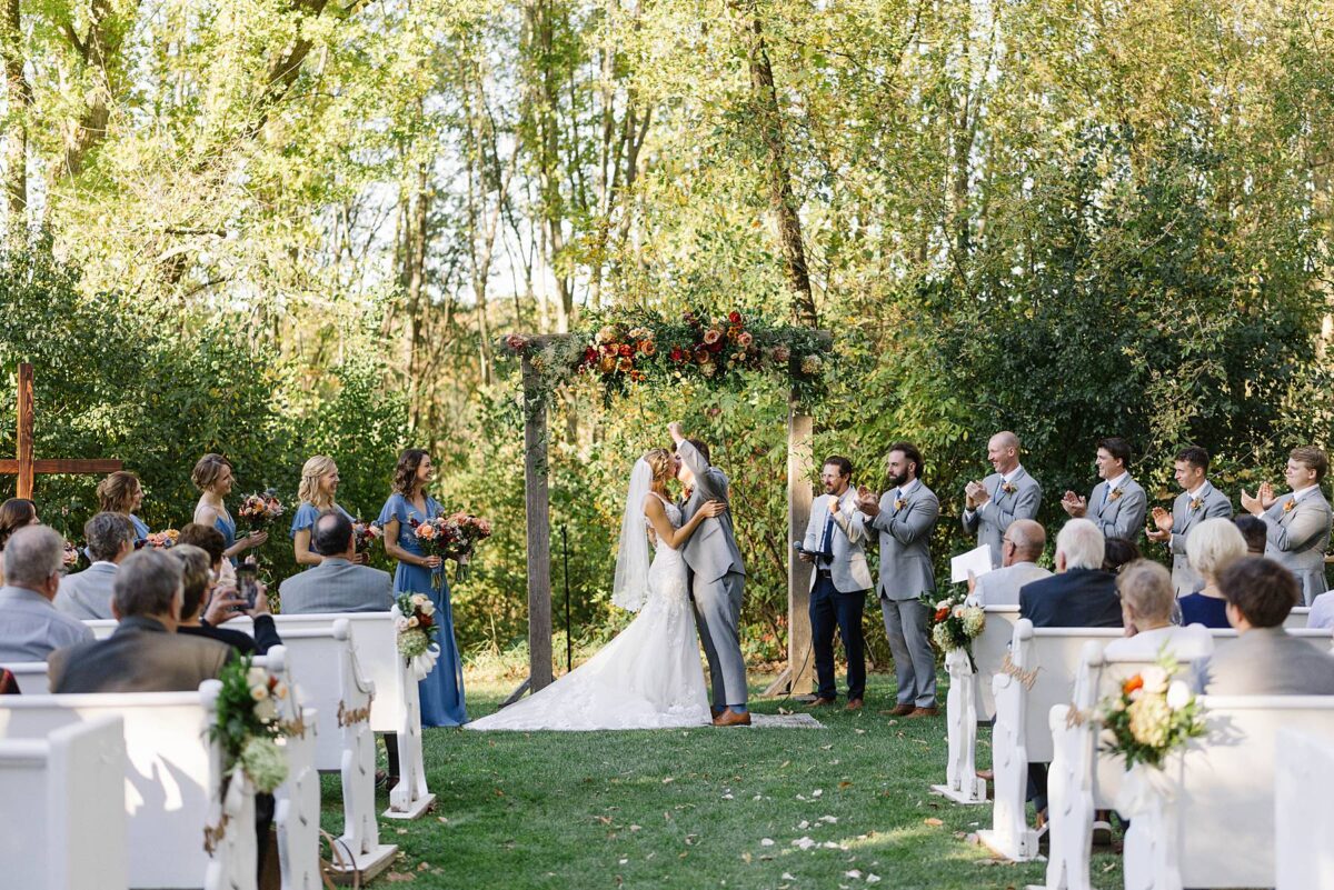 The incredible Bloom Lake Barn in Shafer could not have been a more perfect place to host Maren and Austin’s big day! Their team was phenomenal to work with, and they ensured every single detail was nothing short of perfection! The ladies had spent the morning in the bridal suite preparing with Hair by J. Lu, and we captured photos in their matching pjs along with documenting the details including rings from Helzberg Diamonds. Maren put on her gorgeous gown from Our Shop Bridal and stepped outside to meet her groom. The two shared the sweetest first look and private vows before we set off to explore the grounds for portraits.