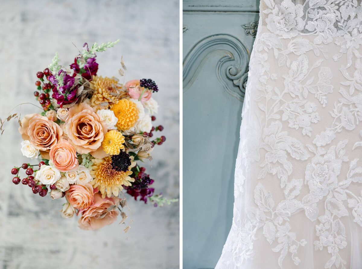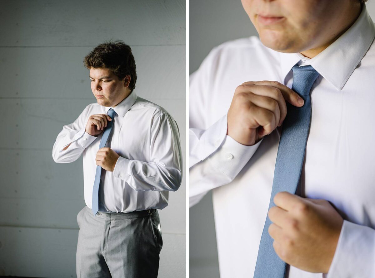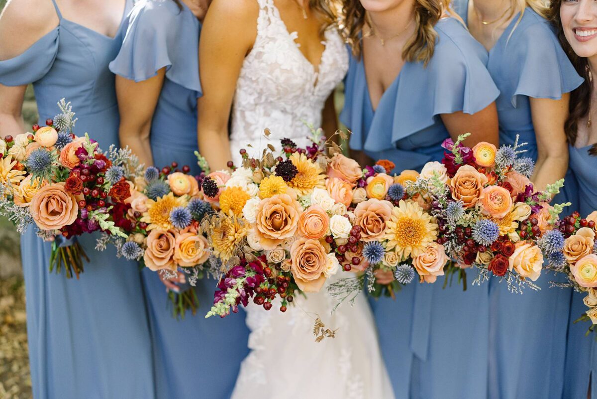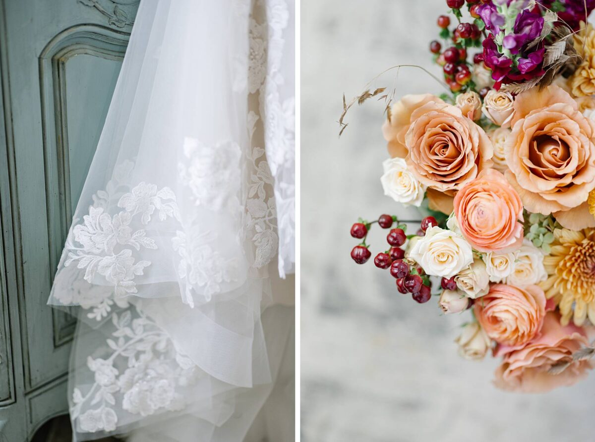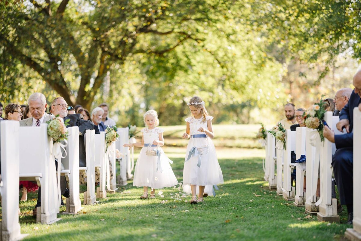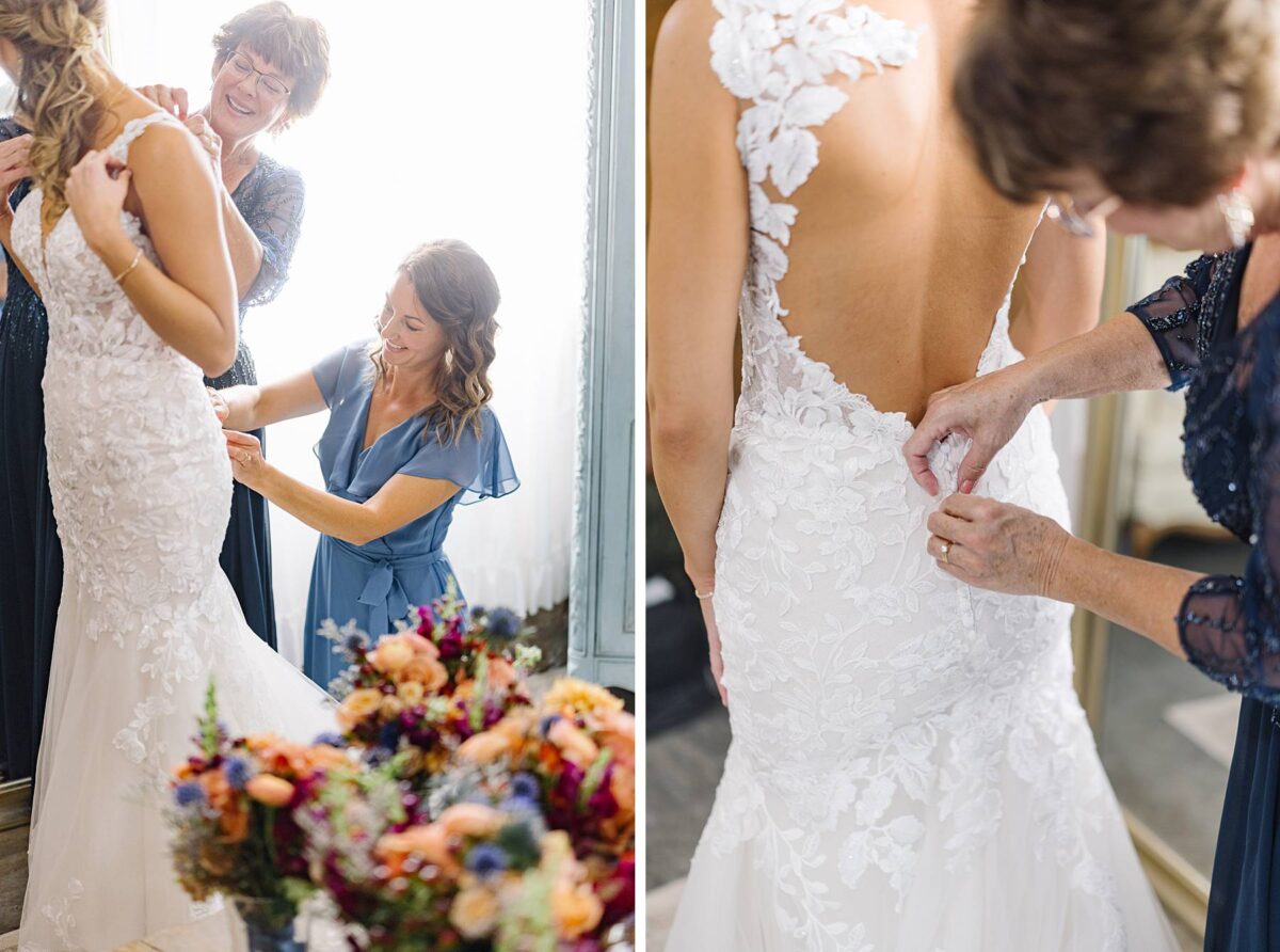 The incredible Bloom Lake Barn in Shafer could not have been a more perfect place to host Maren and Austin’s big day! Their team was phenomenal to work with, and they ensured every single detail was nothing short of perfection! The ladies had spent the morning in the bridal suite preparing with Hair by J. Lu, and we captured photos in their matching pjs along with documenting the details including rings from Helzberg Diamonds. Maren put on her gorgeous gown from Our Shop Bridal and stepped outside to meet her groom. The two shared the sweetest first look and private vows before we set off to explore the grounds for portraits.