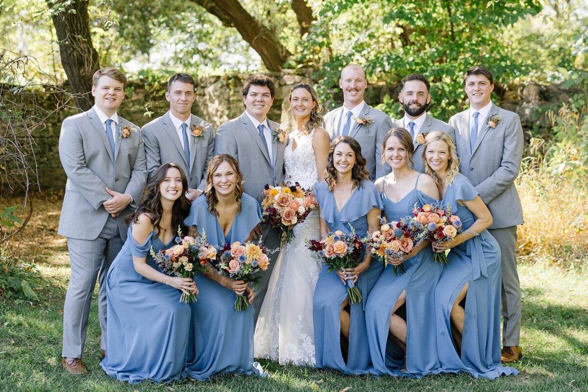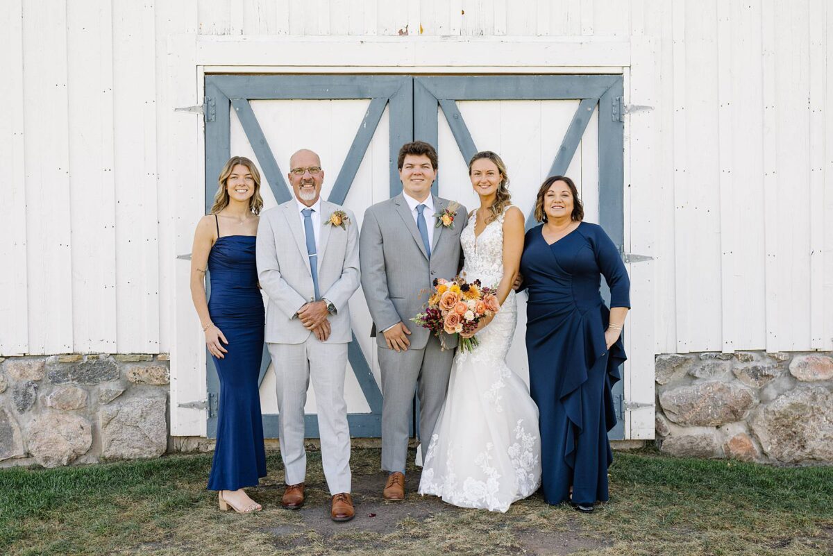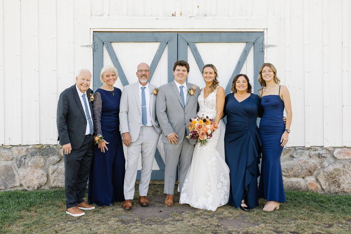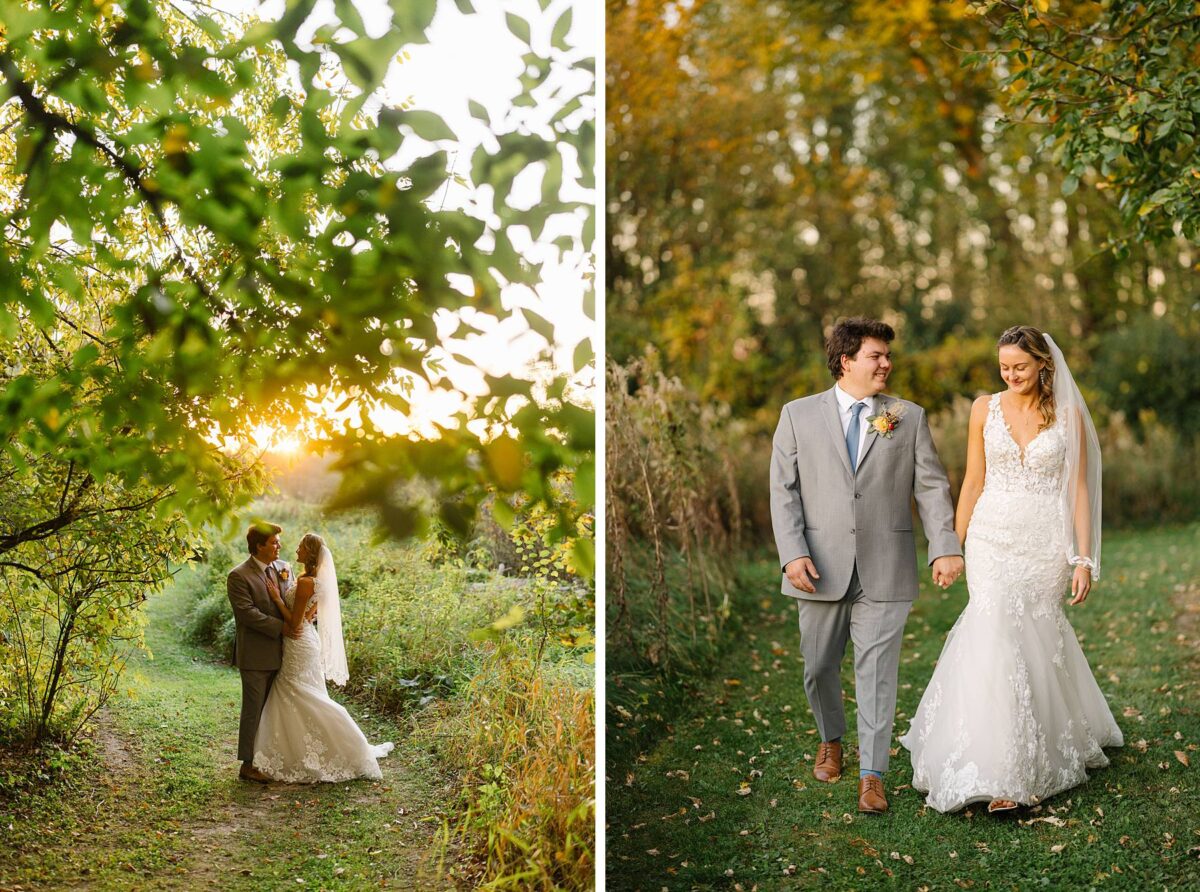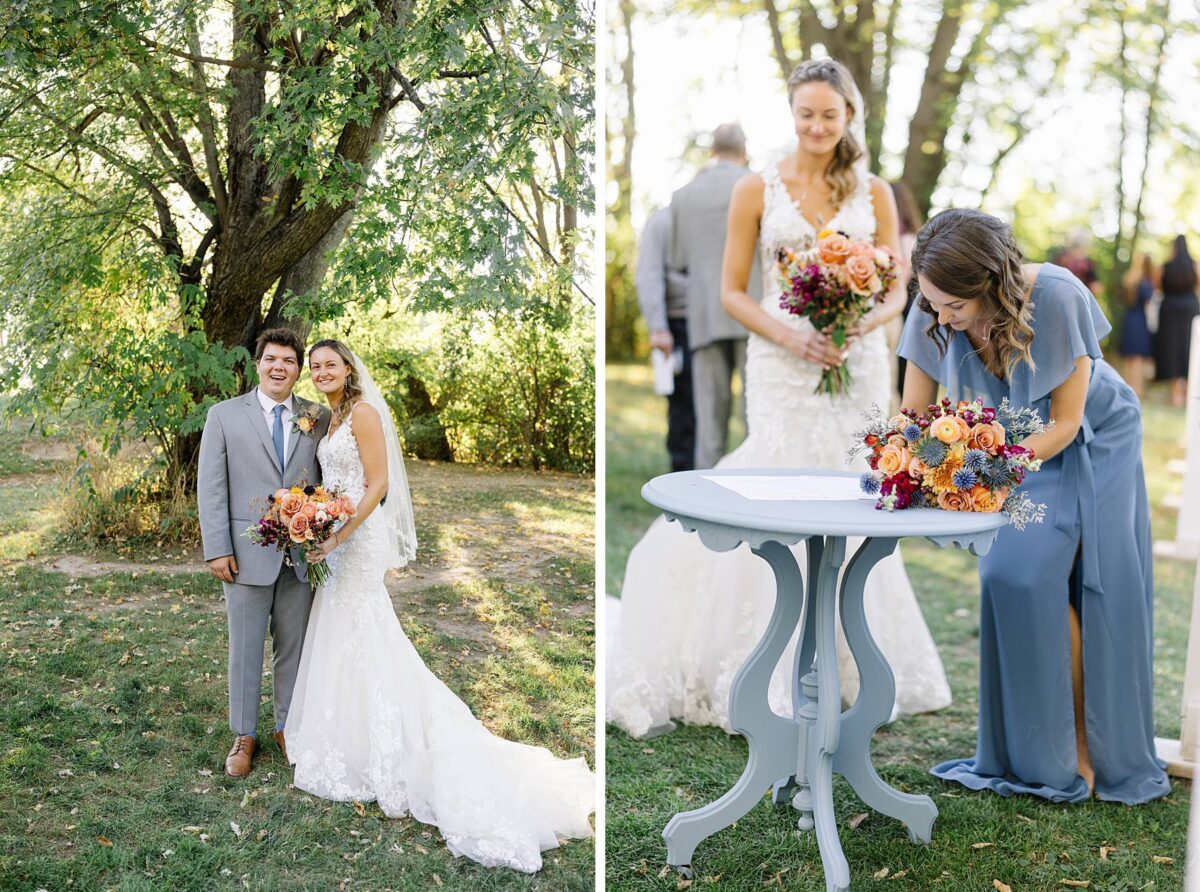 The wedding party joined us for photos, and everyone looked amazing in their suits and Birdy Grey dresses with their breathtaking bouquets by Jeanie Quigley. We finished up with family portraits before guests began to arrive. Everyone gathered for a beautiful outdoor ceremony, and Maren and Austin were all-smiles as they greeted their guests afterwards. We captured extended family photos as well as some absolutely gorgeous golden hour portraits of the newlyweds. Austin had proposed to Maren in Door County on her birthday at sunset overlooking Lake Michigan, and we were so happy that they had another stunning evening for their wedding day as well!