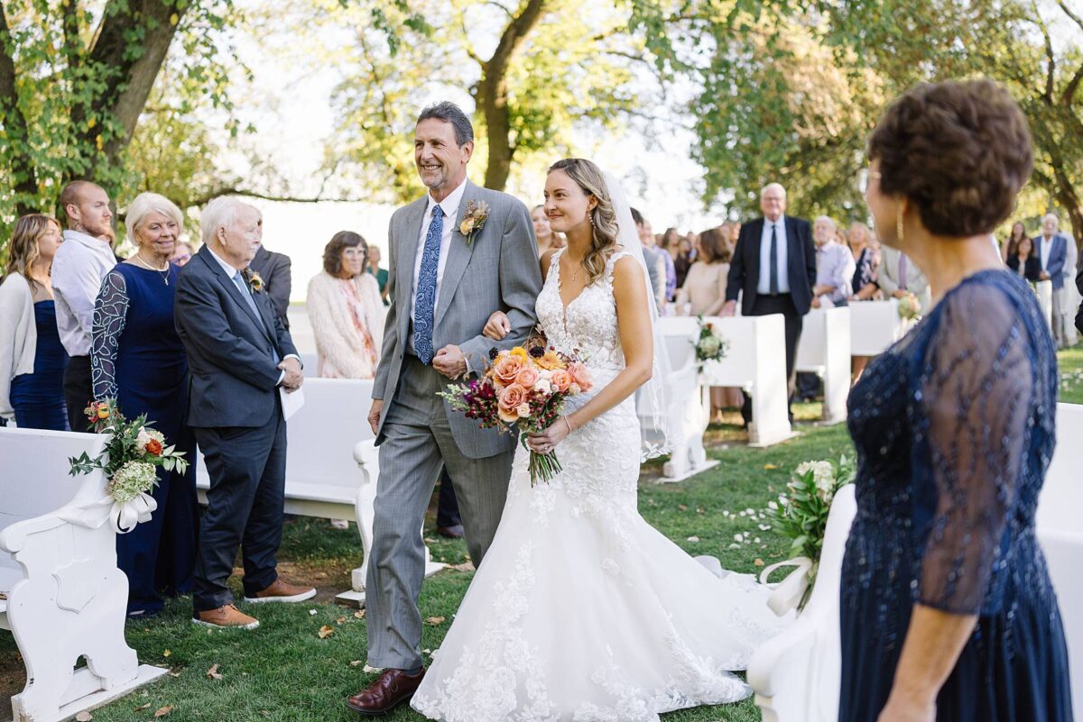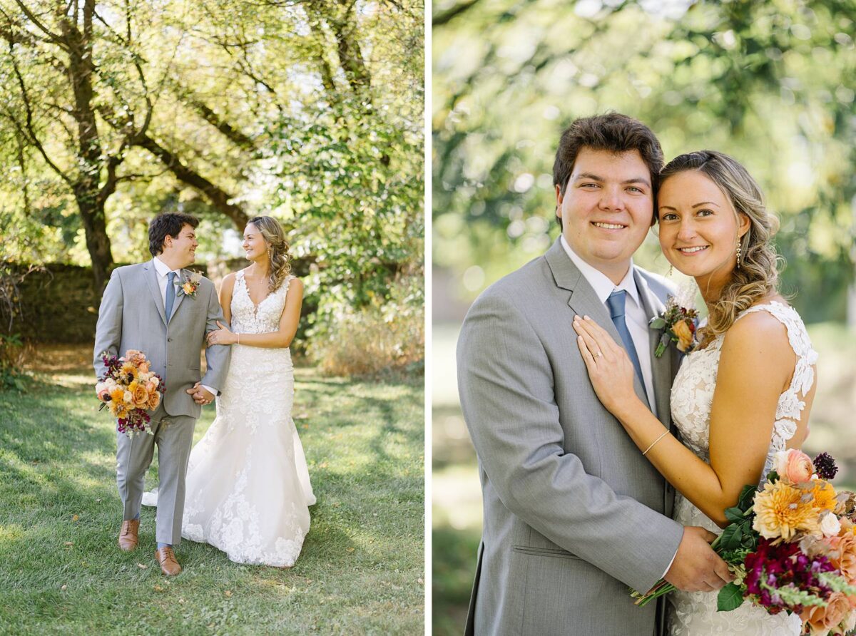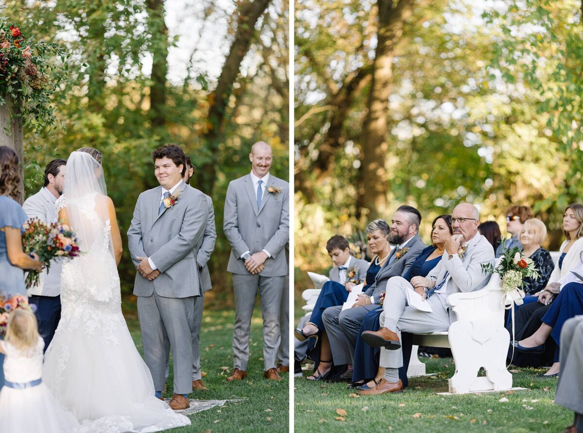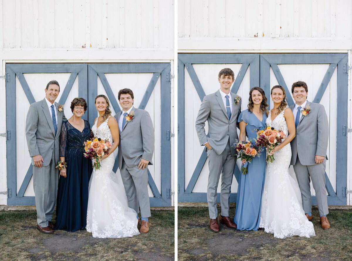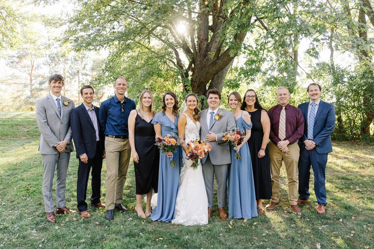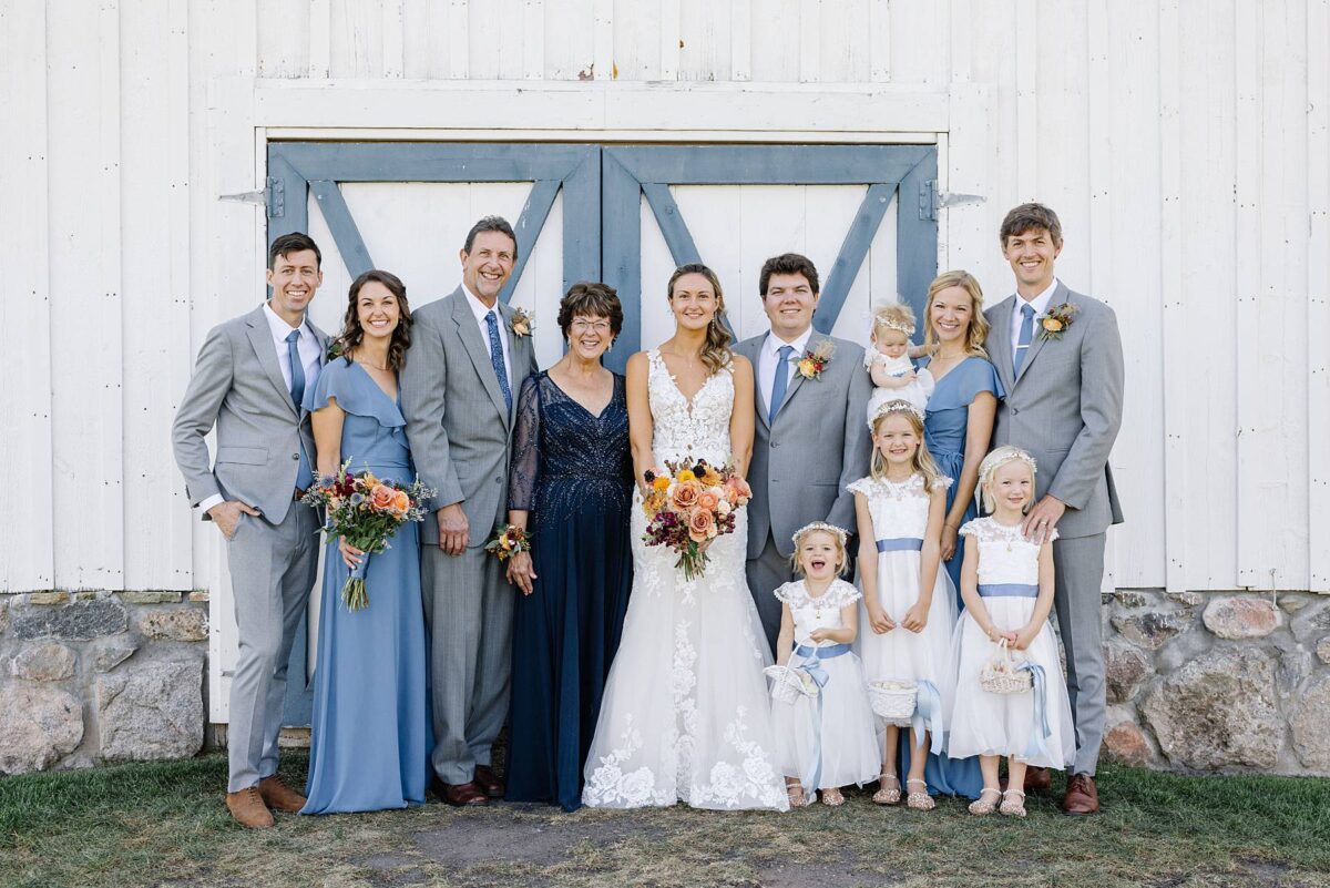 The wedding party joined us for photos, and everyone looked amazing in their suits and Birdy Grey dresses with their breathtaking bouquets by Jeanie Quigley. We finished up with family portraits before guests began to arrive. Everyone gathered for a beautiful outdoor ceremony, and Maren and Austin were all-smiles as they greeted their guests afterwards. We captured extended family photos as well as some absolutely gorgeous golden hour portraits of the newlyweds. Austin had proposed to Maren in Door County on her birthday at sunset overlooking Lake Michigan, and we were so happy that they had another stunning evening for their wedding day as well!