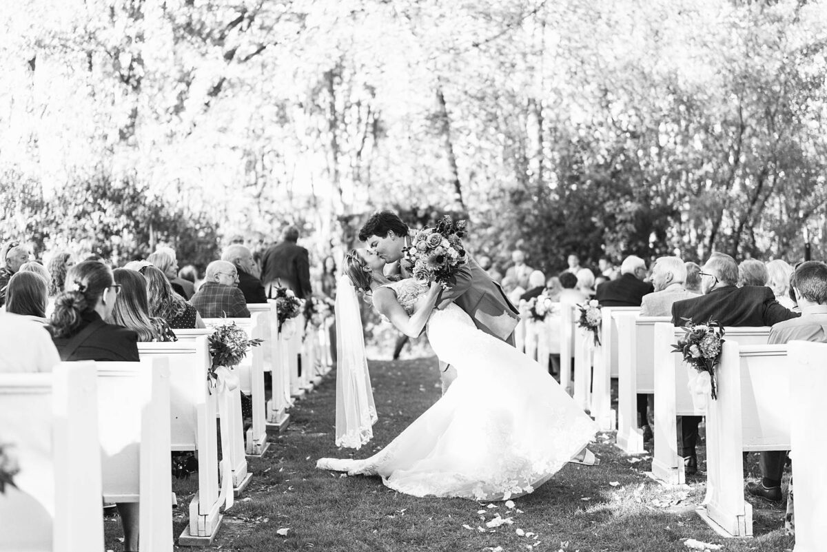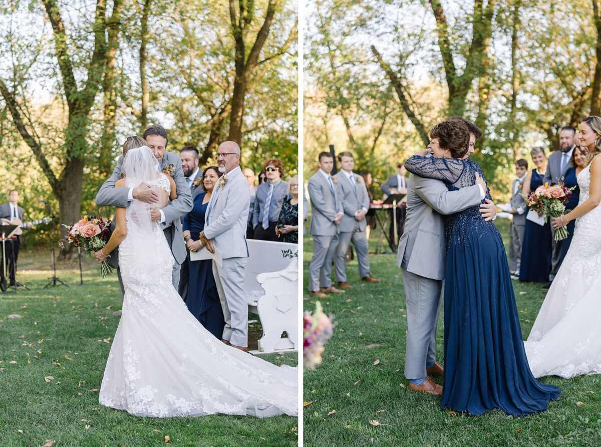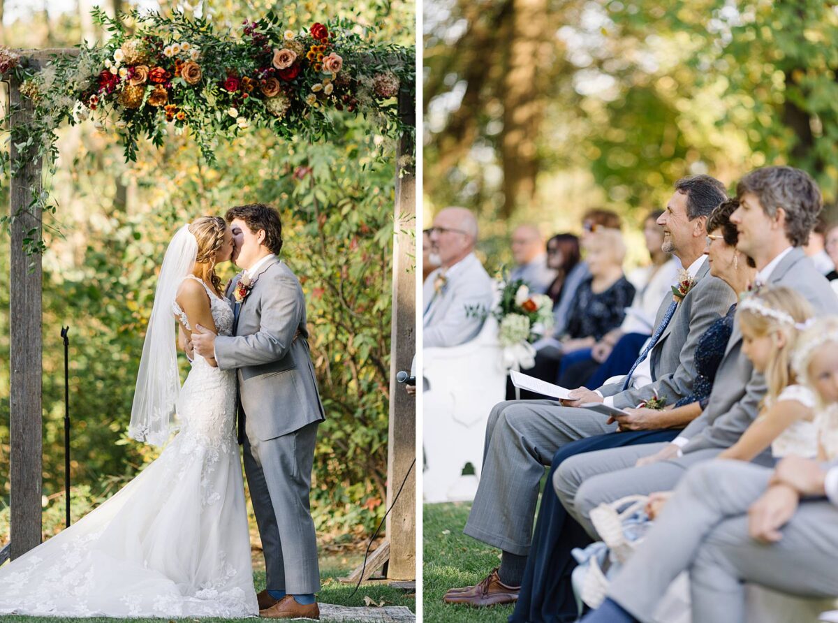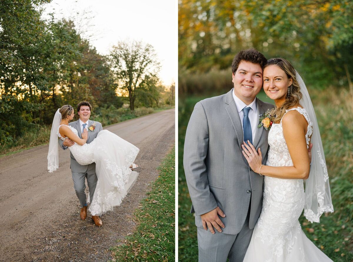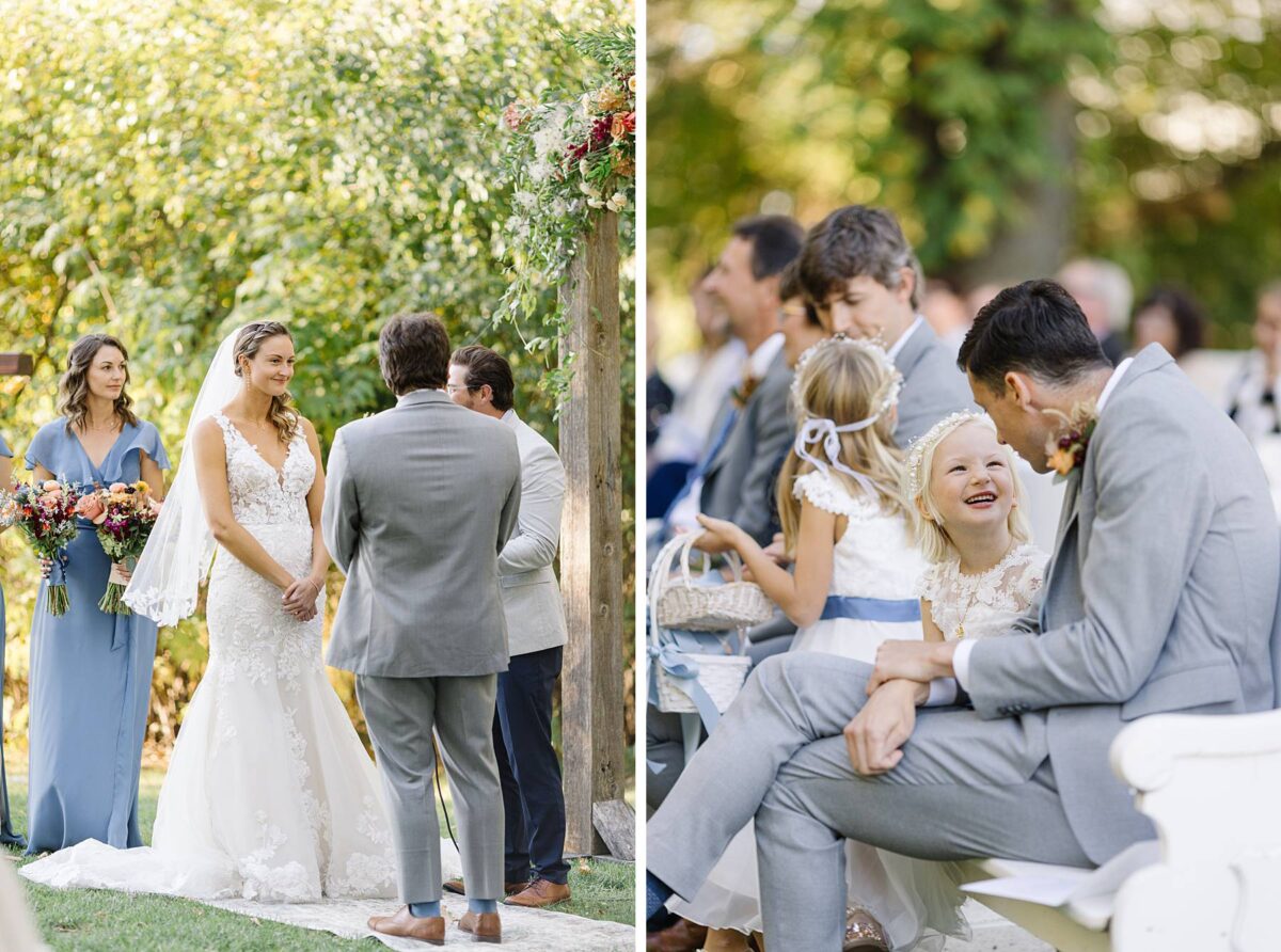 The wedding party joined us for photos, and everyone looked amazing in their suits and Birdy Grey dresses with their breathtaking bouquets by Jeanie Quigley. We finished up with family portraits before guests began to arrive. Everyone gathered for a beautiful outdoor ceremony, and Maren and Austin were all-smiles as they greeted their guests afterwards. We captured extended family photos as well as some absolutely gorgeous golden hour portraits of the newlyweds. Austin had proposed to Maren in Door County on her birthday at sunset overlooking Lake Michigan, and we were so happy that they had another stunning evening for their wedding day as well!