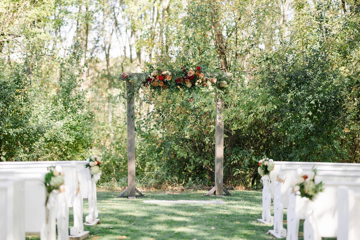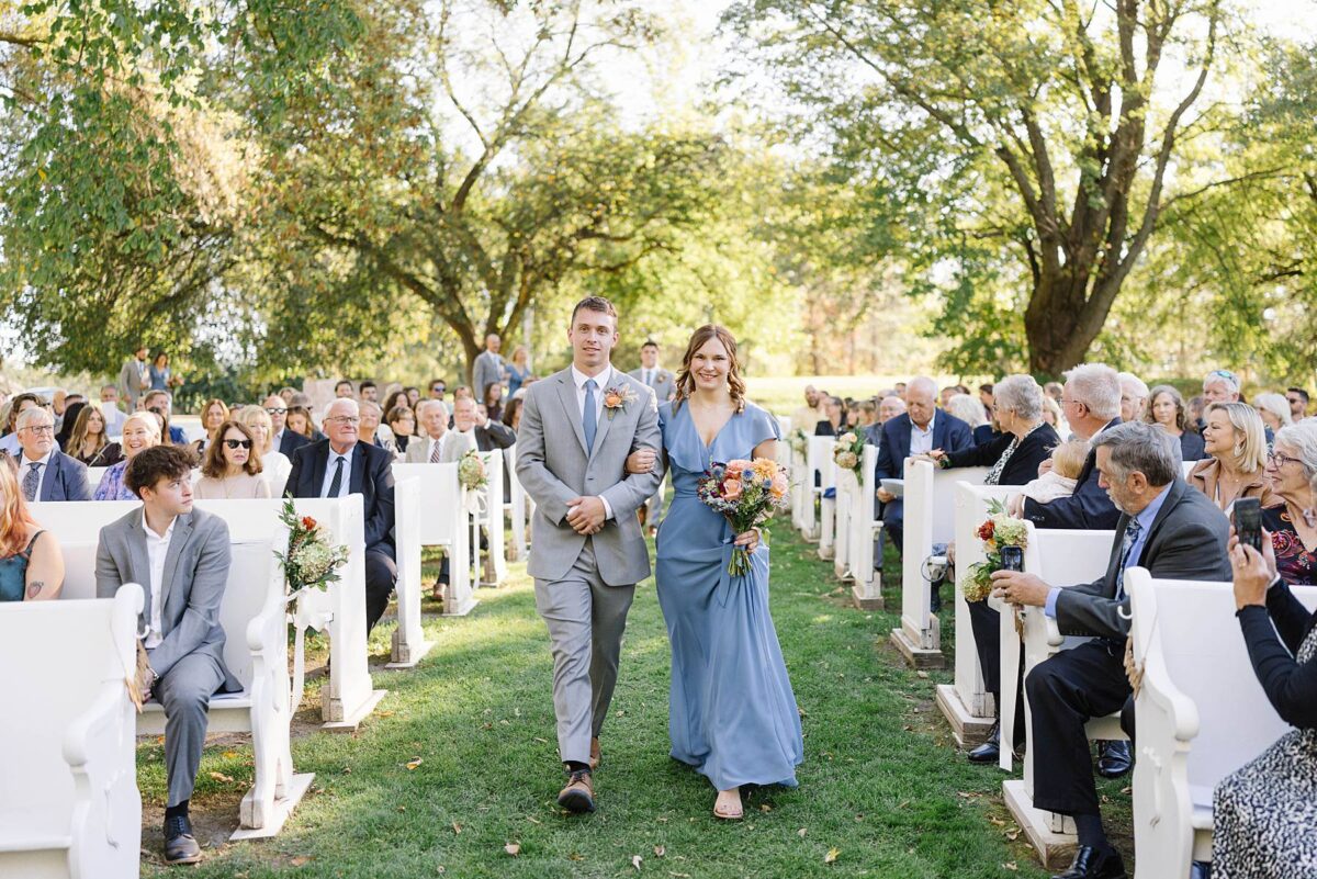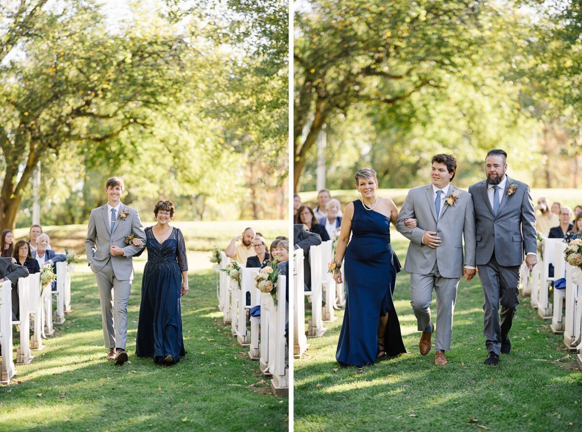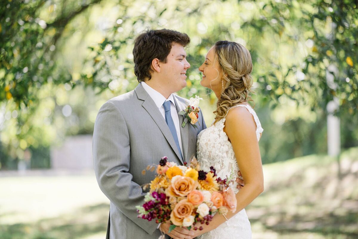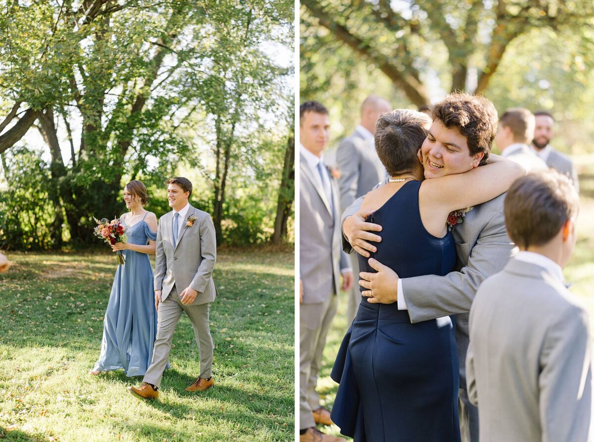 The wedding party joined us for photos, and everyone looked amazing in their suits and Birdy Grey dresses with their breathtaking bouquets by Jeanie Quigley. We finished up with family portraits before guests began to arrive. Everyone gathered for a beautiful outdoor ceremony, and Maren and Austin were all-smiles as they greeted their guests afterwards. We captured extended family photos as well as some absolutely gorgeous golden hour portraits of the newlyweds. Austin had proposed to Maren in Door County on her birthday at sunset overlooking Lake Michigan, and we were so happy that they had another stunning evening for their wedding day as well!
