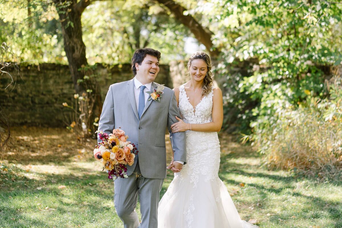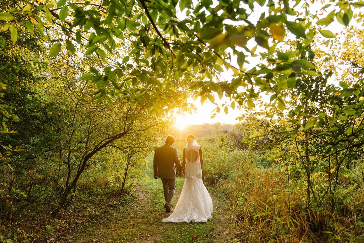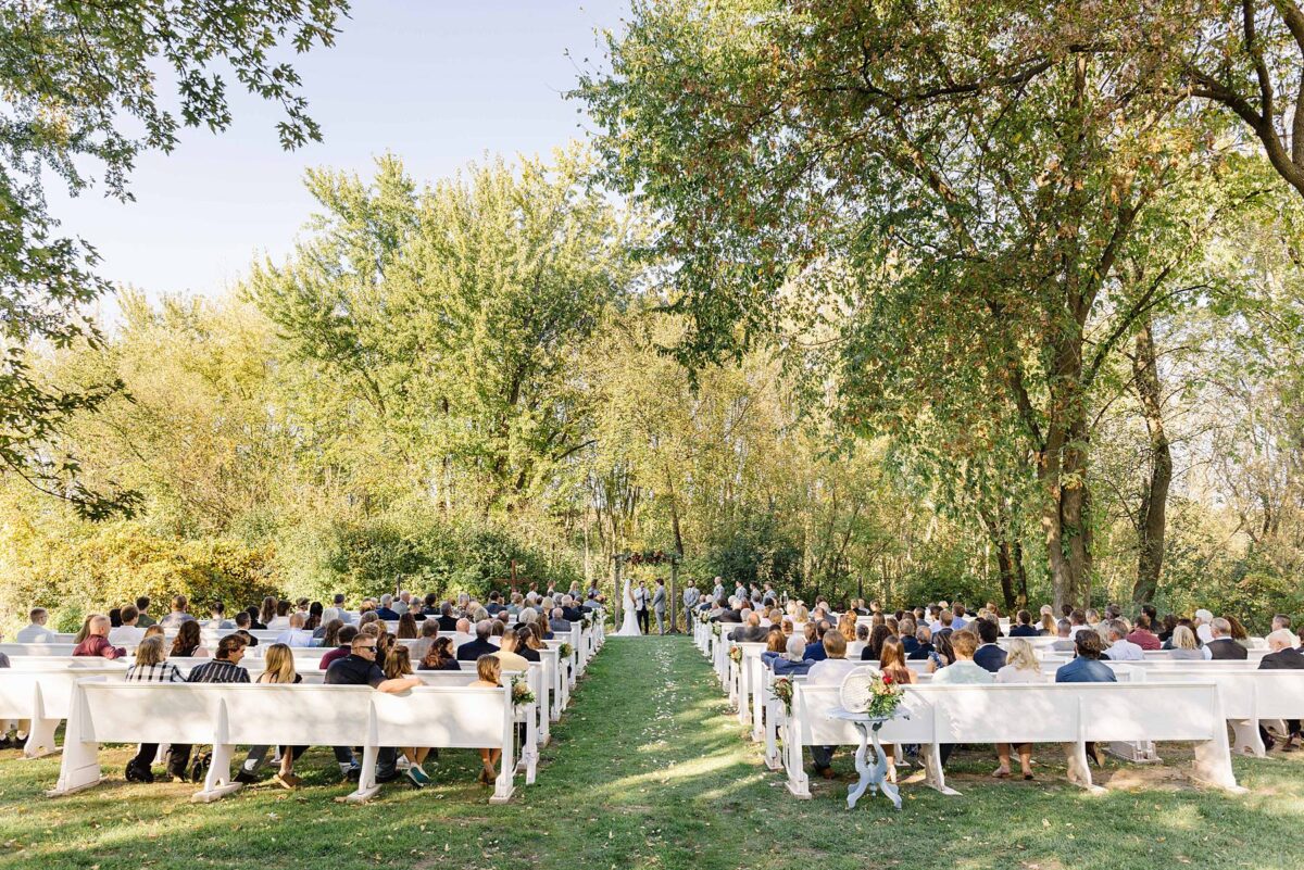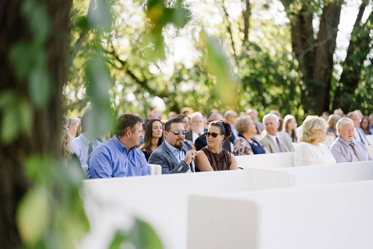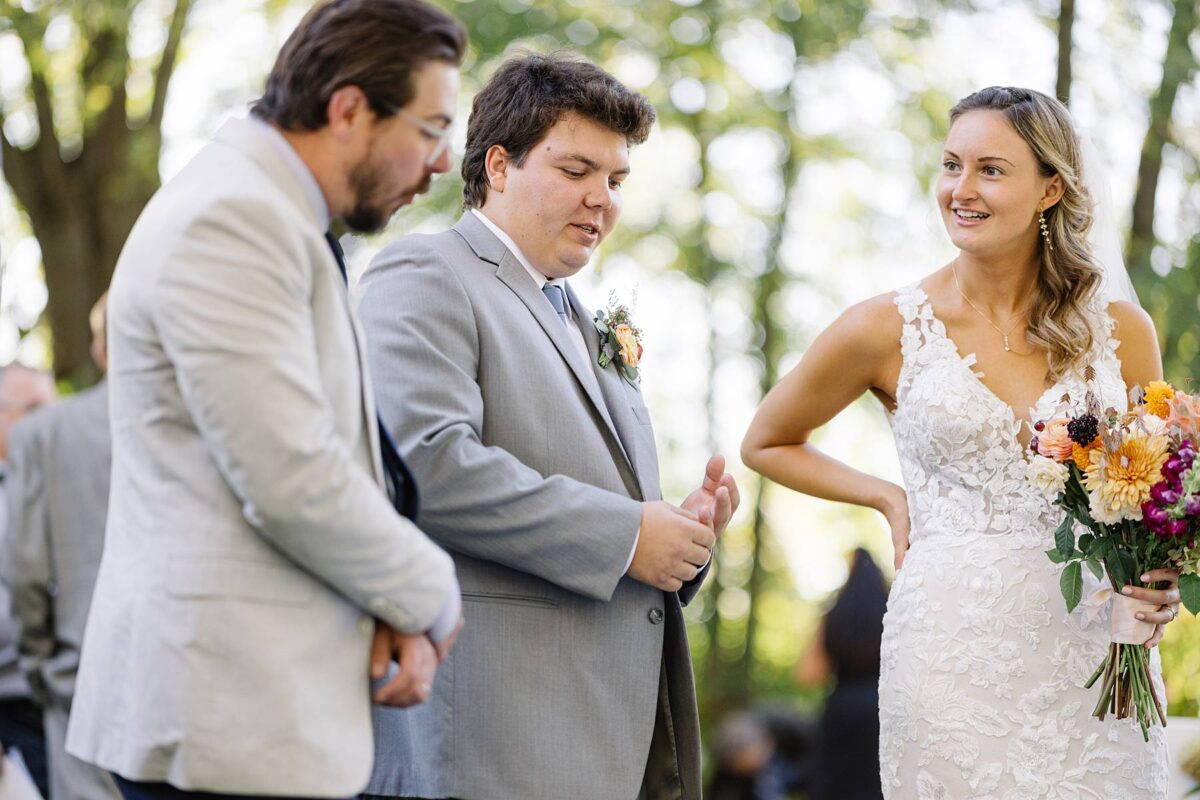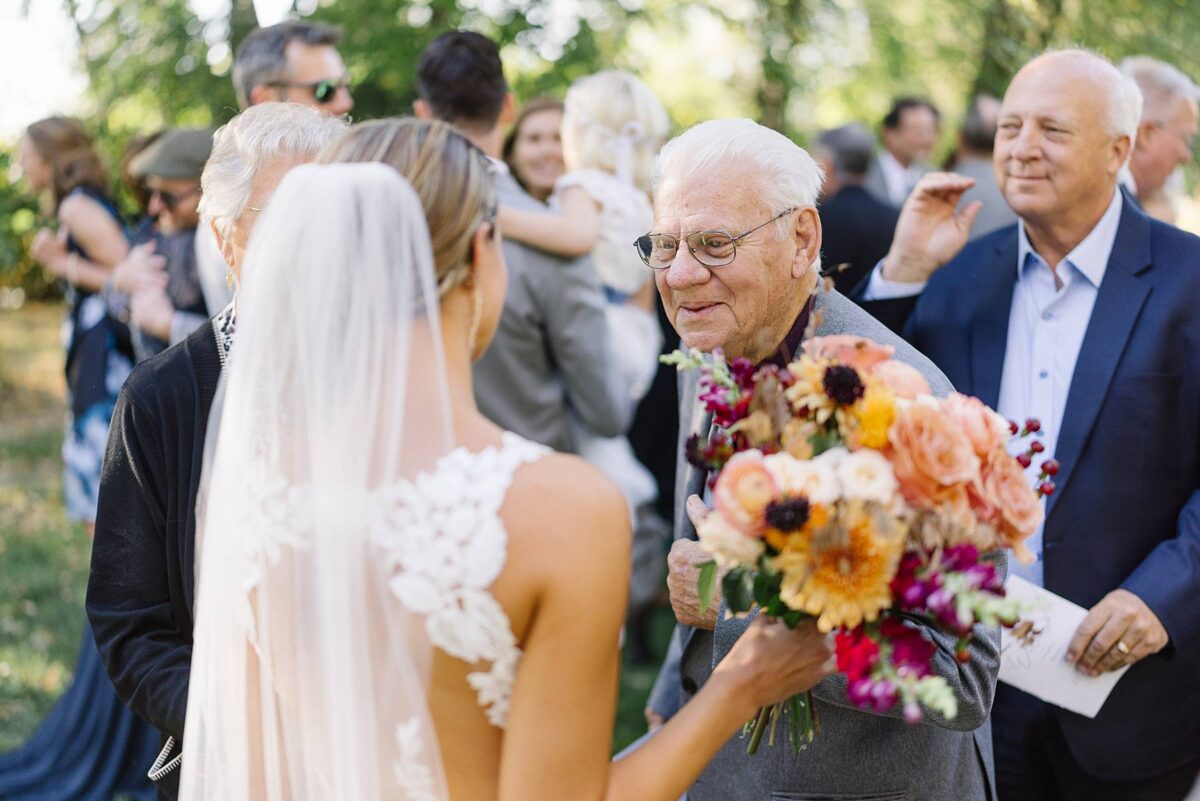 The wedding party joined us for photos, and everyone looked amazing in their suits and Birdy Grey dresses with their breathtaking bouquets by Jeanie Quigley. We finished up with family portraits before guests began to arrive. Everyone gathered for a beautiful outdoor ceremony, and Maren and Austin were all-smiles as they greeted their guests afterwards. We captured extended family photos as well as some absolutely gorgeous golden hour portraits of the newlyweds. Austin had proposed to Maren in Door County on her birthday at sunset overlooking Lake Michigan, and we were so happy that they had another stunning evening for their wedding day as well!