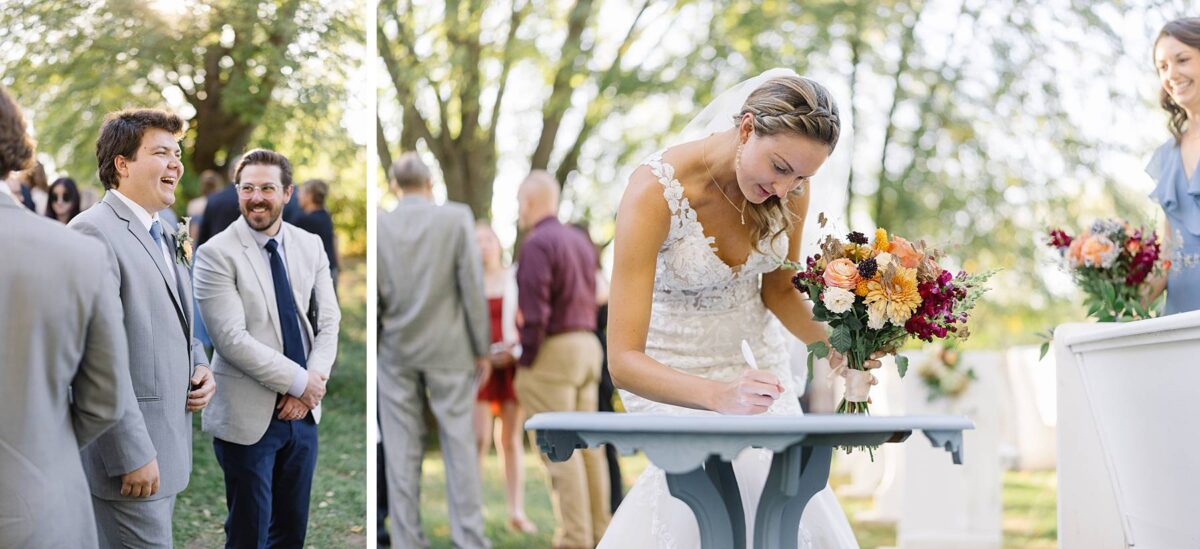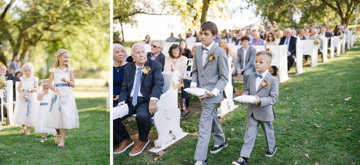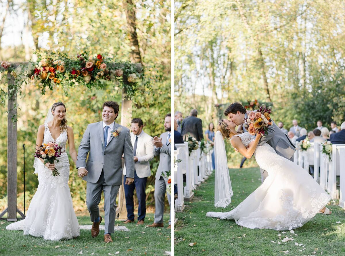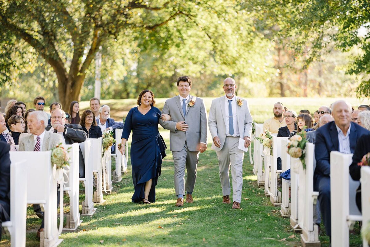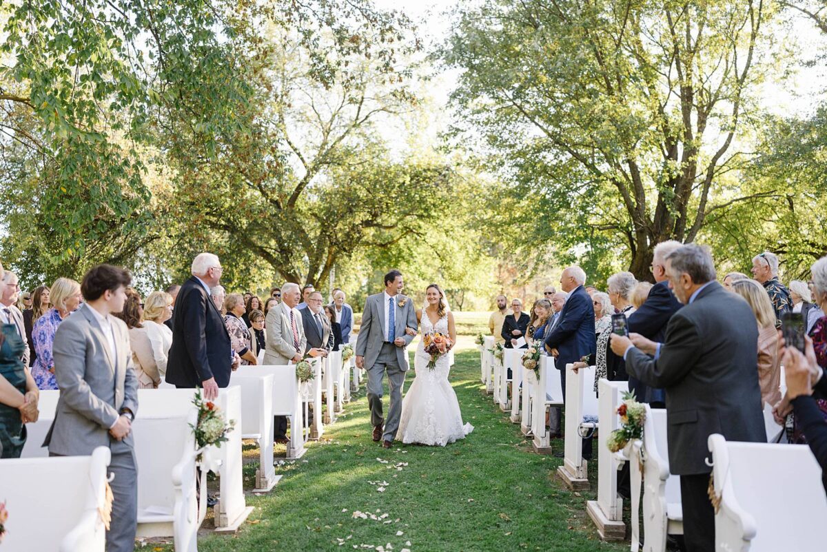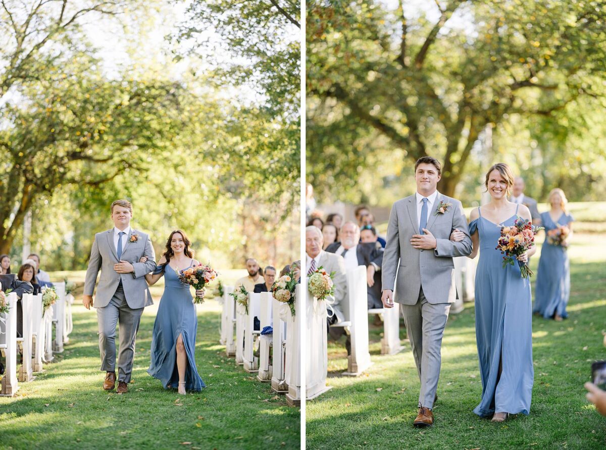The wedding party joined us for photos, and everyone looked amazing in their suits and Birdy Grey dresses with their breathtaking bouquets by Jeanie Quigley. We finished up with family portraits before guests began to arrive. Everyone gathered for a beautiful outdoor ceremony, and Maren and Austin were all-smiles as they greeted their guests afterwards. We captured extended family photos as well as some absolutely gorgeous golden hour portraits of the newlyweds. Austin had proposed to Maren in Door County on her birthday at sunset overlooking Lake Michigan, and we were so happy that they had another stunning evening for their wedding day as well!
