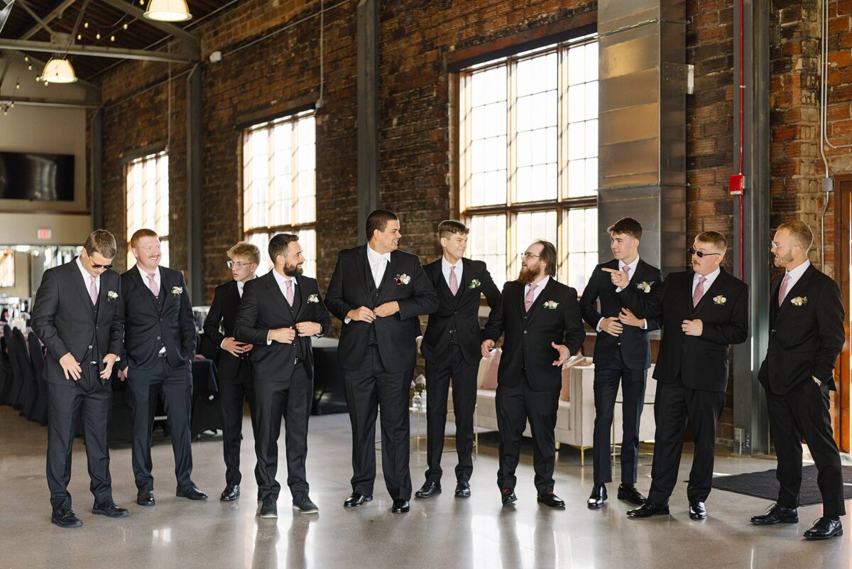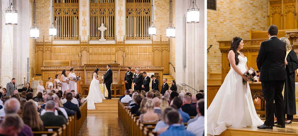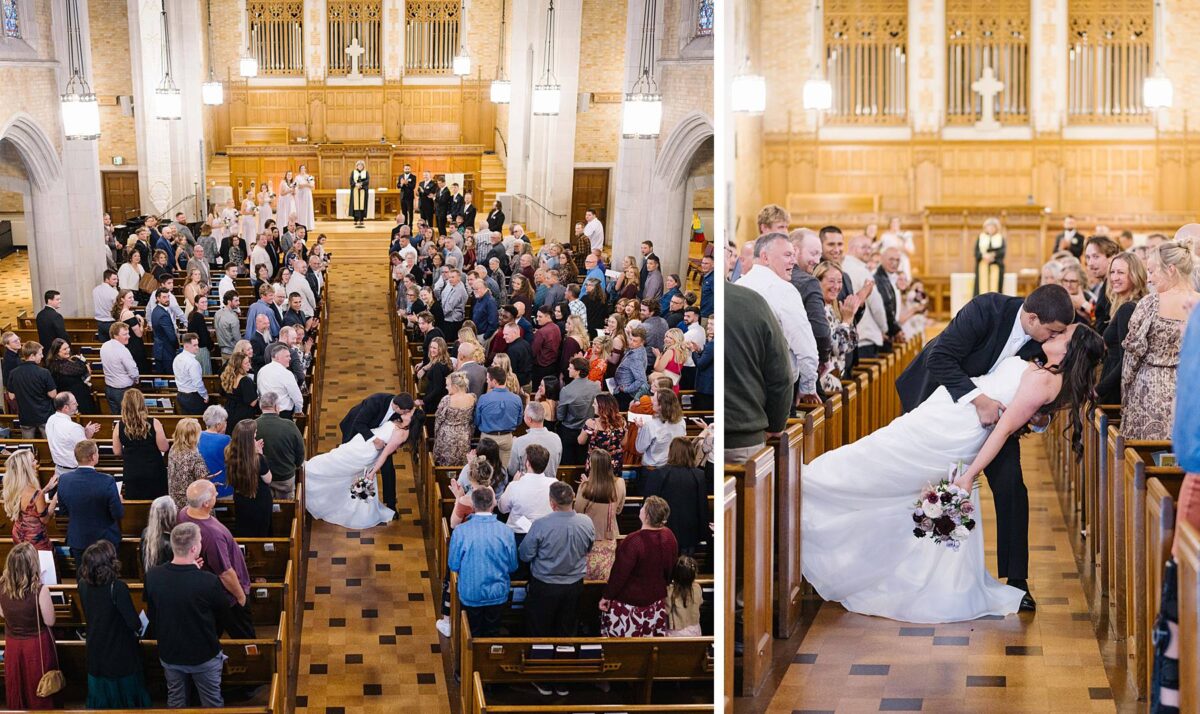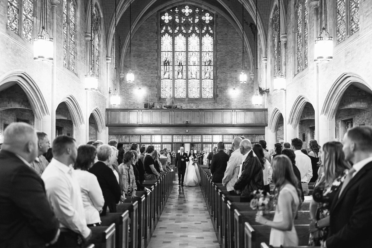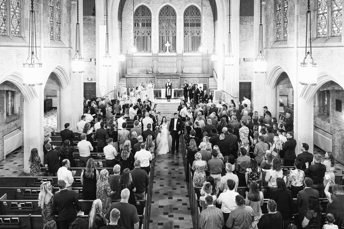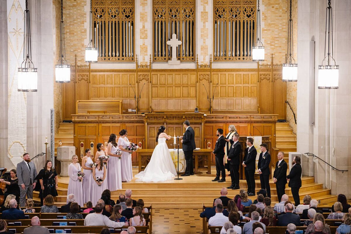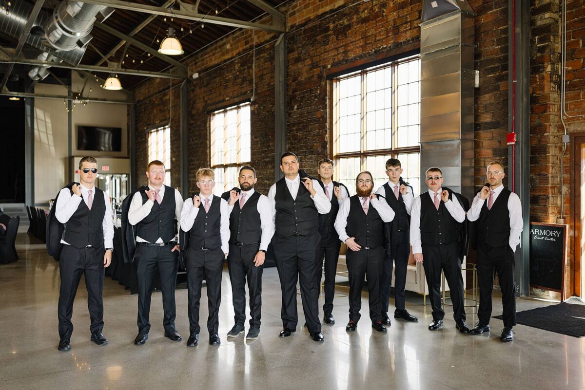 The morning began at the Armory Event Center where we documented all of the breathtaking details followed by Jordan’s epic game-day entrance with his groomsmen. Meanwhile, the ladies spent the morning at The White House Co.’s Fire Hall No. 2 with Emily Kieffer on hair and Katie Larson on makeup. We captured a few photos of the ladies in their matching pjs before Katie put on her gorgeous gown and headed out for her first look with Jordan. The tears began as Jordan turned to see his beautiful bride, and we set off to explore Island Park for portraits. The wedding party joined us for photos before traveling to First Presbyterian Church. Upon arrival, we captured family portraits by the church’s ivy-covered walls before heading in for the ceremony.
