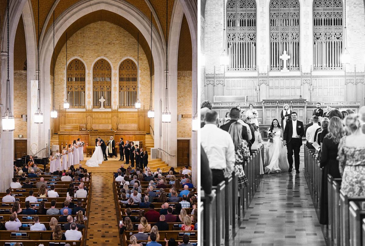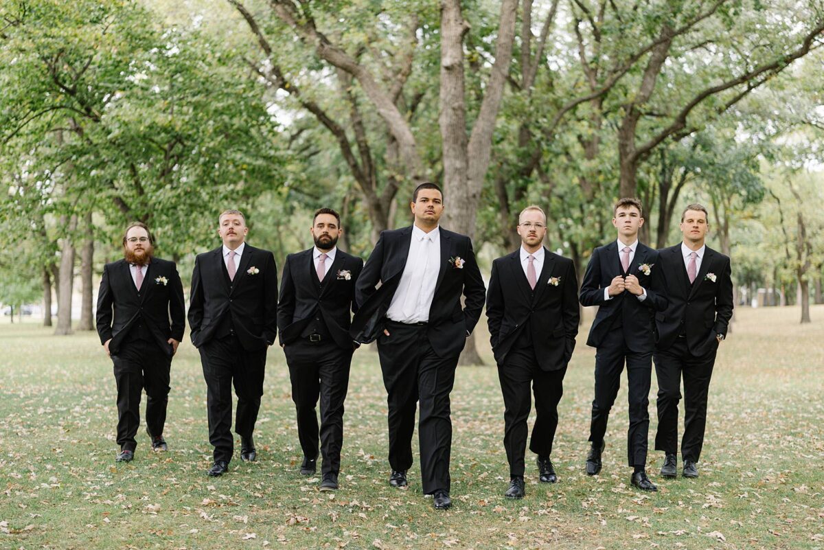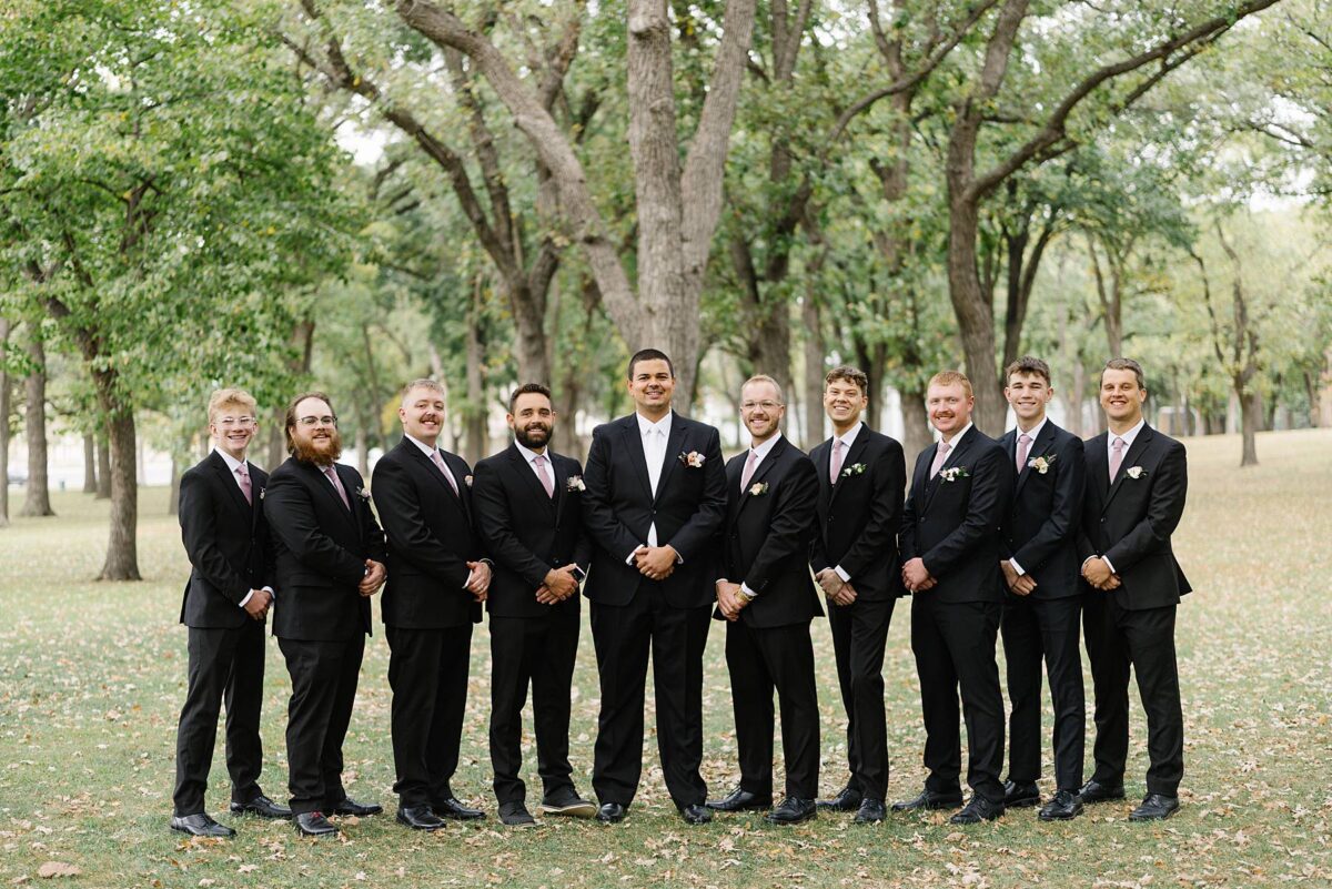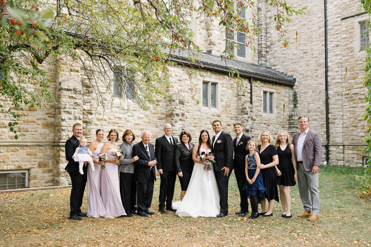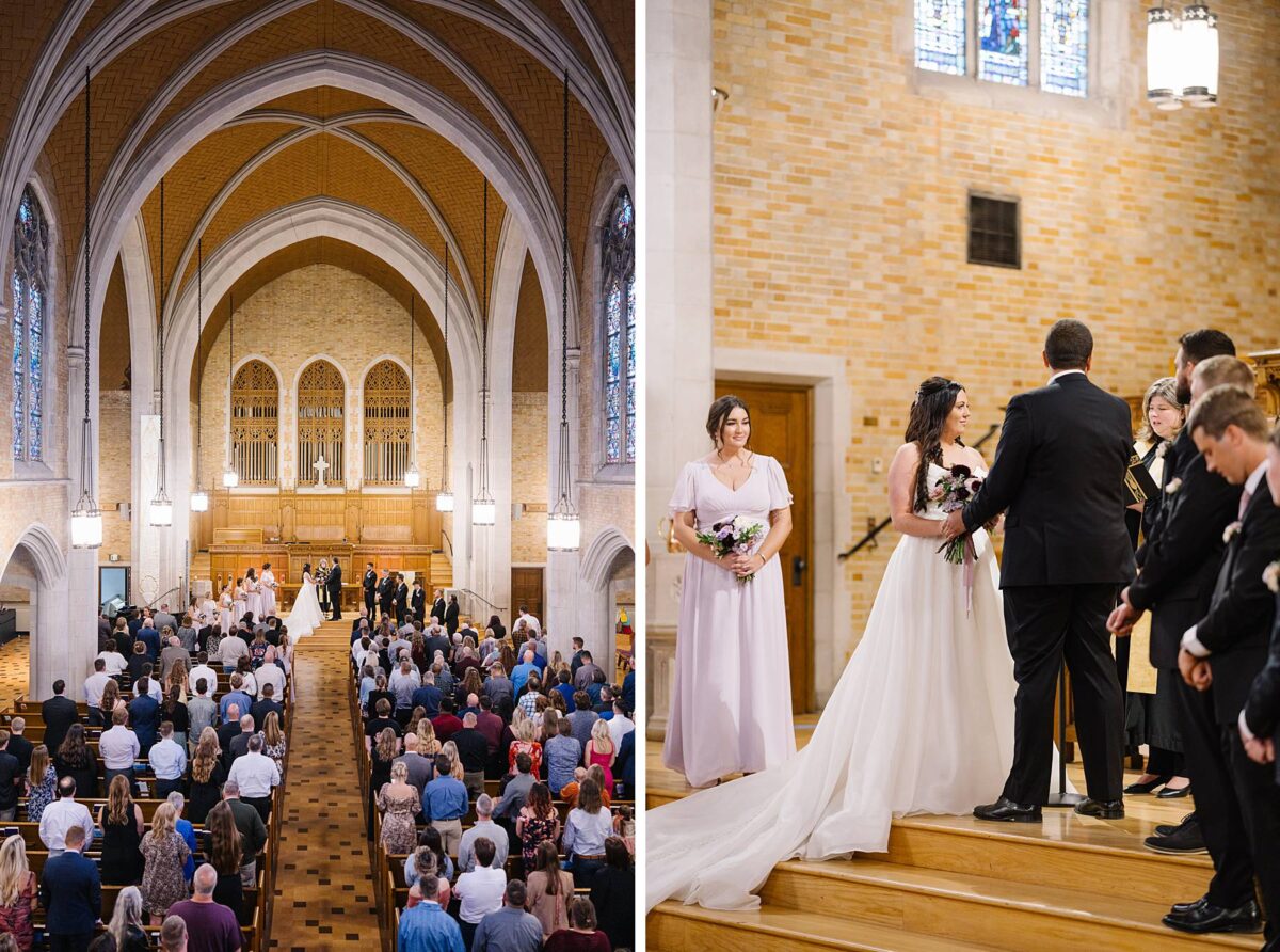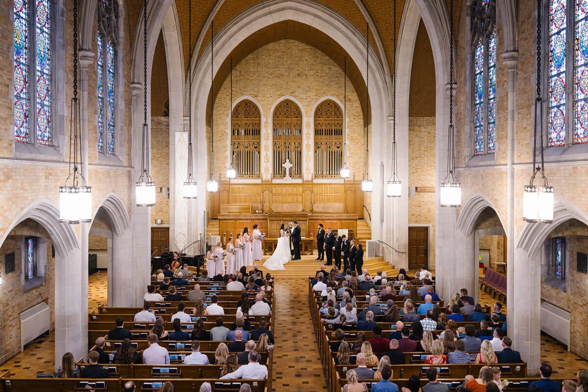The morning began at the Armory Event Center where we documented all of the breathtaking details followed by Jordan’s epic game-day entrance with his groomsmen. Meanwhile, the ladies spent the morning at The White House Co.’s Fire Hall No. 2 with Emily Kieffer on hair and Katie Larson on makeup. We captured a few photos of the ladies in their matching pjs before Katie put on her gorgeous gown and headed out for her first look with Jordan. The tears began as Jordan turned to see his beautiful bride, and we set off to explore Island Park for portraits. The wedding party joined us for photos before traveling to First Presbyterian Church. Upon arrival, we captured family portraits by the church’s ivy-covered walls before heading in for the ceremony.