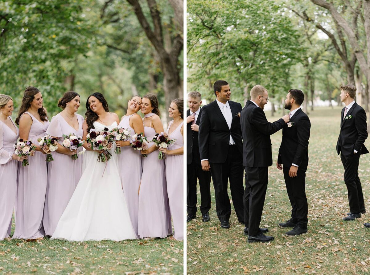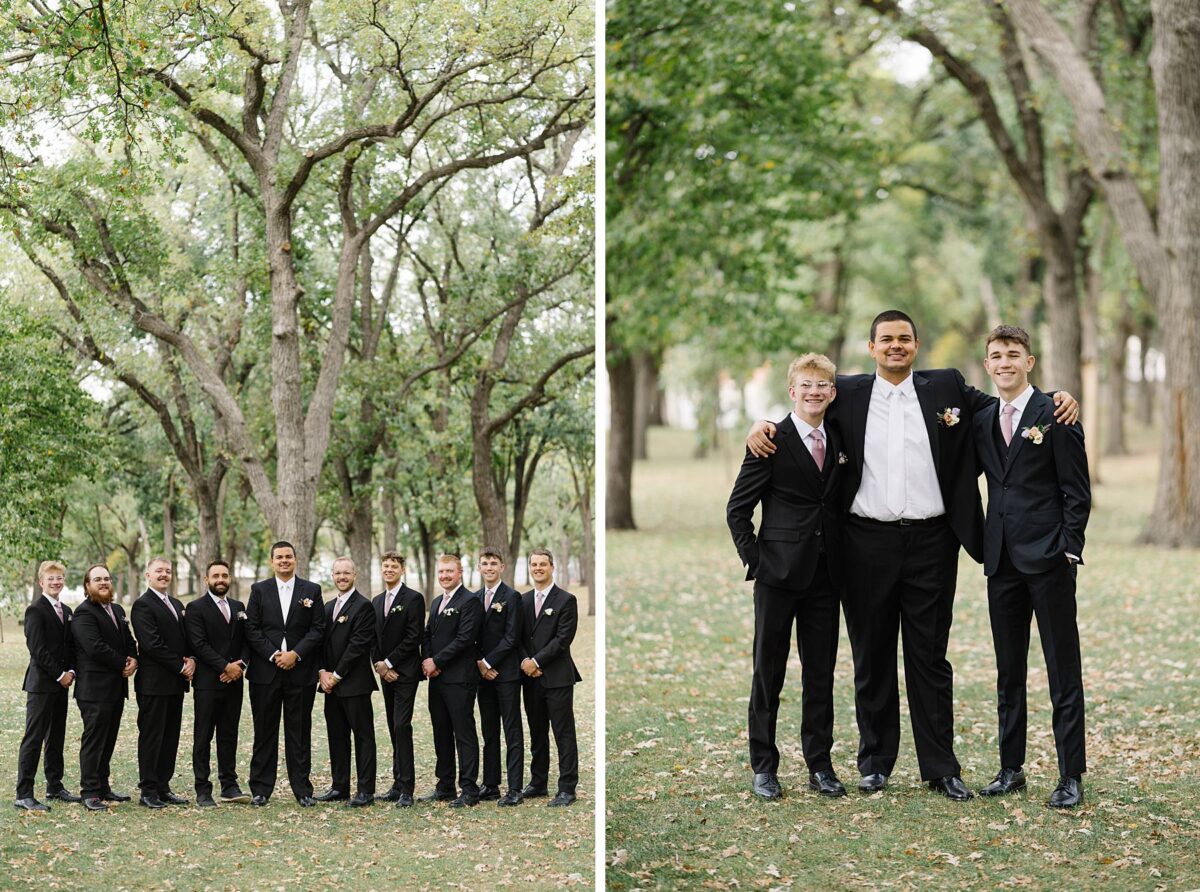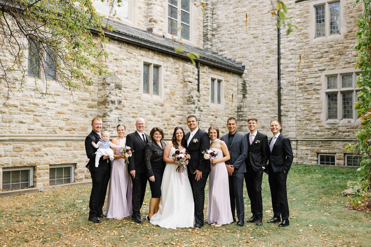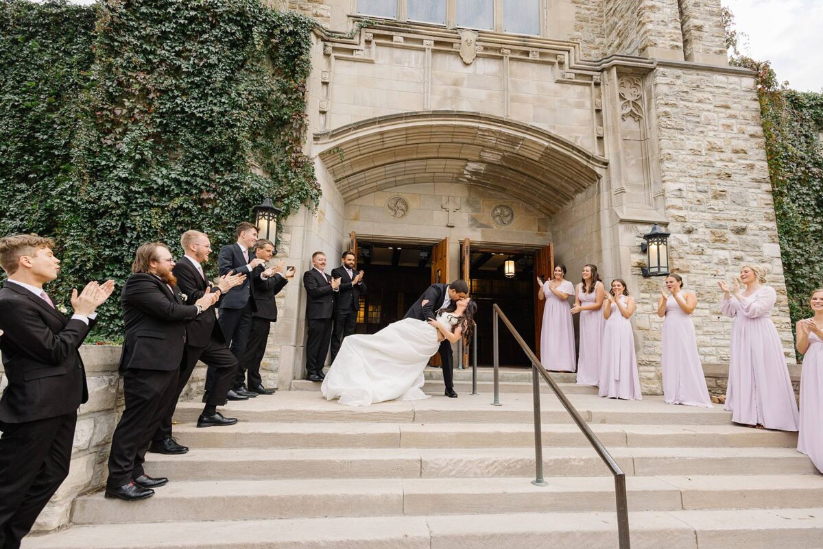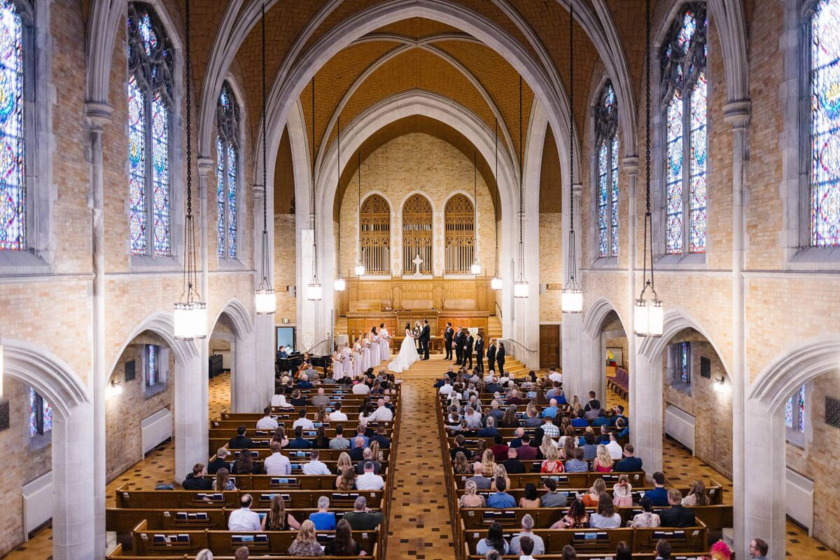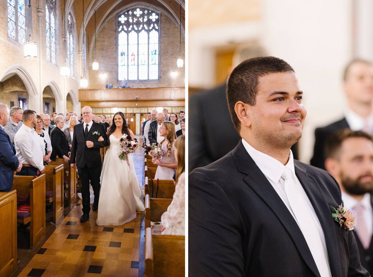 The morning began at the Armory Event Center where we documented all of the breathtaking details followed by Jordan’s epic game-day entrance with his groomsmen. Meanwhile, the ladies spent the morning at The White House Co.’s Fire Hall No. 2 with Emily Kieffer on hair and Katie Larson on makeup. We captured a few photos of the ladies in their matching pjs before Katie put on her gorgeous gown and headed out for her first look with Jordan. The tears began as Jordan turned to see his beautiful bride, and we set off to explore Island Park for portraits. The wedding party joined us for photos before traveling to First Presbyterian Church. Upon arrival, we captured family portraits by the church’s ivy-covered walls before heading in for the ceremony.