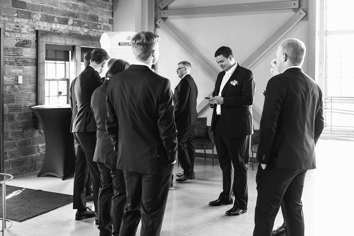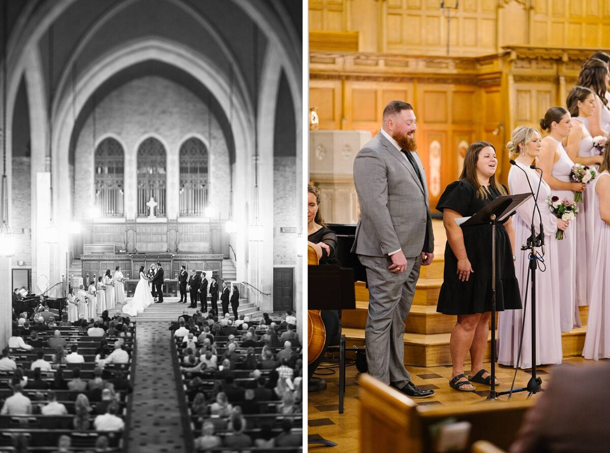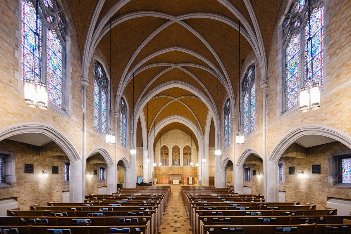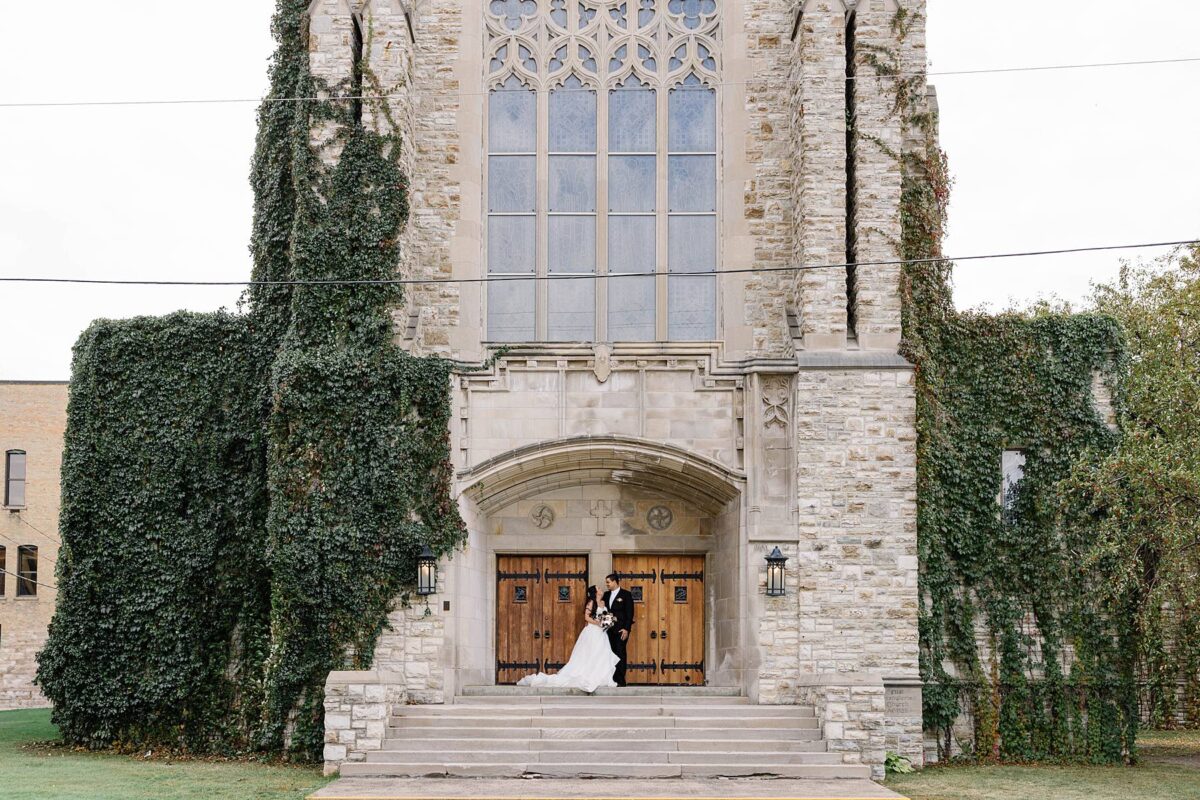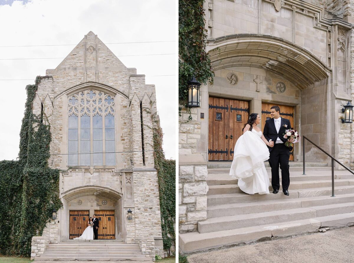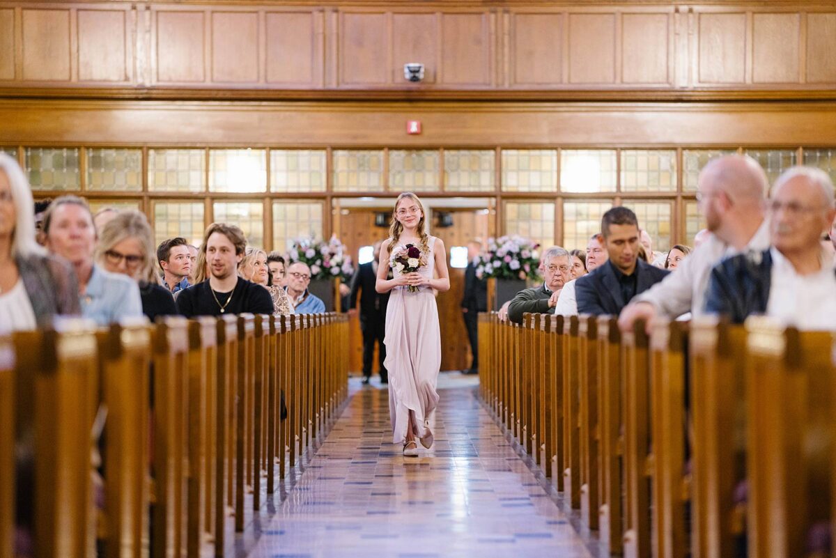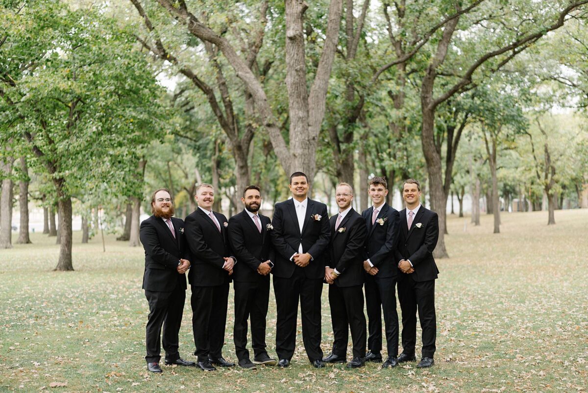 The morning began at the Armory Event Center where we documented all of the breathtaking details followed by Jordan’s epic game-day entrance with his groomsmen. Meanwhile, the ladies spent the morning at The White House Co.’s Fire Hall No. 2 with Emily Kieffer on hair and Katie Larson on makeup. We captured a few photos of the ladies in their matching pjs before Katie put on her gorgeous gown and headed out for her first look with Jordan. The tears began as Jordan turned to see his beautiful bride, and we set off to explore Island Park for portraits. The wedding party joined us for photos before traveling to First Presbyterian Church. Upon arrival, we captured family portraits by the church’s ivy-covered walls before heading in for the ceremony.