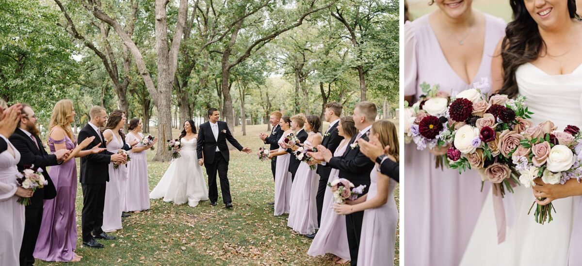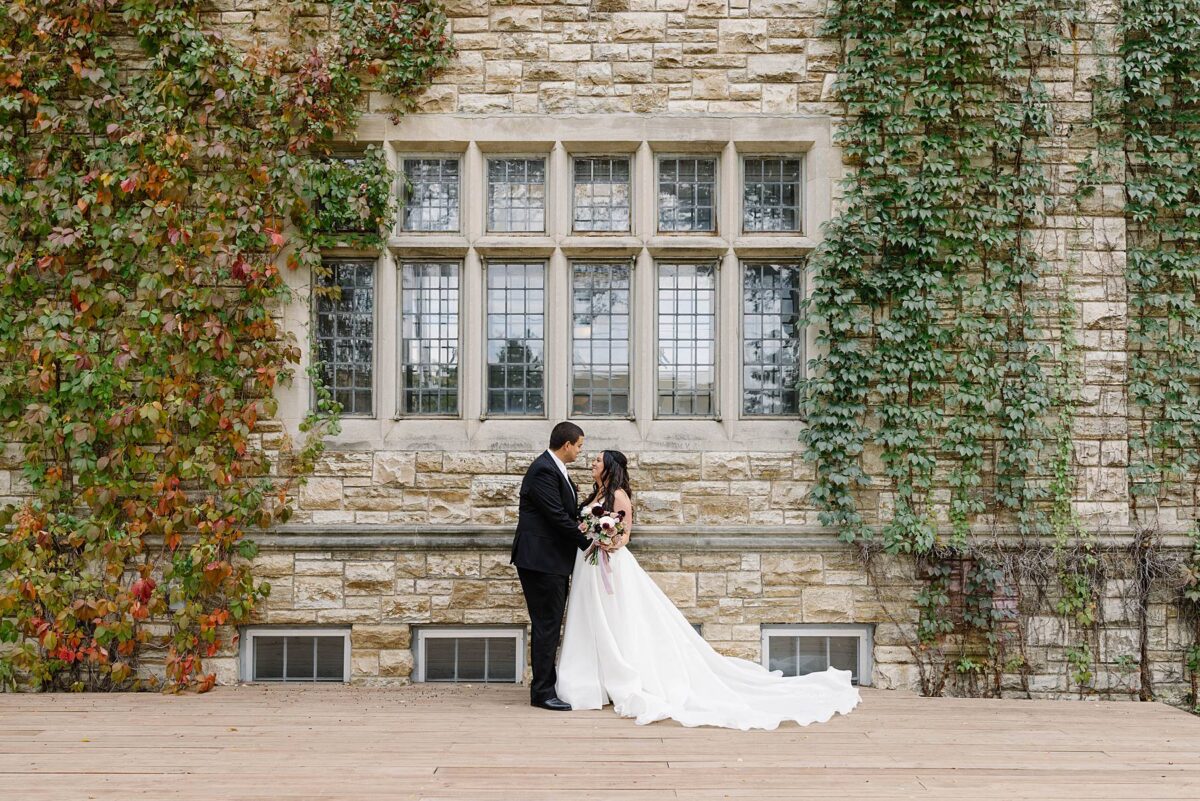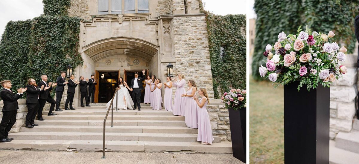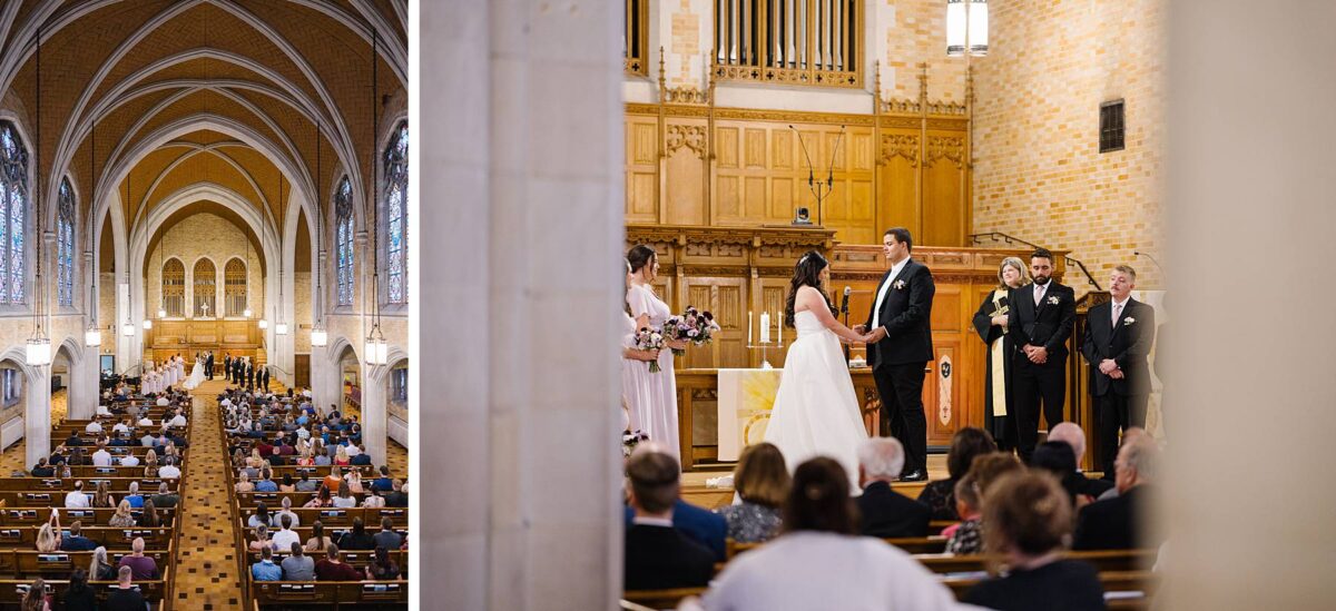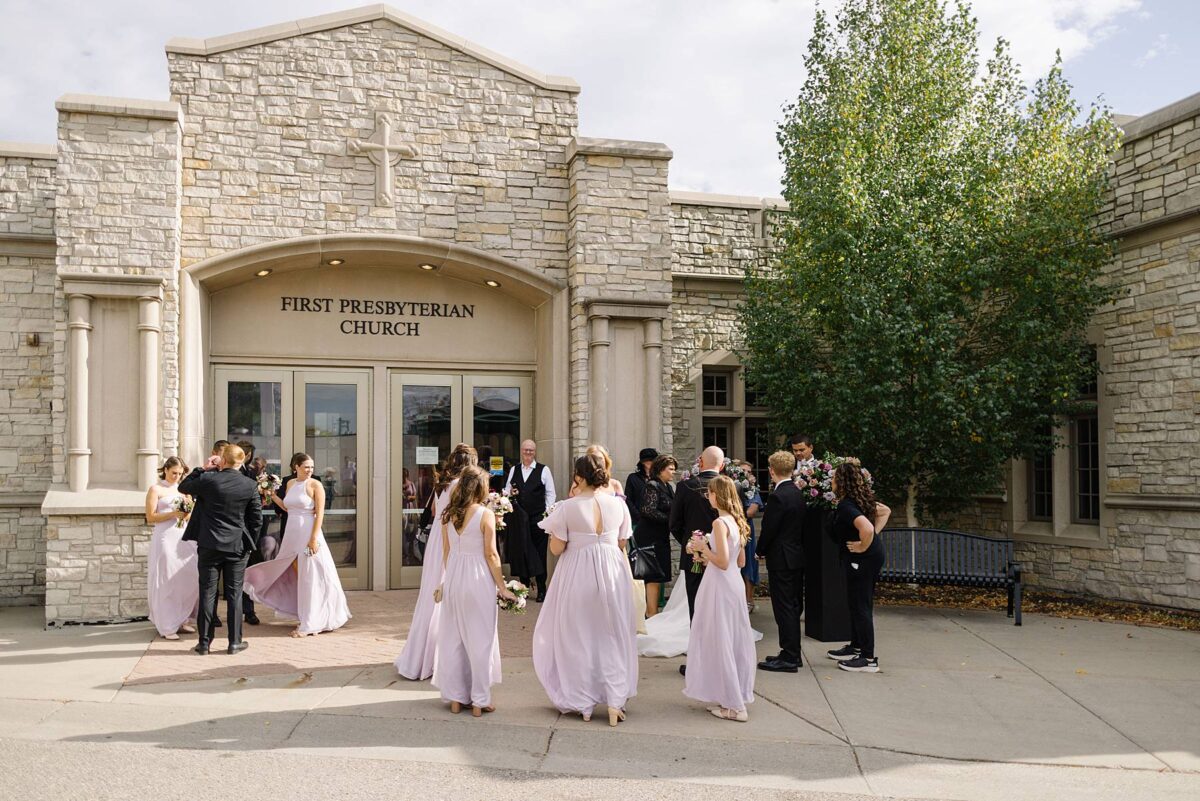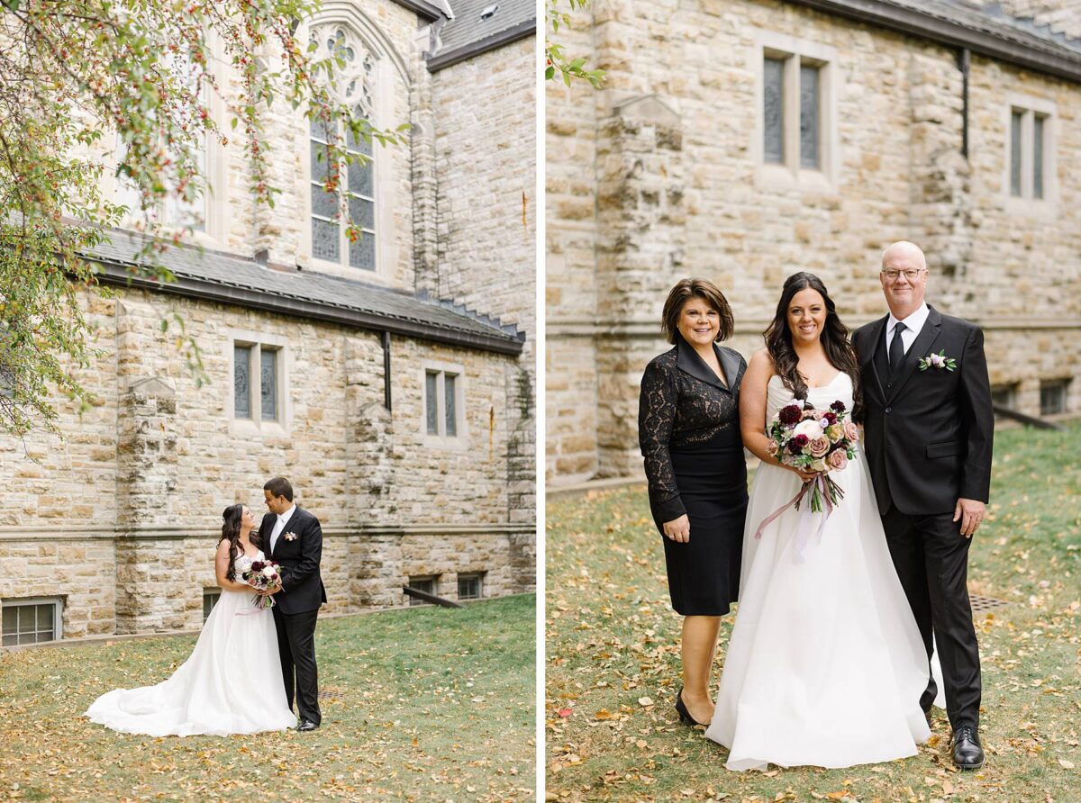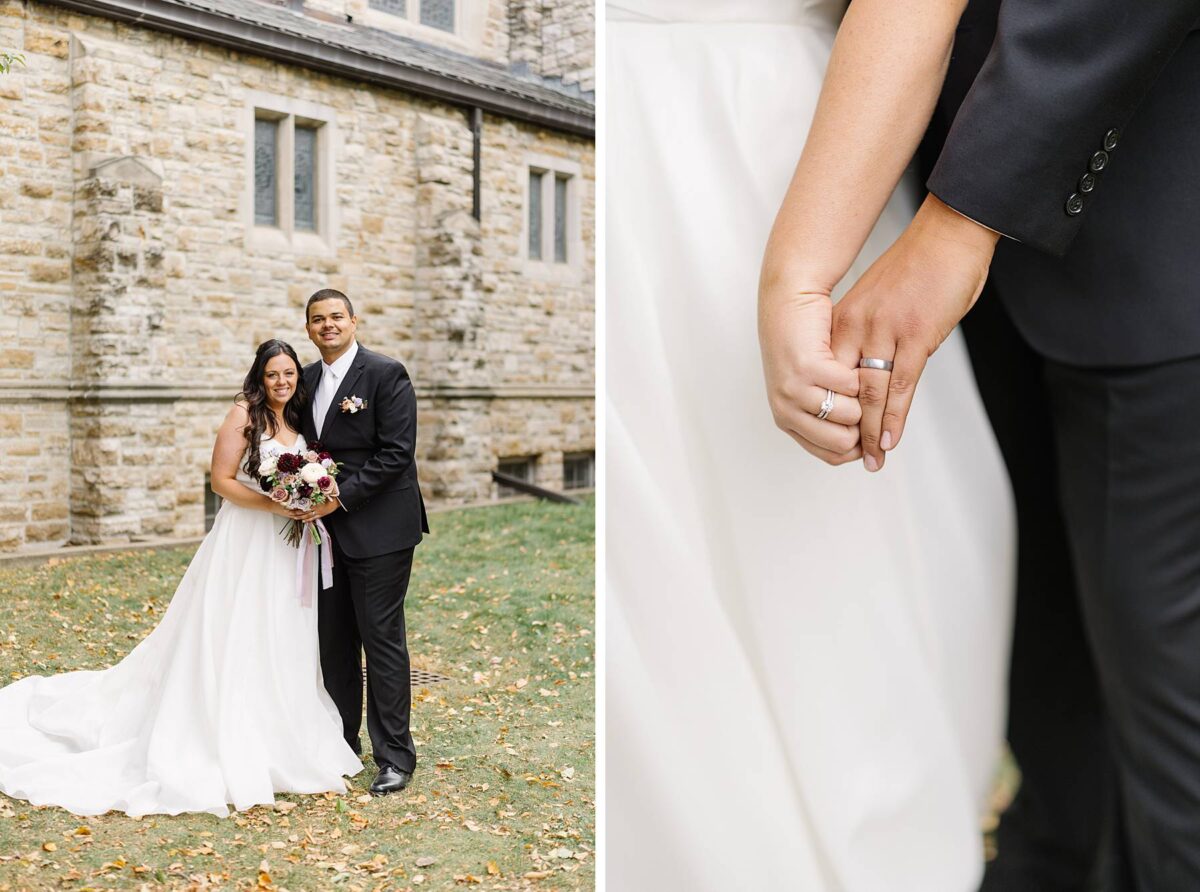 The morning began at the Armory Event Center where we documented all of the breathtaking details followed by Jordan’s epic game-day entrance with his groomsmen. Meanwhile, the ladies spent the morning at The White House Co.’s Fire Hall No. 2 with Emily Kieffer on hair and Katie Larson on makeup. We captured a few photos of the ladies in their matching pjs before Katie put on her gorgeous gown and headed out for her first look with Jordan. The tears began as Jordan turned to see his beautiful bride, and we set off to explore Island Park for portraits. The wedding party joined us for photos before traveling to First Presbyterian Church. Upon arrival, we captured family portraits by the church’s ivy-covered walls before heading in for the ceremony.