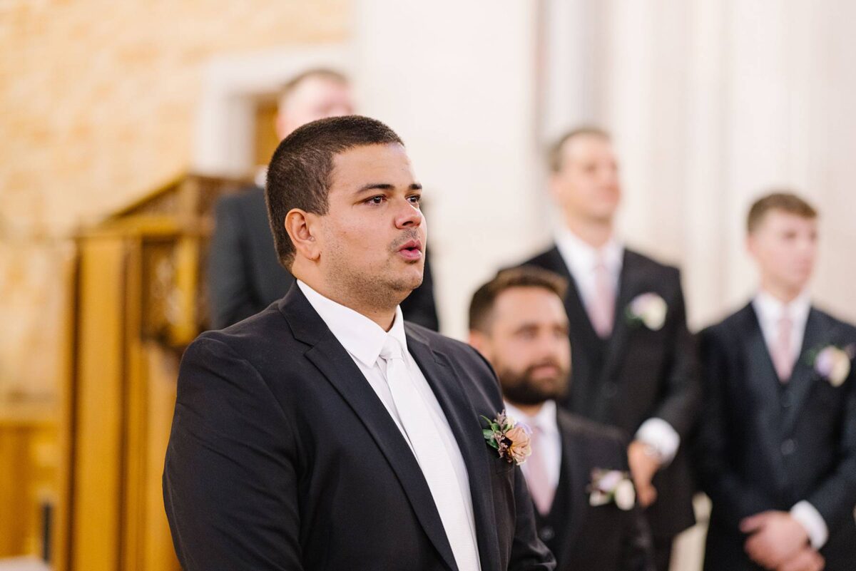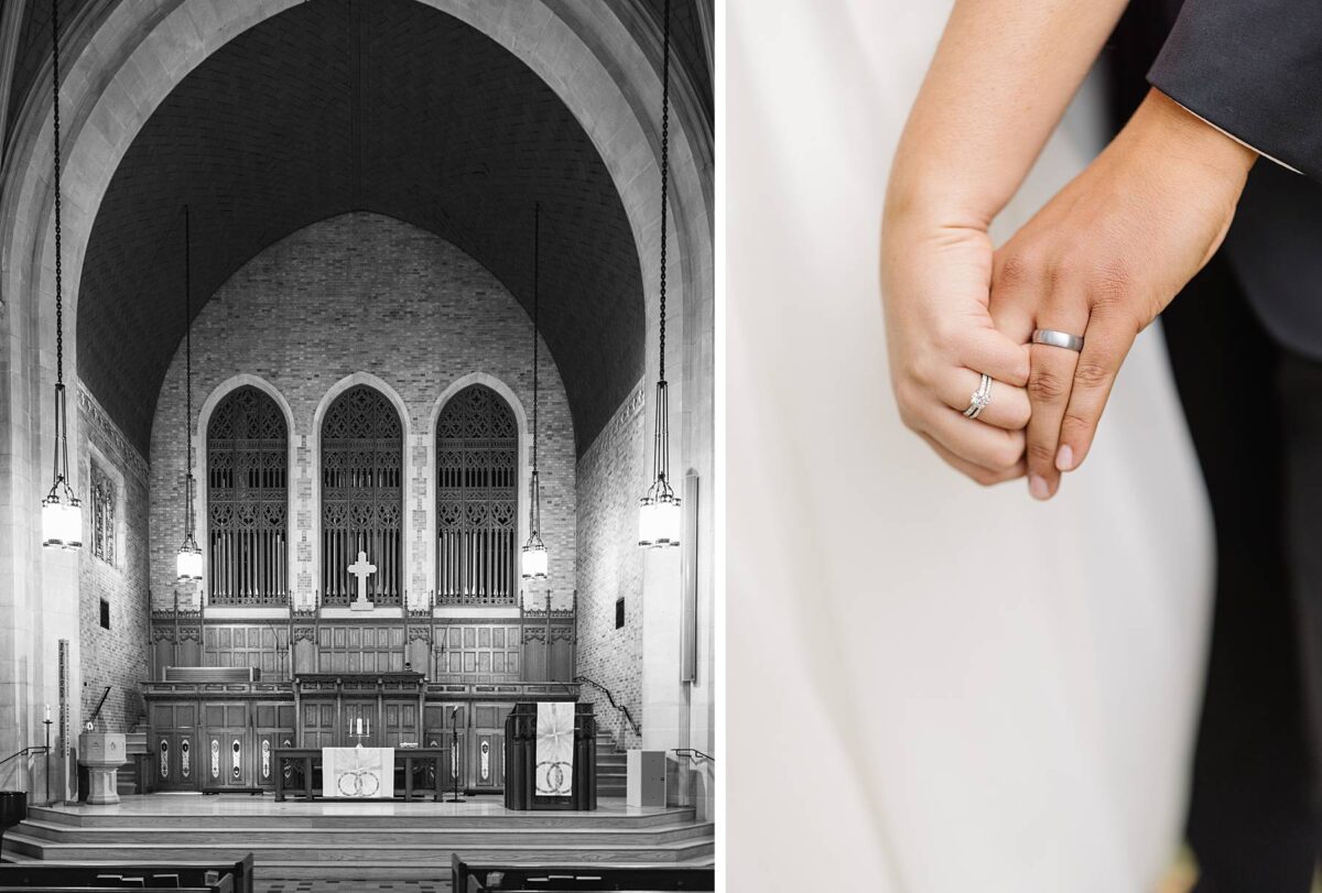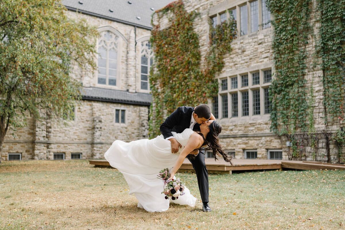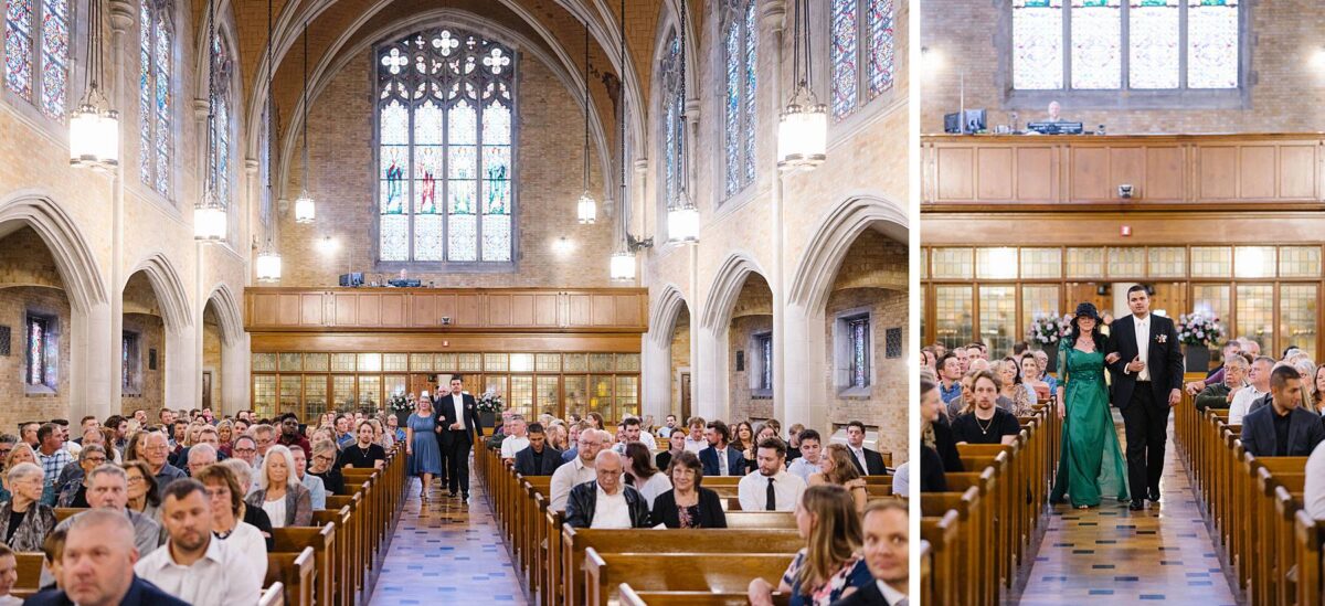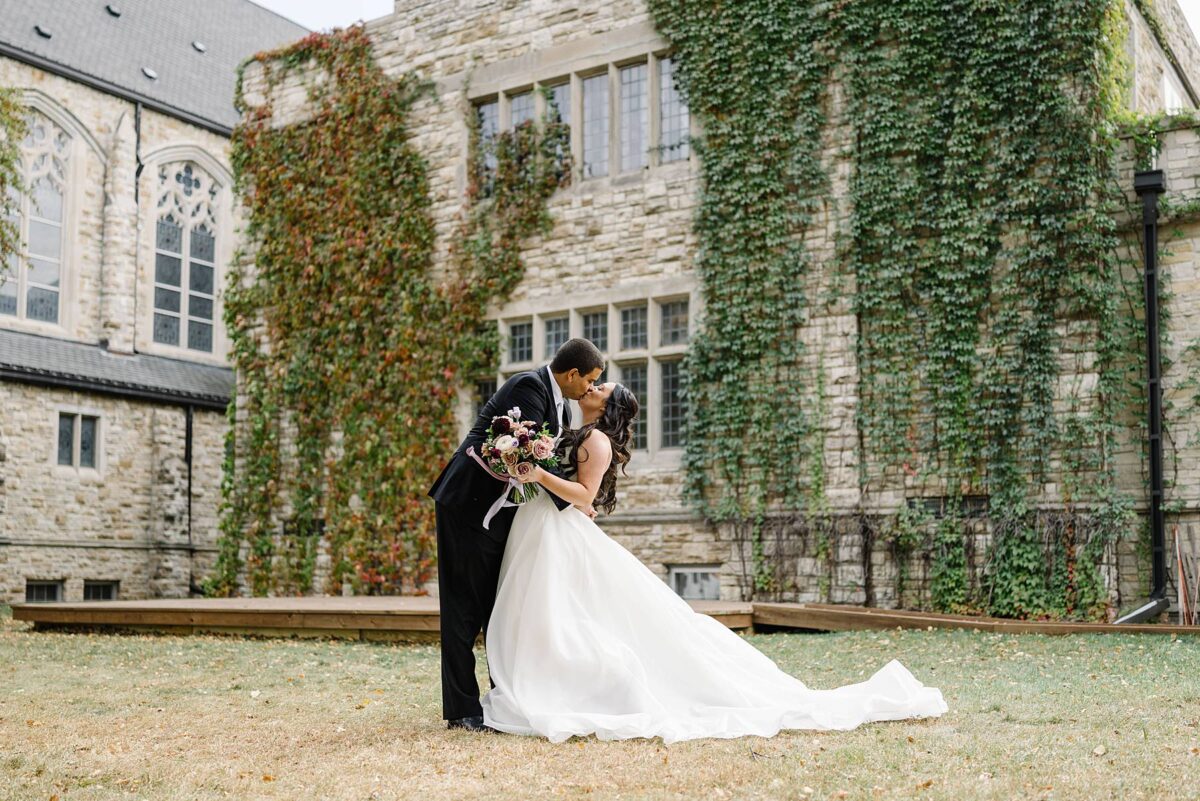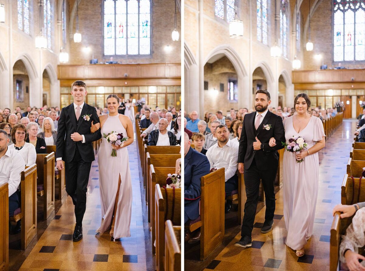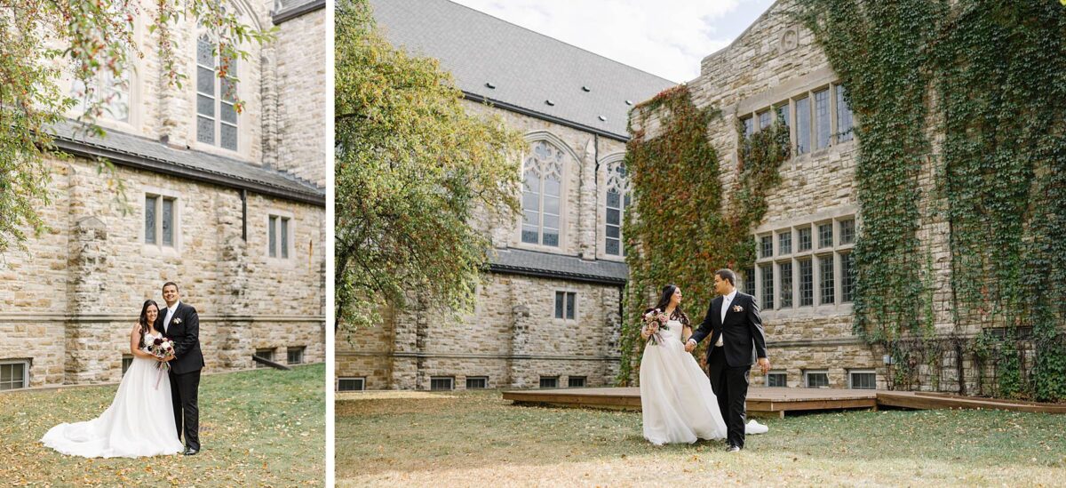 The morning began at the Armory Event Center where we documented all of the breathtaking details followed by Jordan’s epic game-day entrance with his groomsmen. Meanwhile, the ladies spent the morning at The White House Co.’s Fire Hall No. 2 with Emily Kieffer on hair and Katie Larson on makeup. We captured a few photos of the ladies in their matching pjs before Katie put on her gorgeous gown and headed out for her first look with Jordan. The tears began as Jordan turned to see his beautiful bride, and we set off to explore Island Park for portraits. The wedding party joined us for photos before traveling to First Presbyterian Church. Upon arrival, we captured family portraits by the church’s ivy-covered walls before heading in for the ceremony.