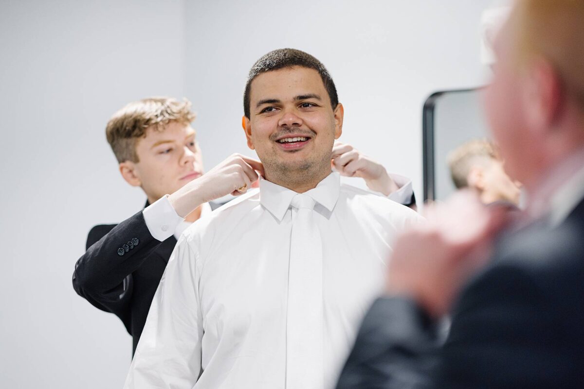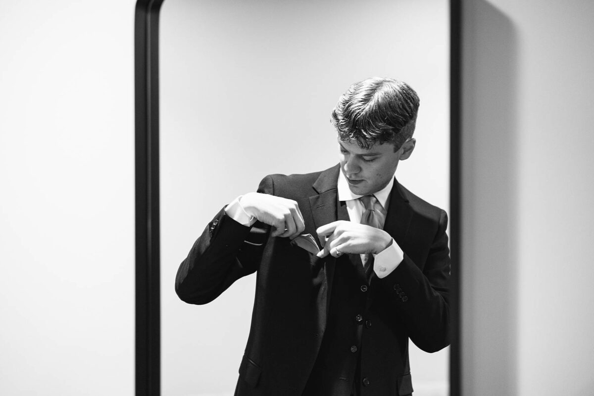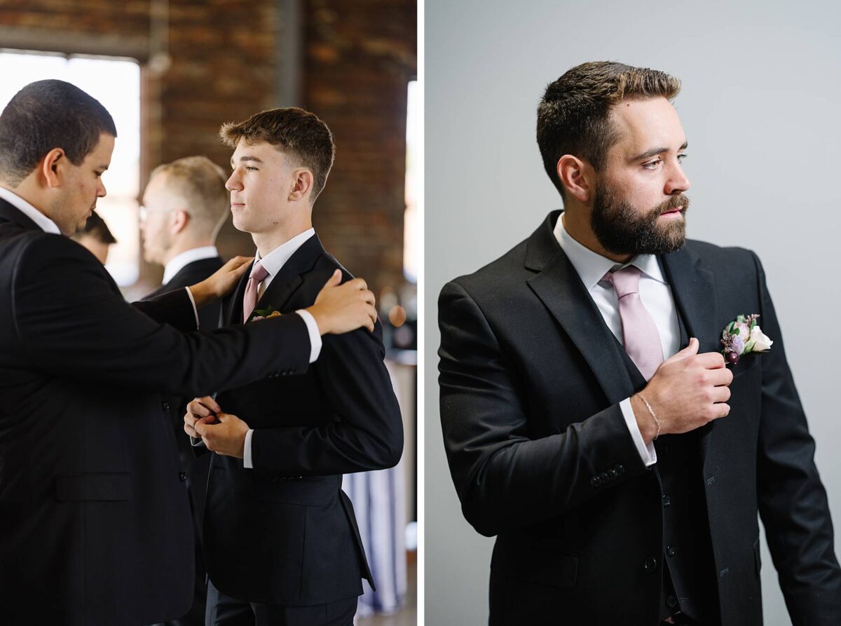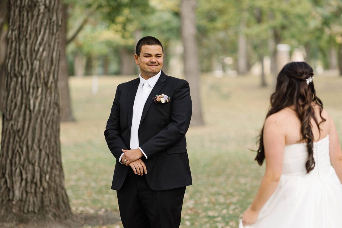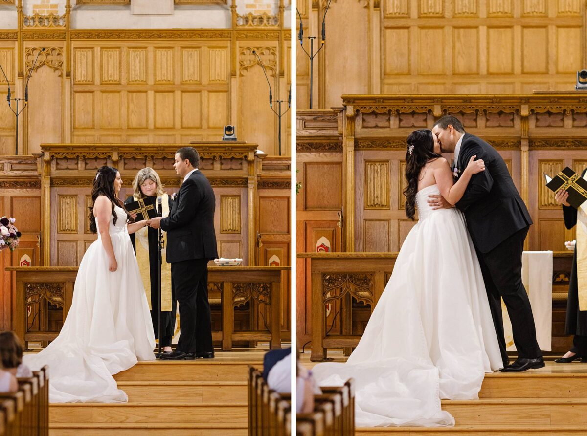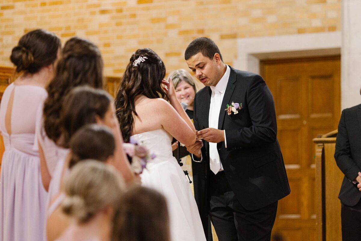 The morning began at the Armory Event Center where we documented all of the breathtaking details followed by Jordan’s epic game-day entrance with his groomsmen. Meanwhile, the ladies spent the morning at The White House Co.’s Fire Hall No. 2 with Emily Kieffer on hair and Katie Larson on makeup. We captured a few photos of the ladies in their matching pjs before Katie put on her gorgeous gown and headed out for her first look with Jordan. The tears began as Jordan turned to see his beautiful bride, and we set off to explore Island Park for portraits. The wedding party joined us for photos before traveling to First Presbyterian Church. Upon arrival, we captured family portraits by the church’s ivy-covered walls before heading in for the ceremony.