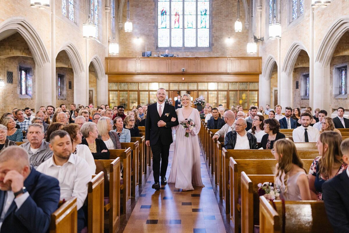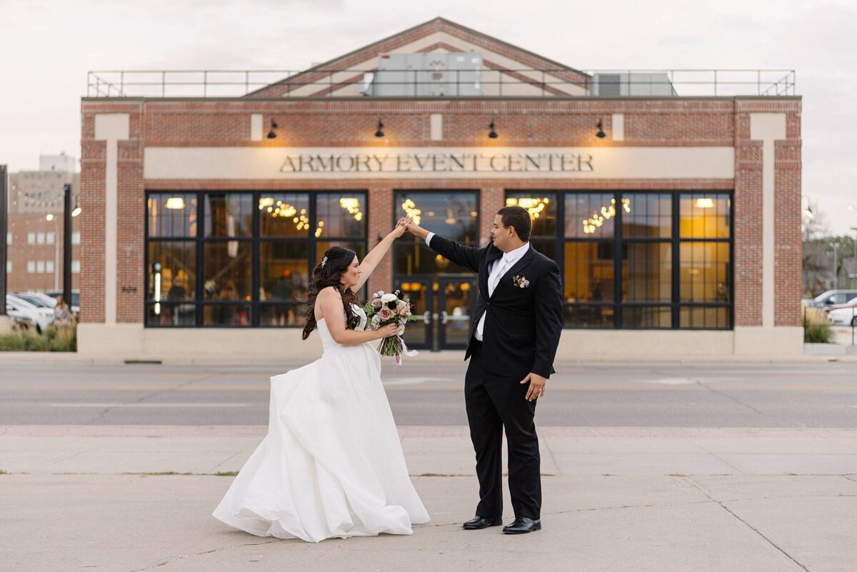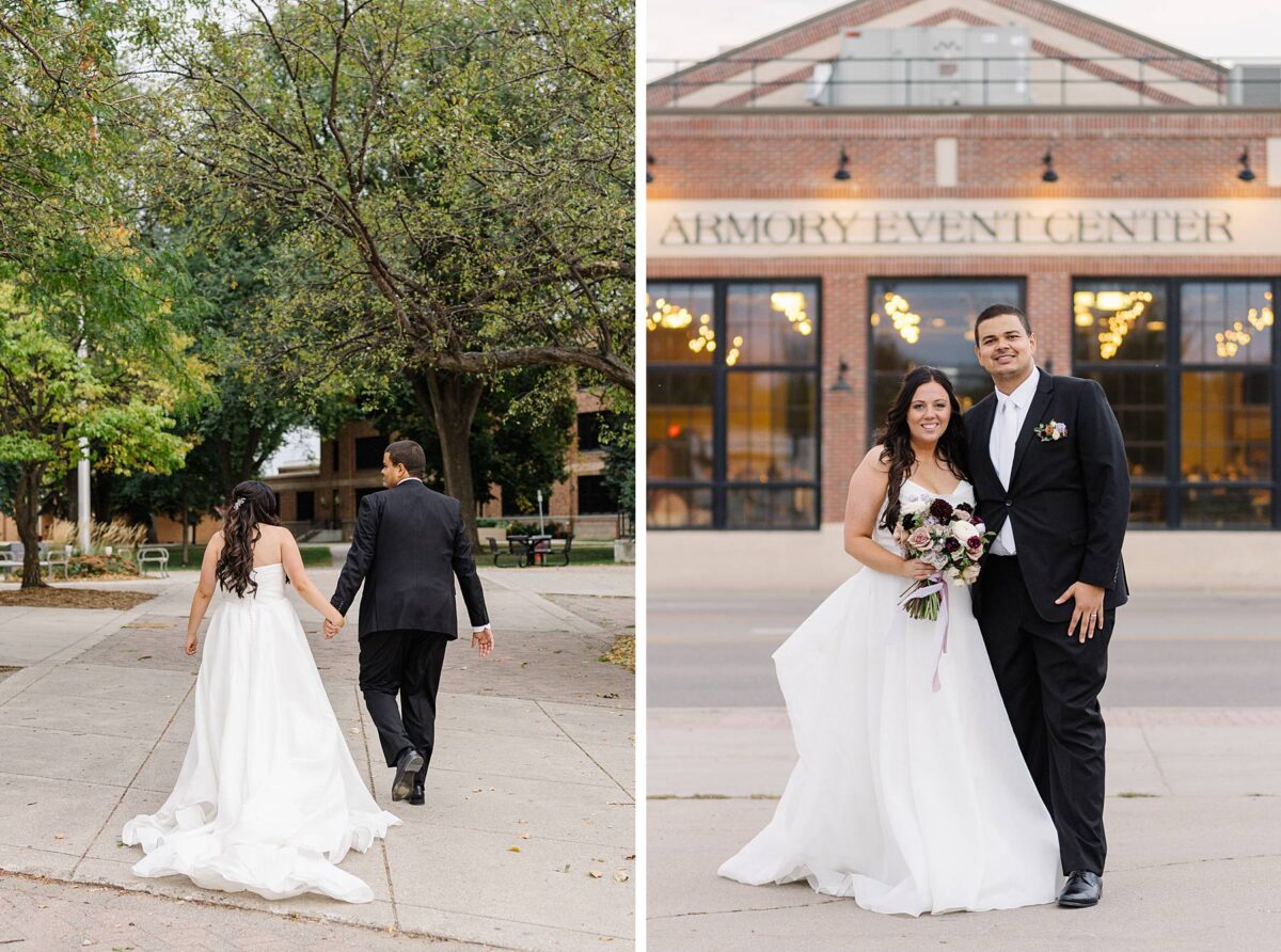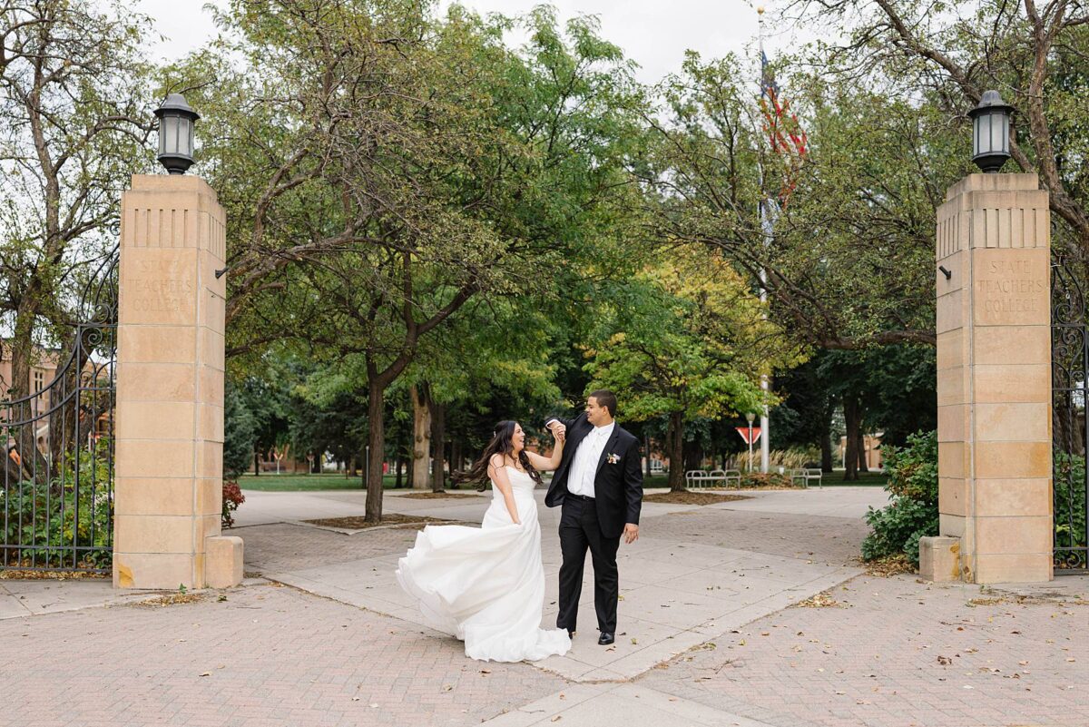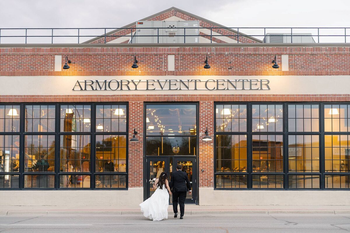 Katie and Jordan exchanged vows before their family and friends and exited to cheers as they kissed in the aisle! We travelled to MSU, Moorhead for photos with a sweet nod to how their love story began before returning to the Armory for the reception. Guests mingled throughout cocktail hour, and the space looked stunning with breathtaking arrangements by Love Always Floral. Everyone enjoyed dinner from Urban Foods Catering, speeches, and cupcakes for dessert. The evening came to a close with an epic dance party hosted by Fuze Entertainment. Katie and Jordan, your wedding was incredible, and we hope you had an amazing time exploring New York as newlyweds!