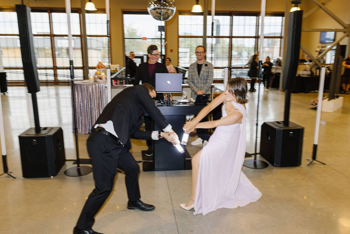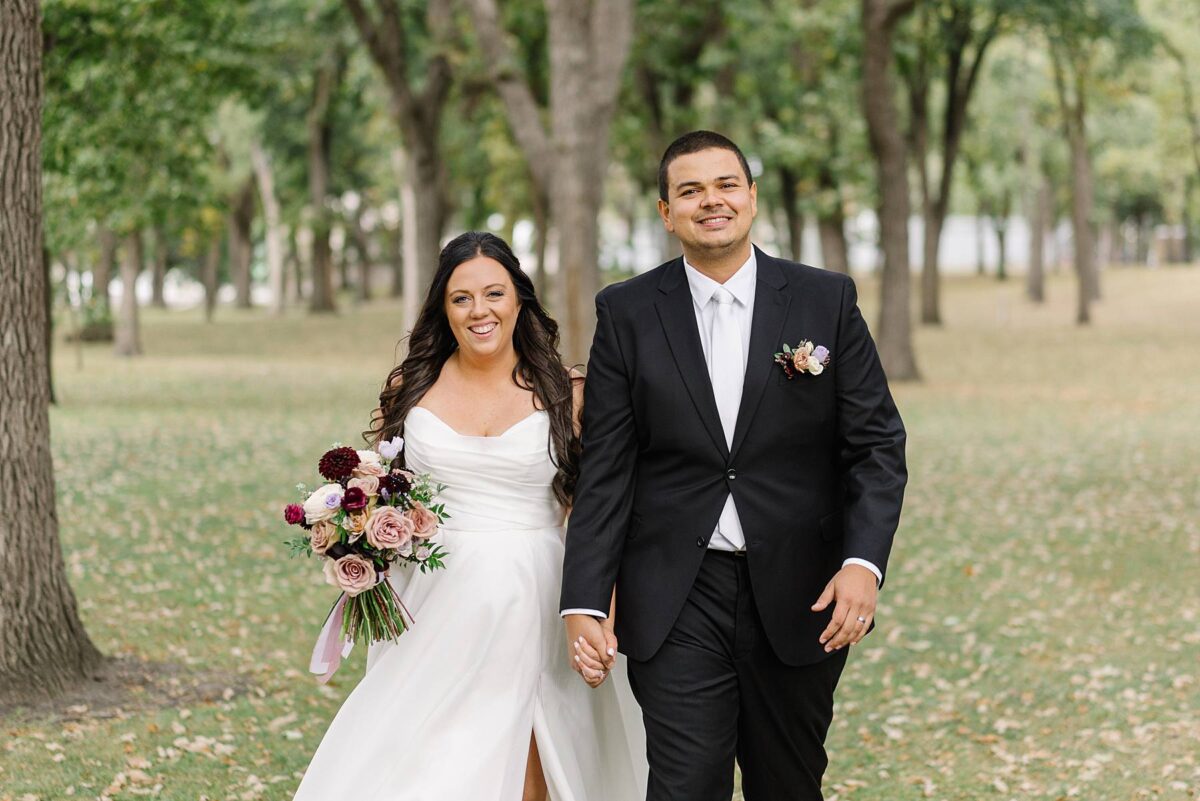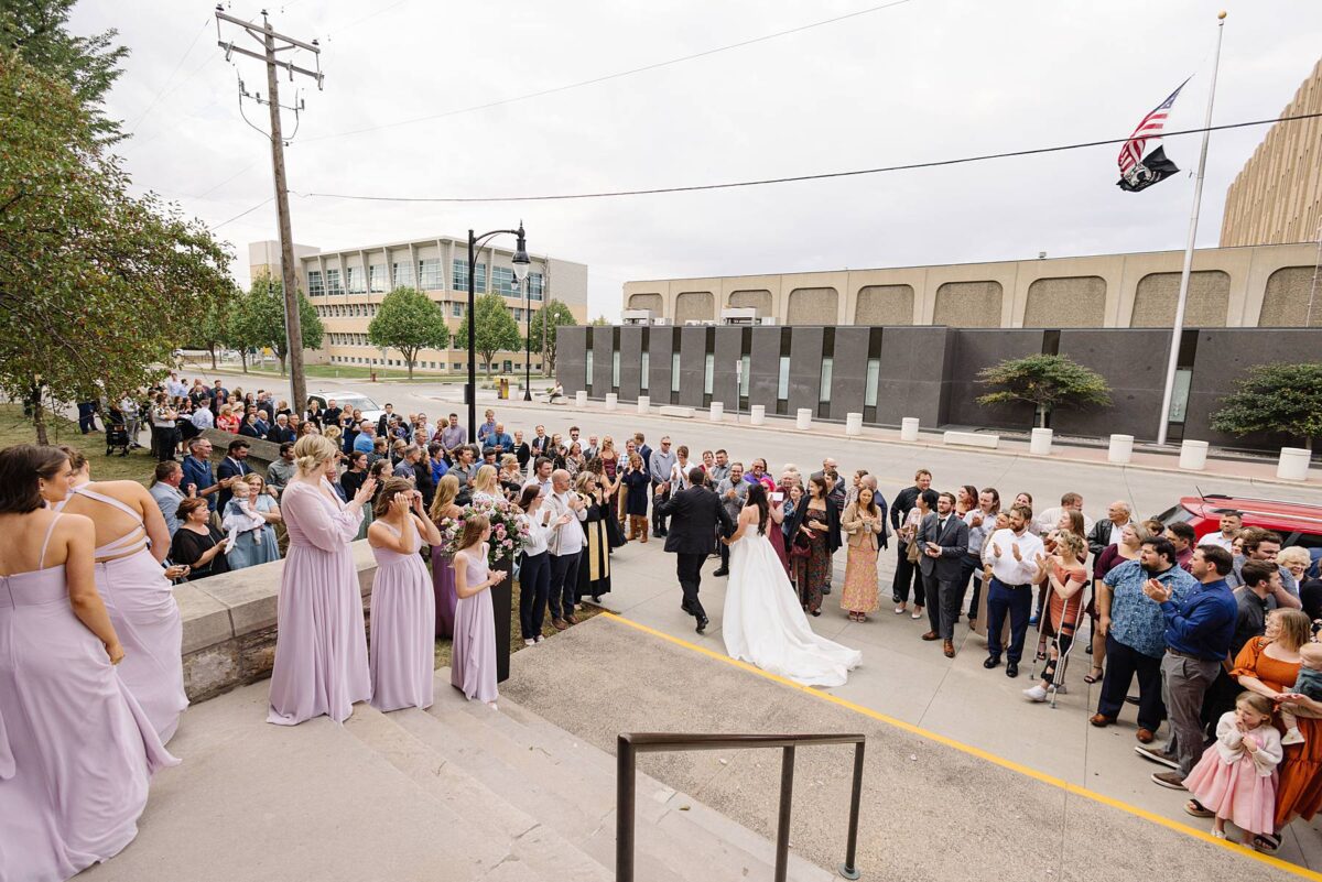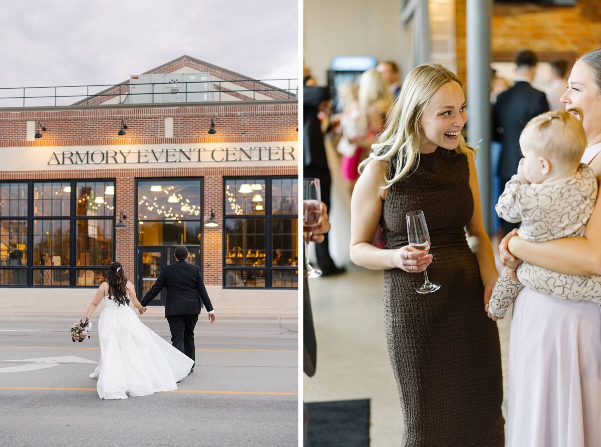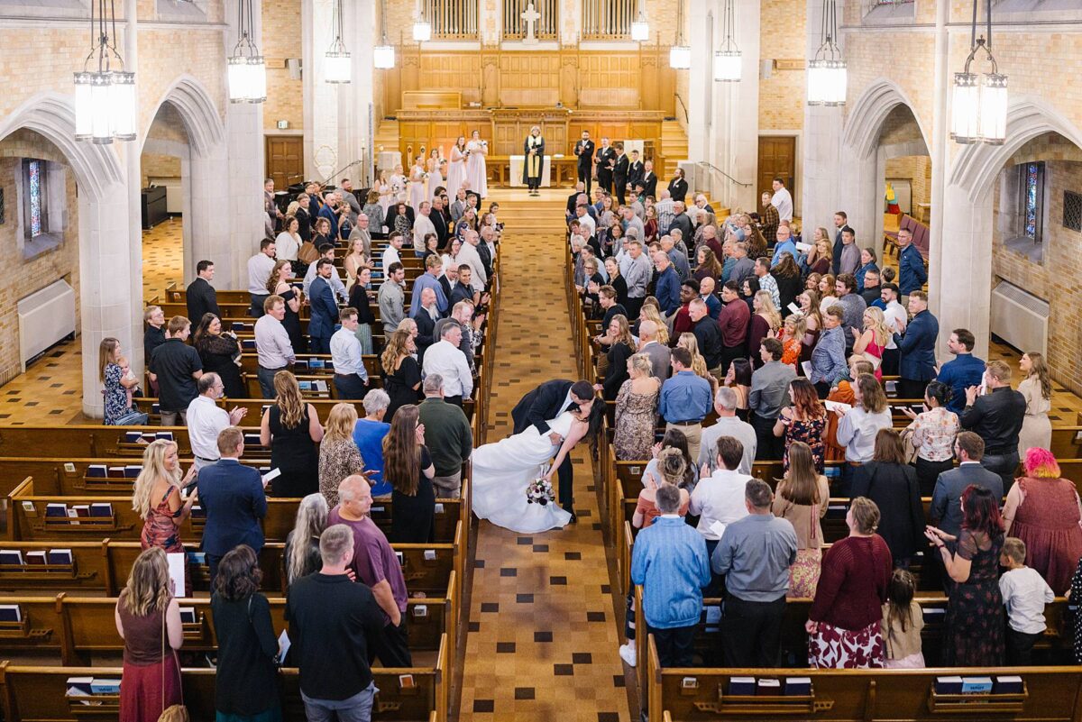 Katie and Jordan exchanged vows before their family and friends and exited to cheers as they kissed in the aisle! We travelled to MSU, Moorhead for photos with a sweet nod to how their love story began before returning to the Armory for the reception. Guests mingled throughout cocktail hour, and the space looked stunning with breathtaking arrangements by Love Always Floral. Everyone enjoyed dinner from Urban Foods Catering, speeches, and cupcakes for dessert. The evening came to a close with an epic dance party hosted by Fuze Entertainment. Katie and Jordan, your wedding was incredible, and we hope you had an amazing time exploring New York as newlyweds!