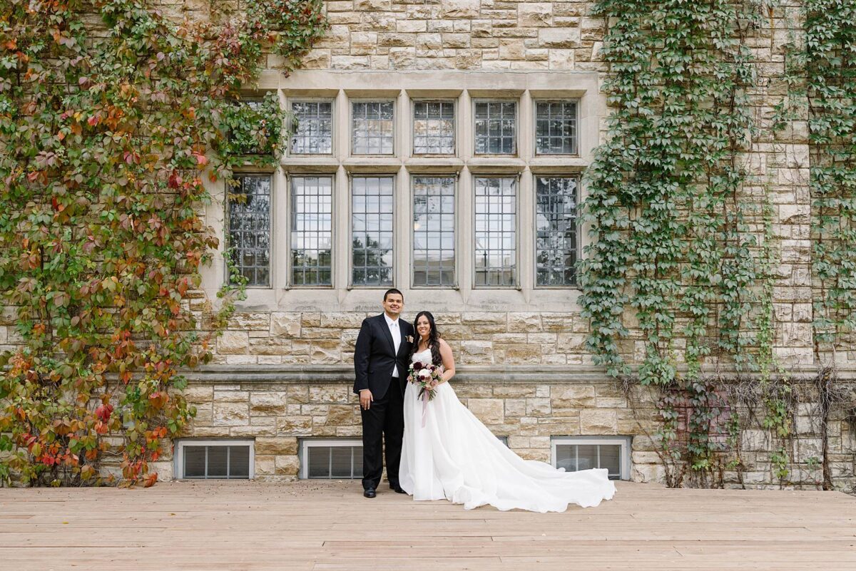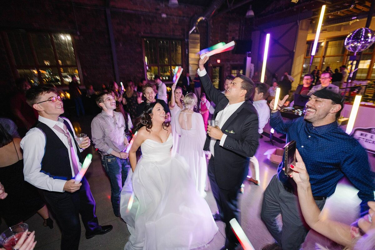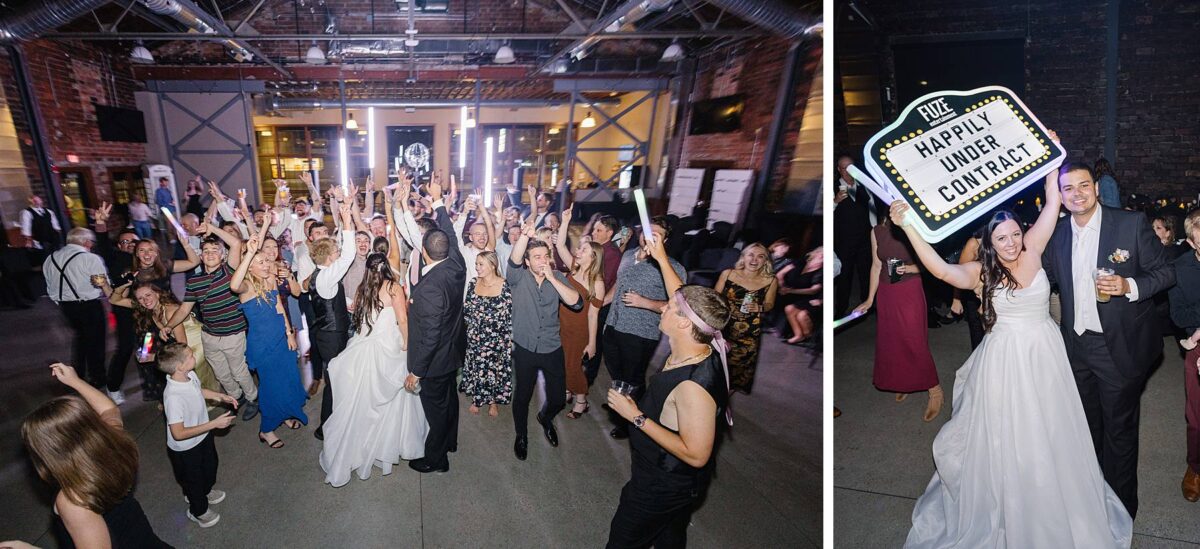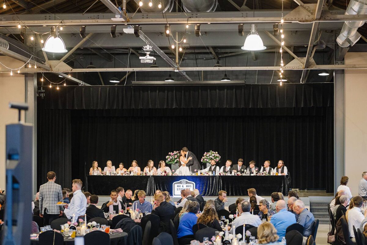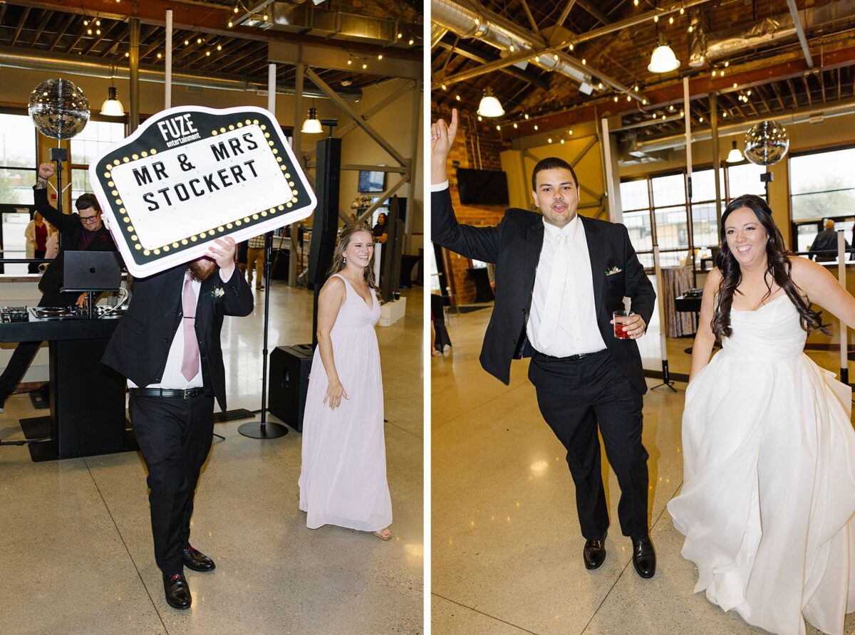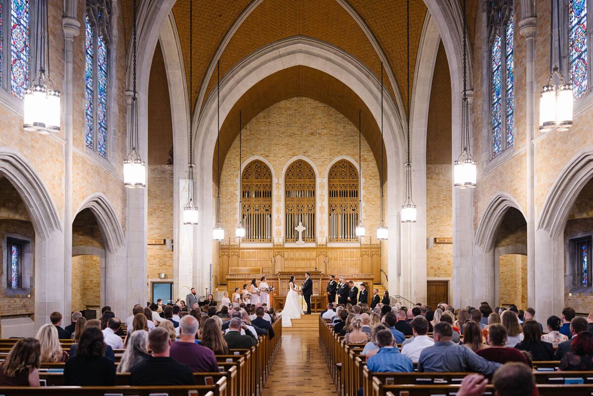Katie and Jordan exchanged vows before their family and friends and exited to cheers as they kissed in the aisle! We travelled to MSU, Moorhead for photos with a sweet nod to how their love story began before returning to the Armory for the reception. Guests mingled throughout cocktail hour, and the space looked stunning with breathtaking arrangements by Love Always Floral. Everyone enjoyed dinner from Urban Foods Catering, speeches, and cupcakes for dessert. The evening came to a close with an epic dance party hosted by Fuze Entertainment. Katie and Jordan, your wedding was incredible, and we hope you had an amazing time exploring New York as newlyweds!