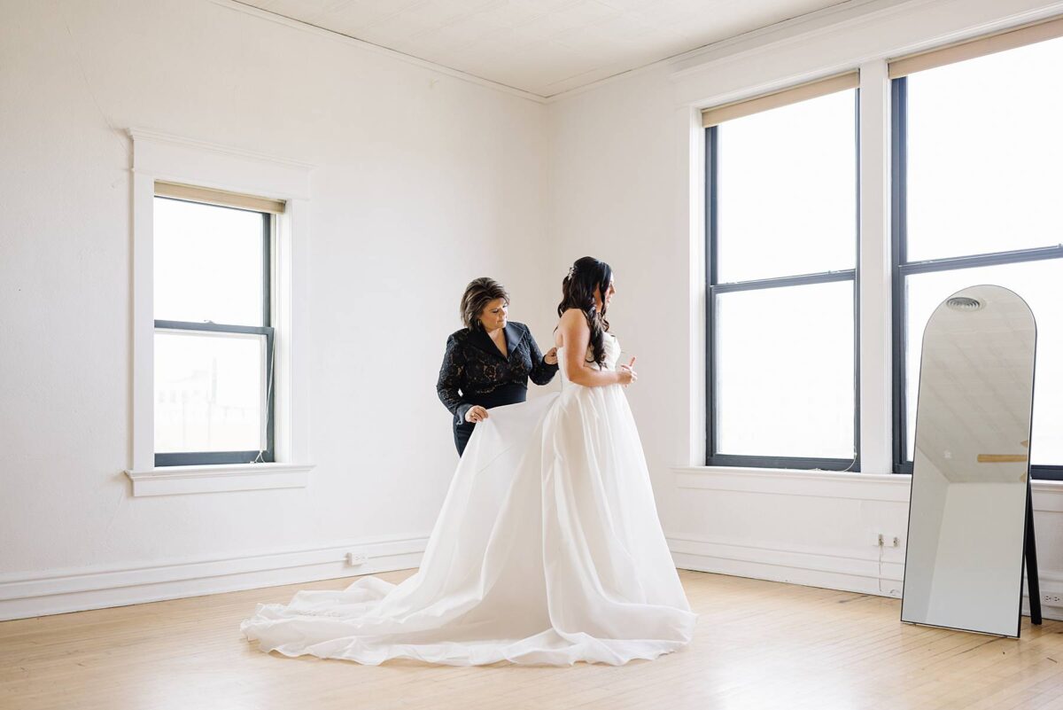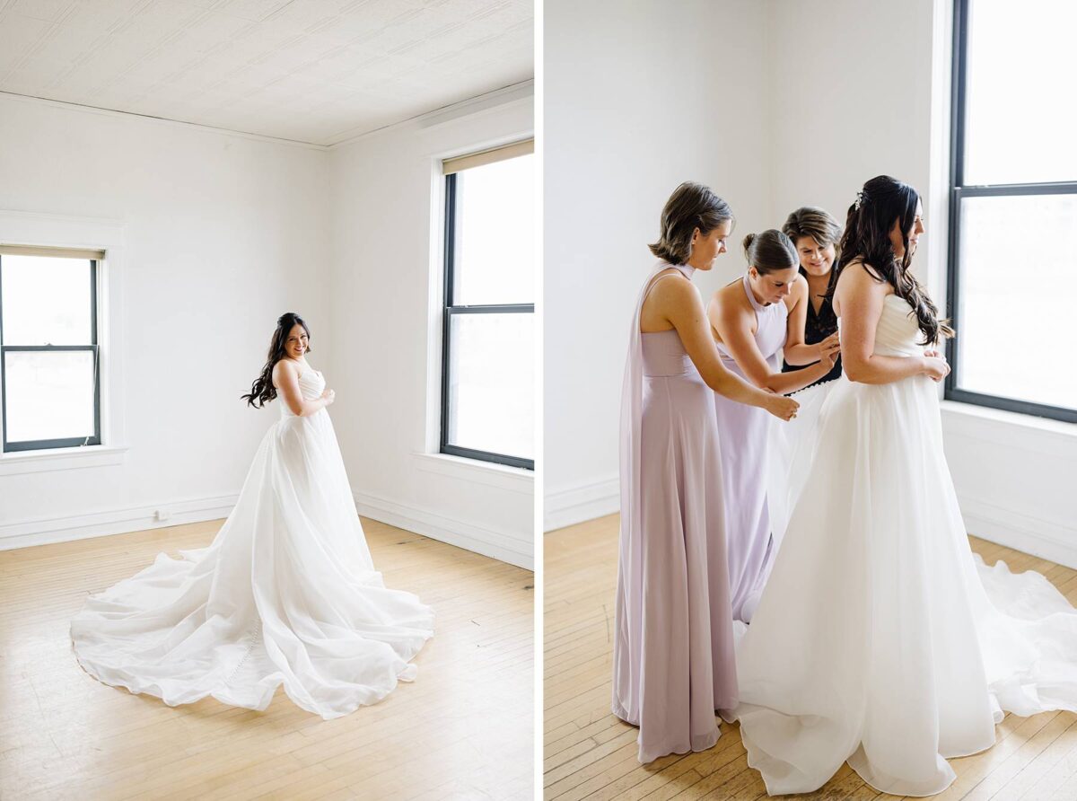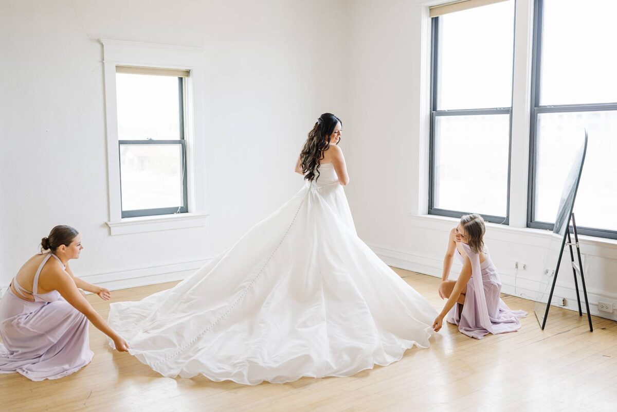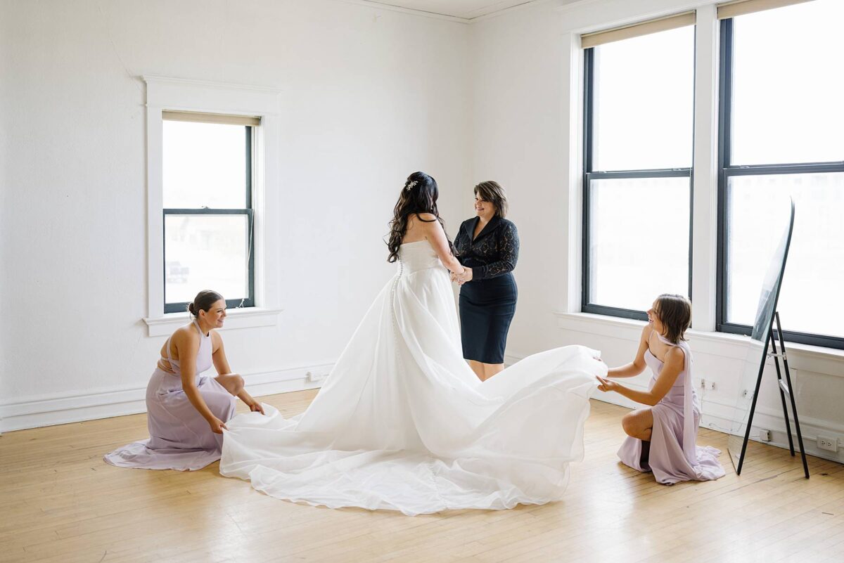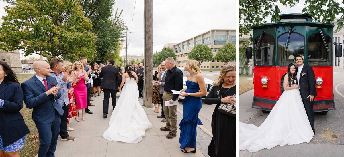 Katie and Jordan exchanged vows before their family and friends and exited to cheers as they kissed in the aisle! We travelled to MSU, Moorhead for photos with a sweet nod to how their love story began before returning to the Armory for the reception. Guests mingled throughout cocktail hour, and the space looked stunning with breathtaking arrangements by Love Always Floral. Everyone enjoyed dinner from Urban Foods Catering, speeches, and cupcakes for dessert. The evening came to a close with an epic dance party hosted by Fuze Entertainment. Katie and Jordan, your wedding was incredible, and we hope you had an amazing time exploring New York as newlyweds!