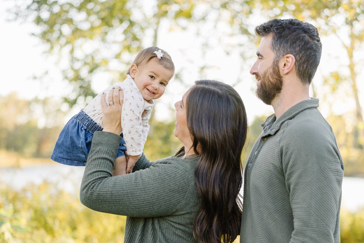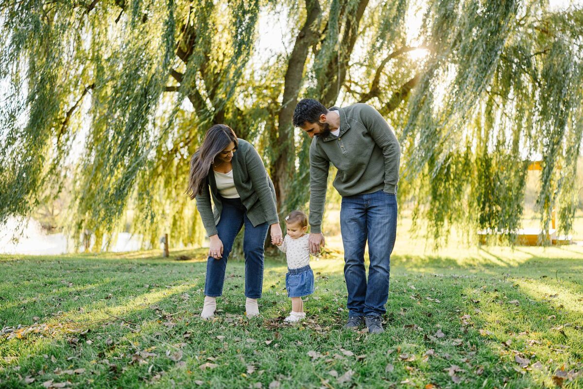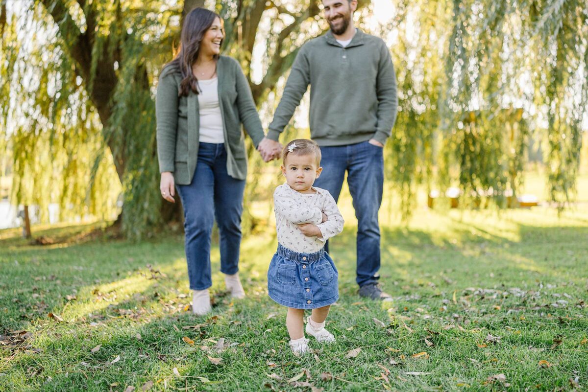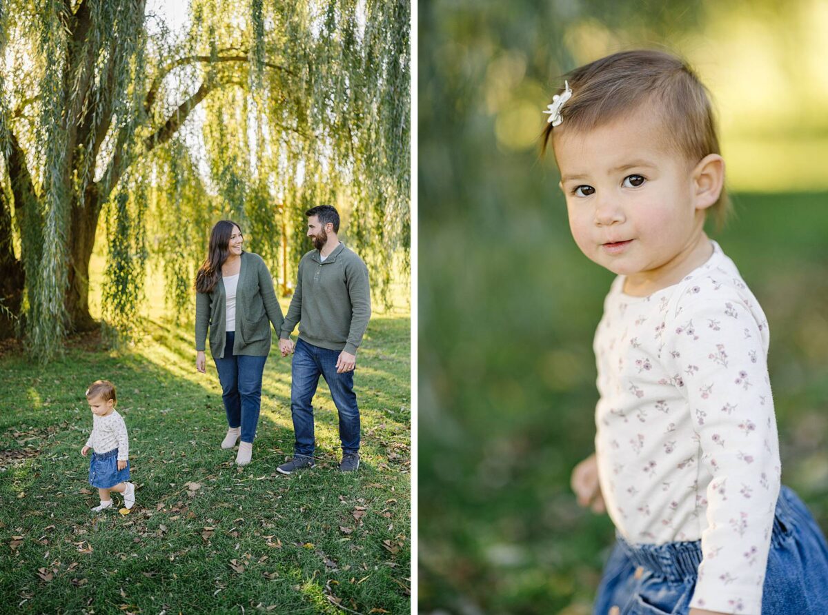 We met for April’s family session on a gorgeous fall evening, and the weather did not disappoint. Golden hour was at its finest, and the temps were ideal for portraits. Their outfits were perfect for the setting, and their tones blended beautifully with all the natural backdrops! We first had the pleasure of connecting with April as the coordinator of a few of our weddings. She has been a delight to work with, and we met her husband when we photographed a session for them at a breathtaking beach in Naples. We celebrated with them as they welcomed their baby girl to their family and captured their first family photos when she was just a few months old. It’s hard to believe how quickly time flies, as she is now already one!