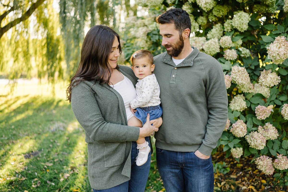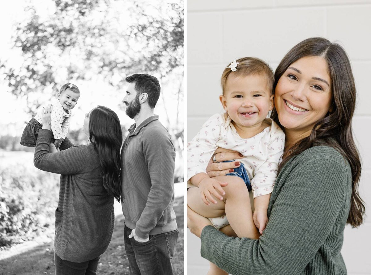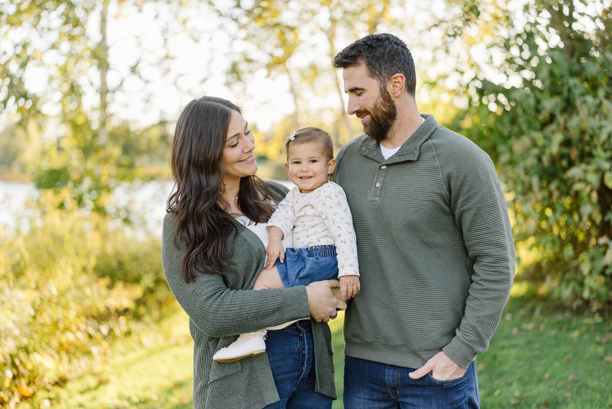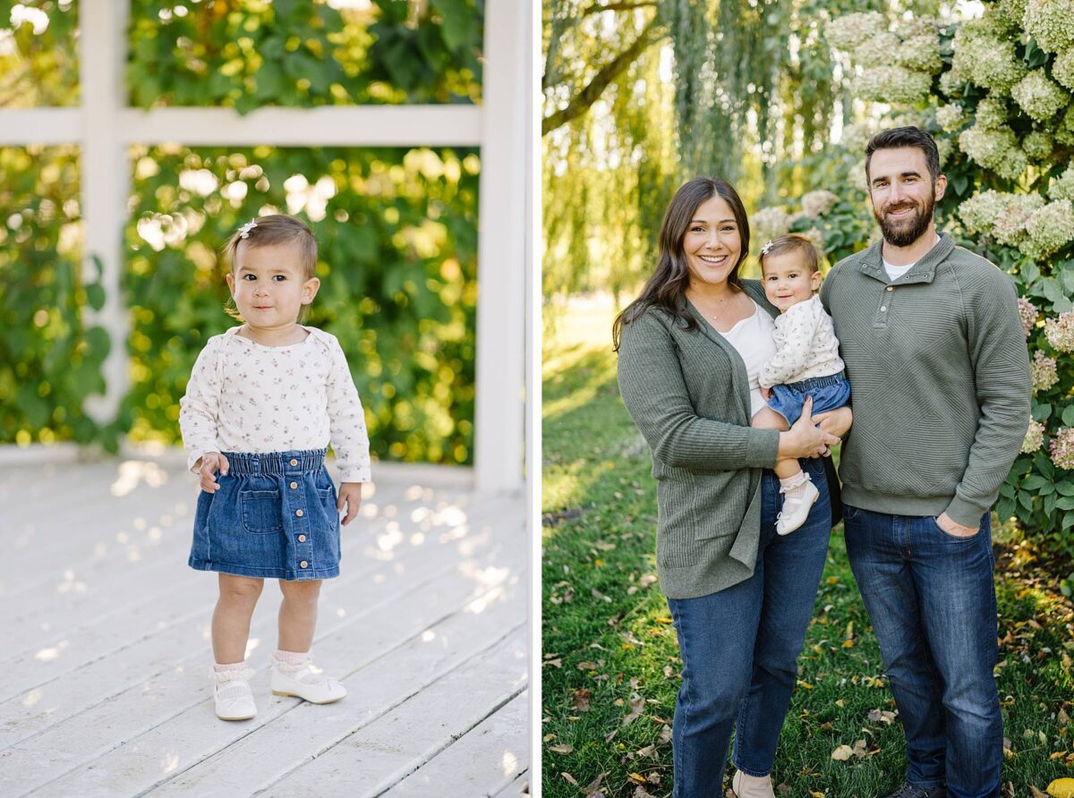 We met for April’s family session on a gorgeous fall evening, and the weather did not disappoint. Golden hour was at its finest, and the temps were ideal for portraits. Their outfits were perfect for the setting, and their tones blended beautifully with all the natural backdrops! We first had the pleasure of connecting with April as the coordinator of a few of our weddings. She has been a delight to work with, and we met her husband when we photographed a session for them at a breathtaking beach in Naples. We celebrated with them as they welcomed their baby girl to their family and captured their first family photos when she was just a few months old. It’s hard to believe how quickly time flies, as she is now already one!