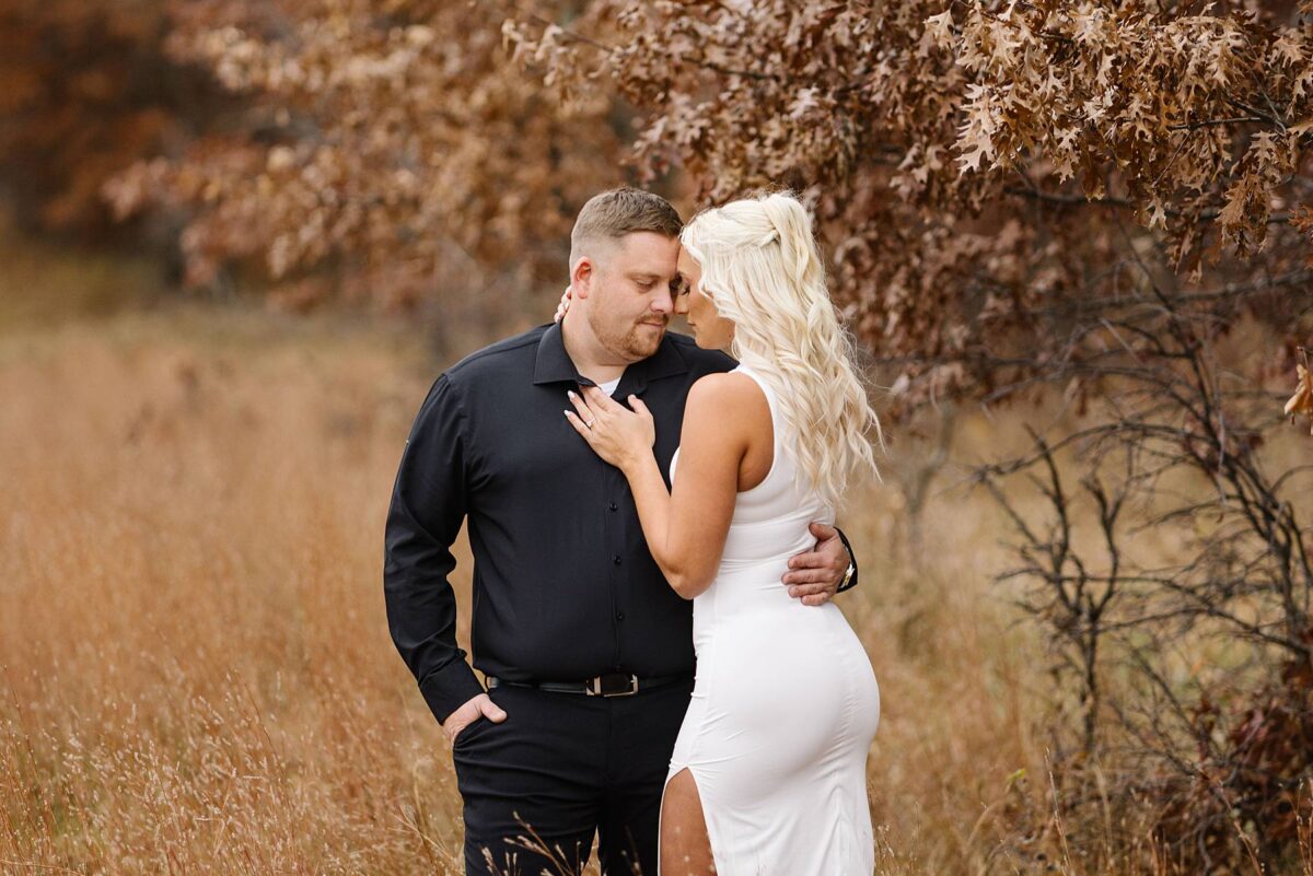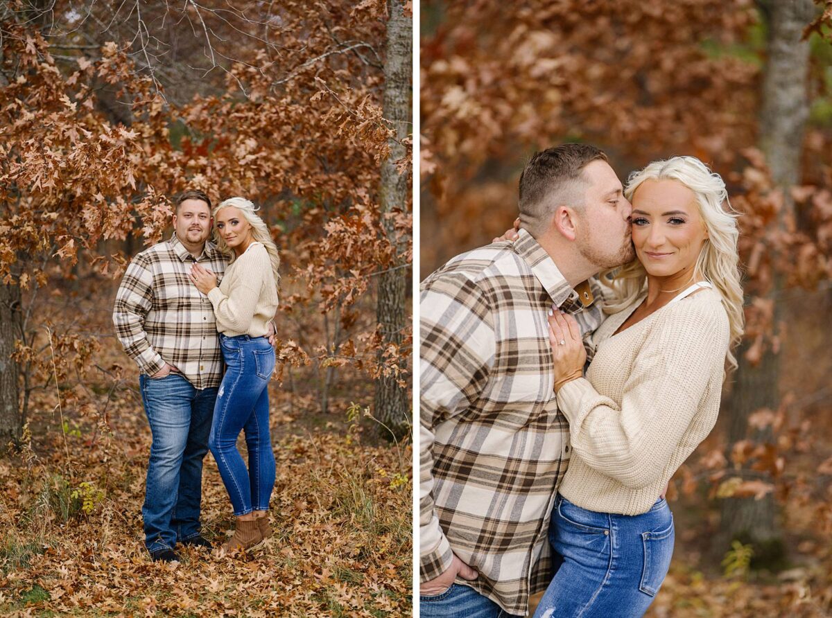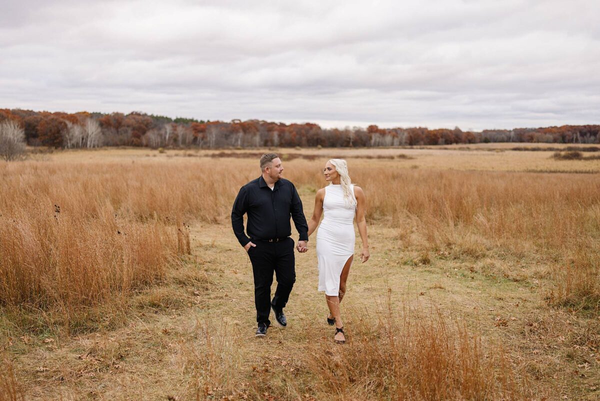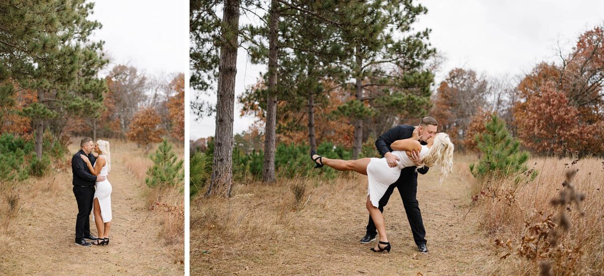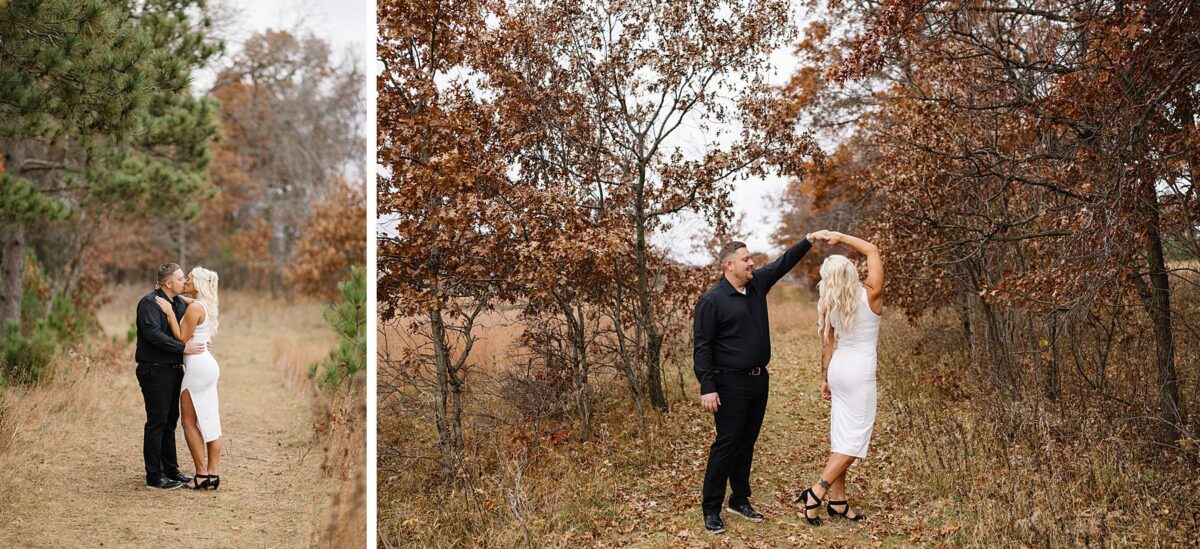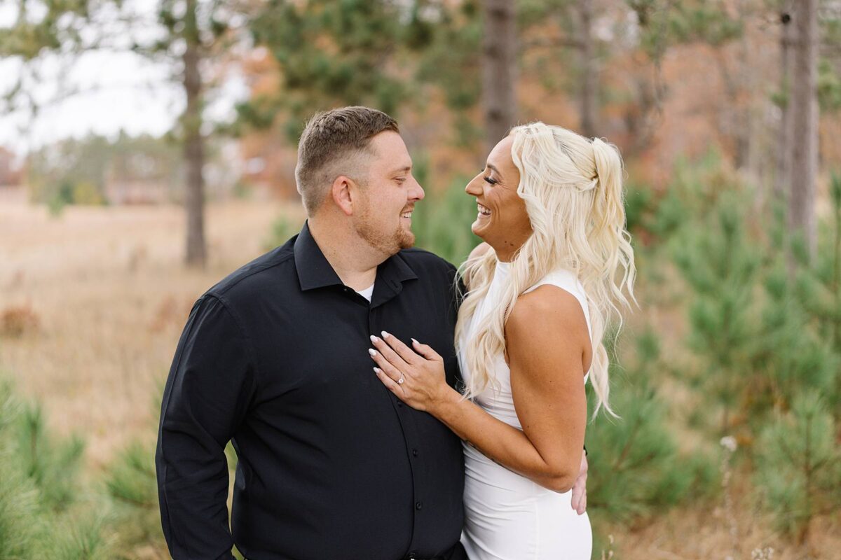 For couples planning their engagement session, I always recommend considering locations with a variety of backdrops, whether they be an urban or a more natural setting.  No matter the season, pine trees provide gorgeous texture, and year-round color – perfect for late autumn when the leaves begins to fade.  Pairing neutral outfits with the forest’s rich tones creates a timeless palette that always photographs beautifully, and Lindsey and Nick’s colors could not have been more perfect for the setting!  We had the best time with these two, and can’t wait to be a part of documenting their fall wedding at Woods & Co. Weddings + Events in Pepin!