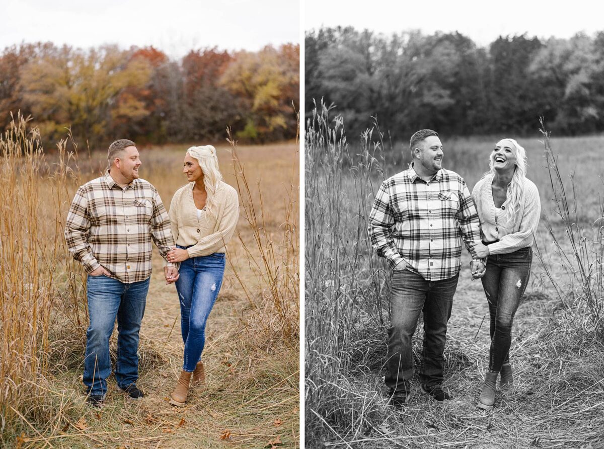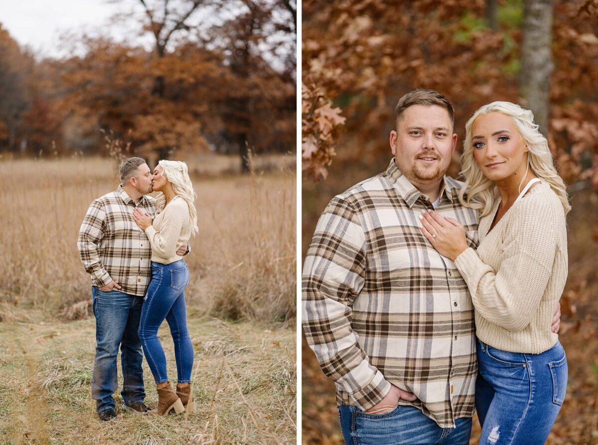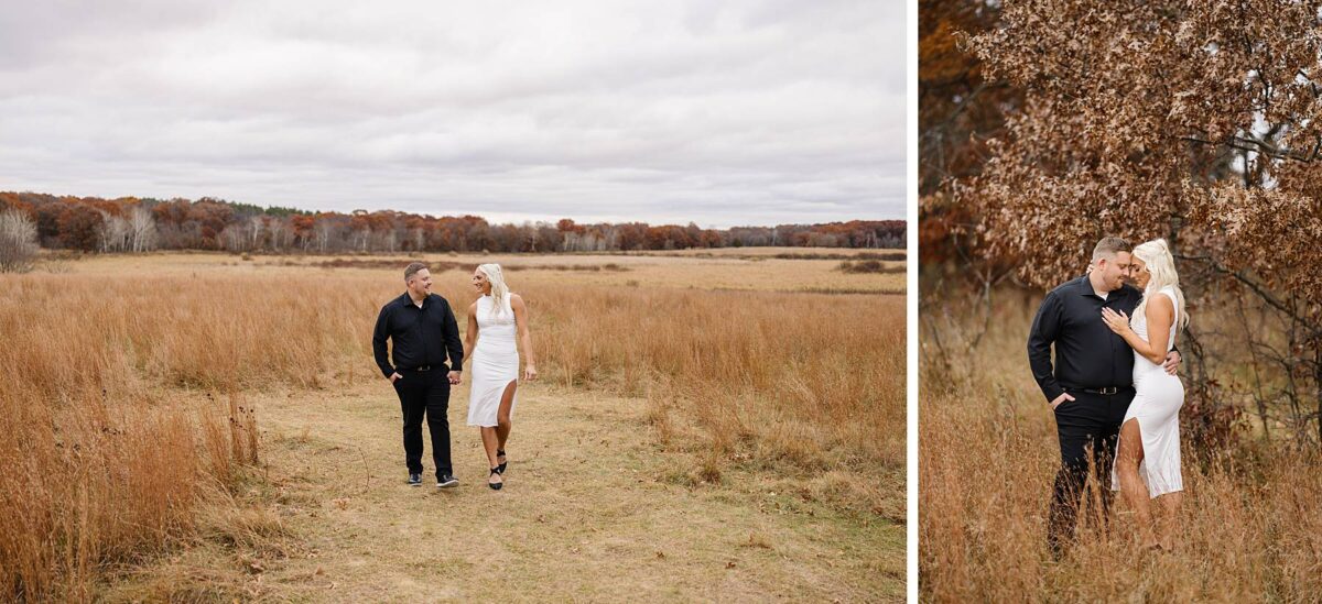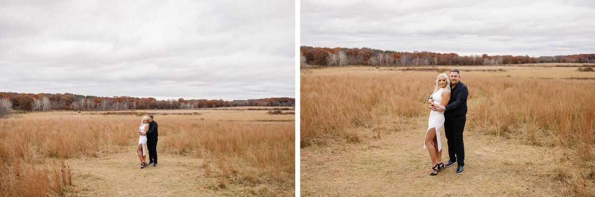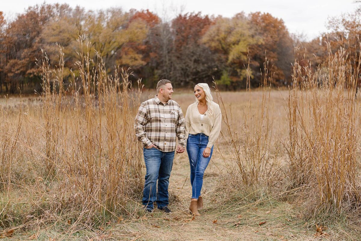 From the moment these two reached out to book their wedding, we have been so excited for their engagement session.  We have had one of the warmest fall seasons that we can remember, and we were thrilled that the mild weather has extended into November so that we could squeeze in a few more sessions before the temps begin to drop.  We knew that Andover would be the perfect place for their session, with its warm tones in the oak trees and its vibrant greens among the pine forest, and we had the best time exploring the fields and forest together for portraits.