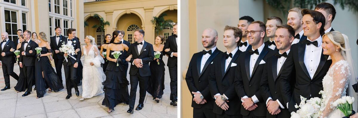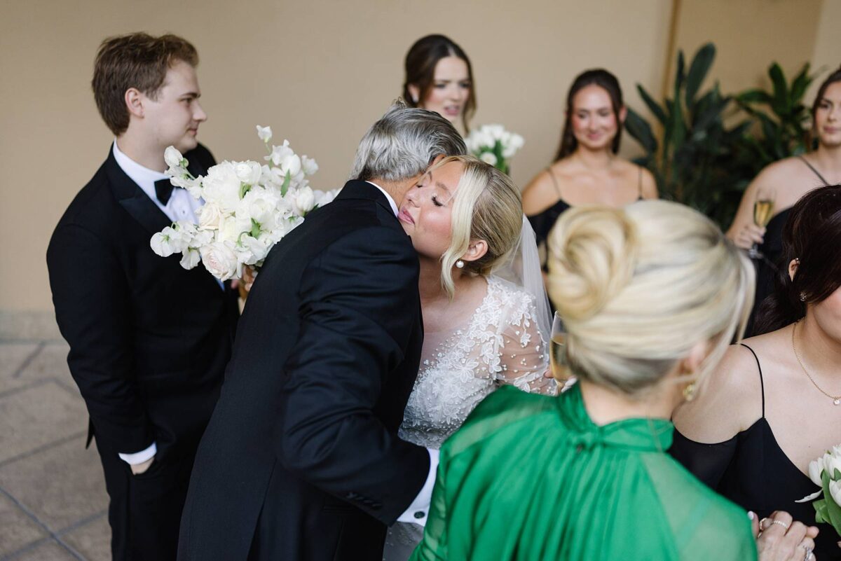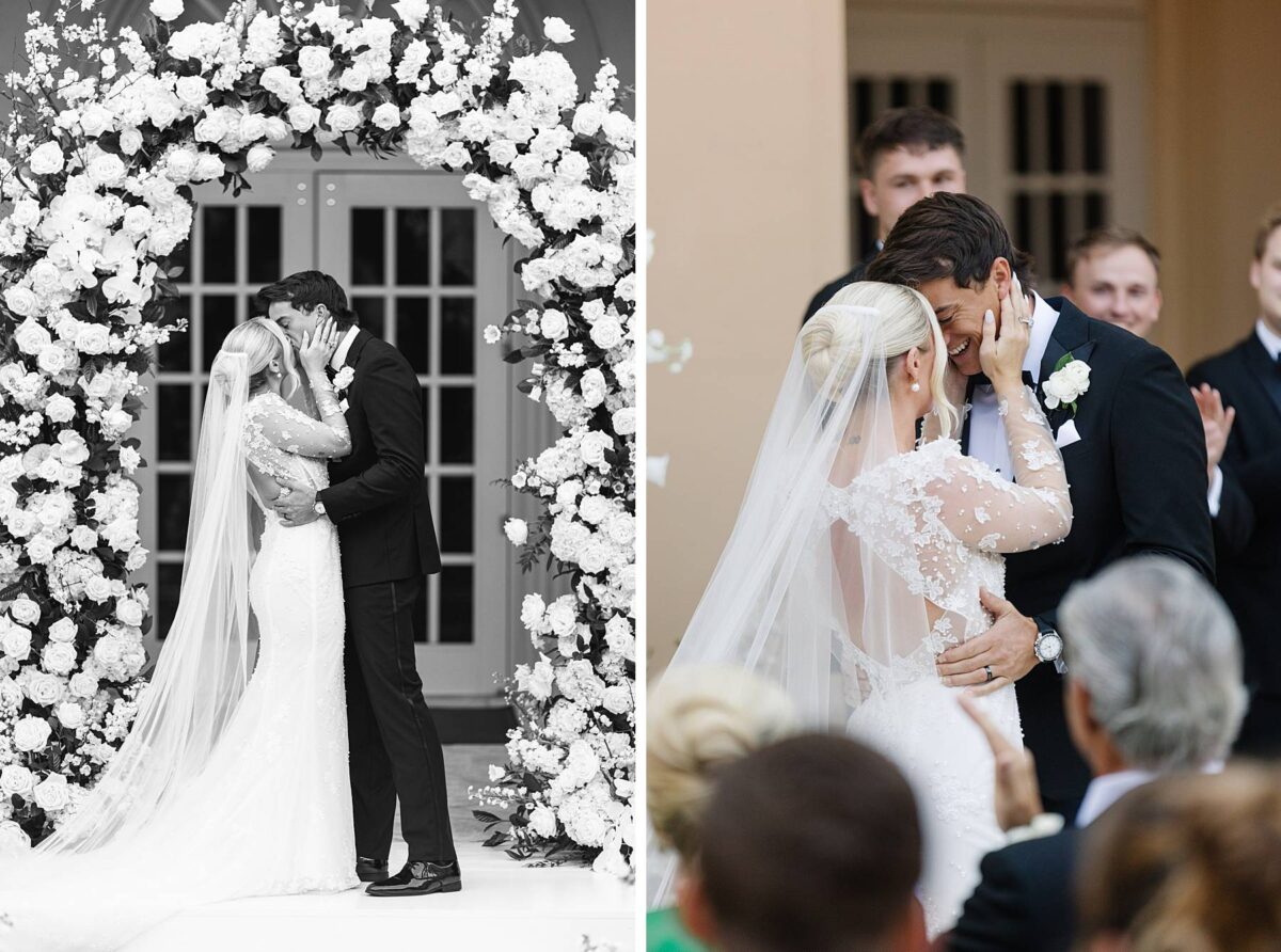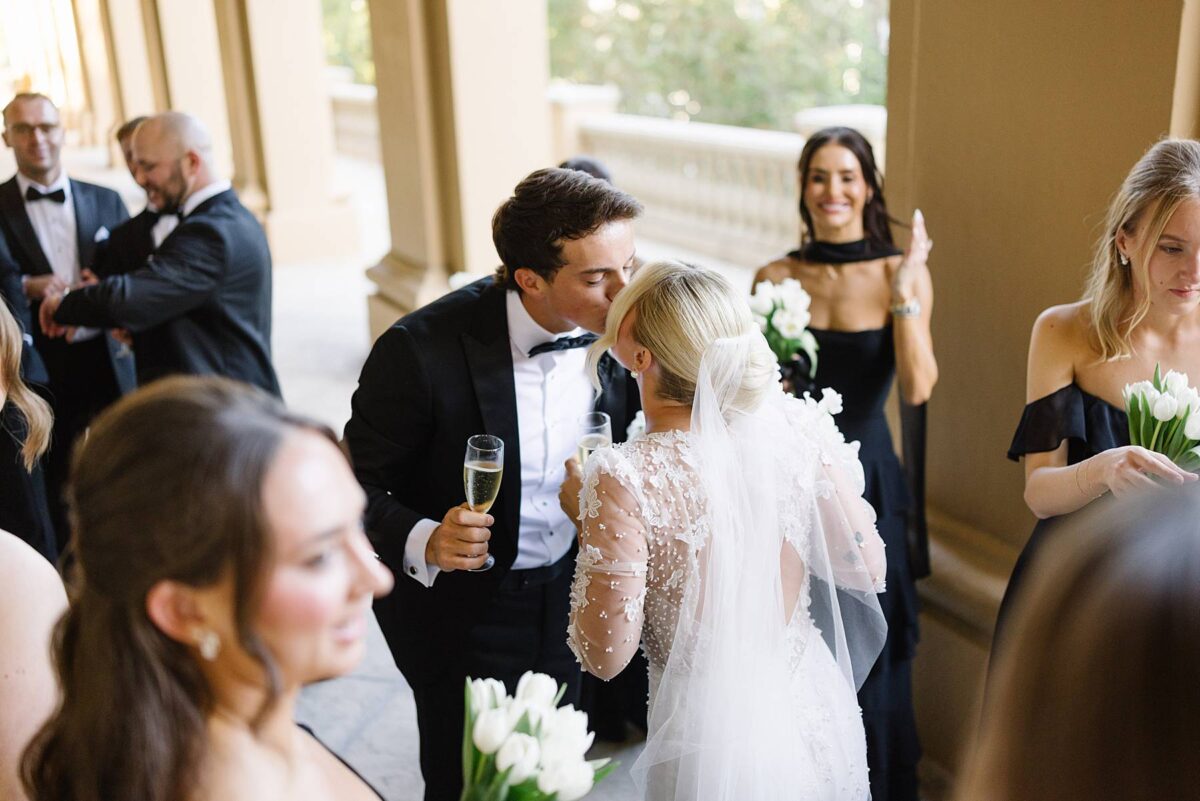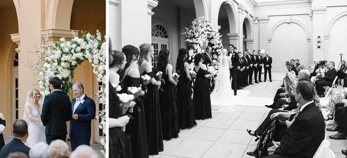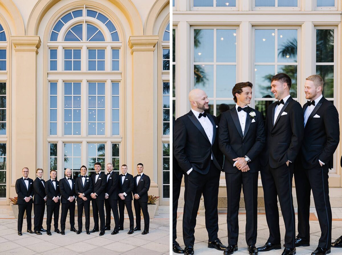 We began the morning by documenting the details including invitations by The Paper Merchant as the ladies prepared with Unbreakable Beauty on hair and makeup. Julia put on her gorgeous Beccar gown from Palm Bridal and headed to the Ritz for the sweetest first look with her groom! The tears began as Cooper turned to see his beautiful bride, and we set off to explore the grounds together for portraits. The wedding party joined us for photos, looking stunning in their Jenny Yoo dresses and suits from The Tuxxman, and we finished up with family portraits before guests arrived.