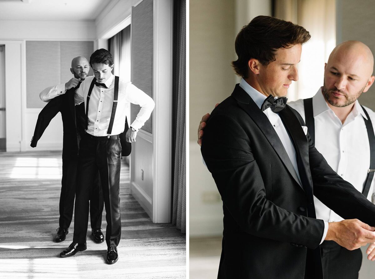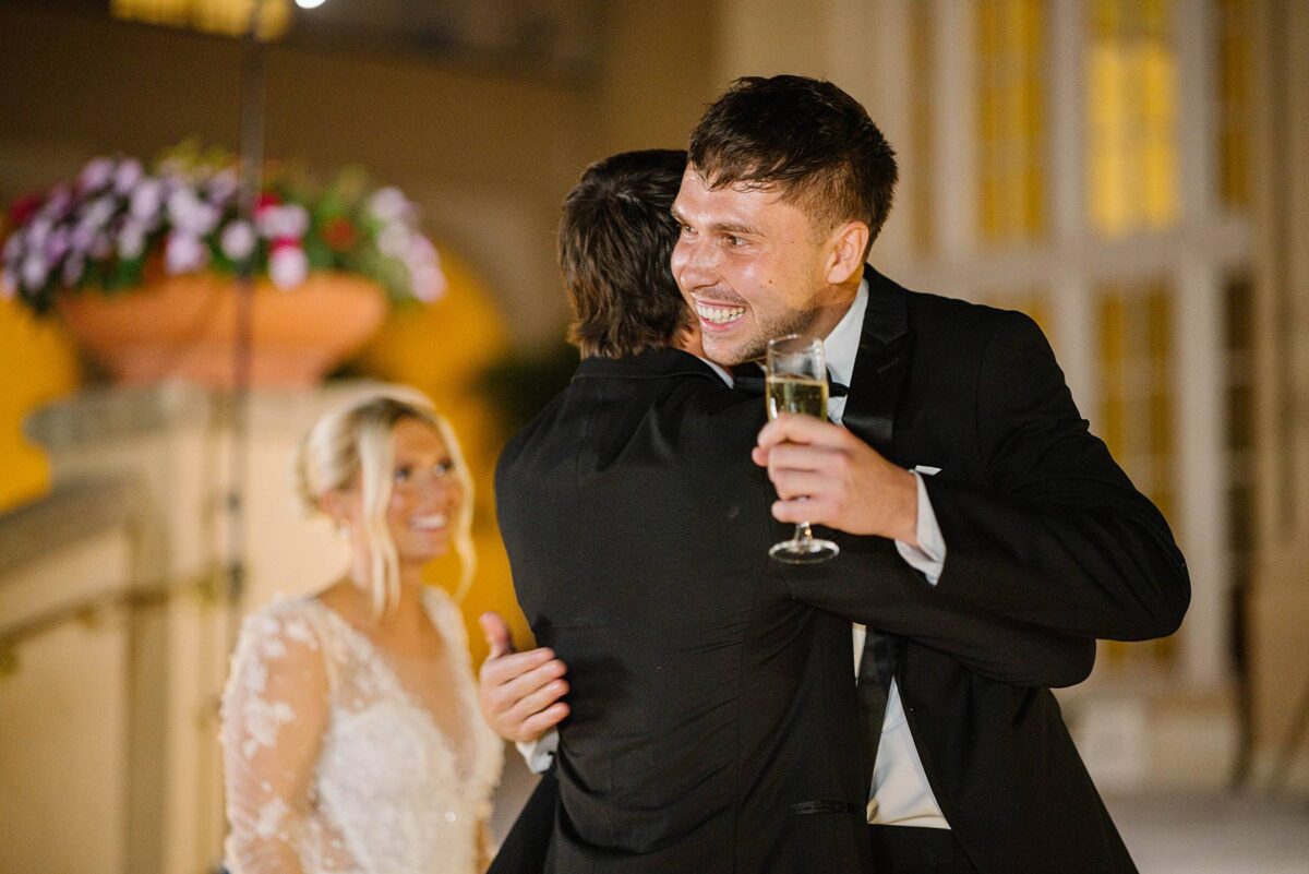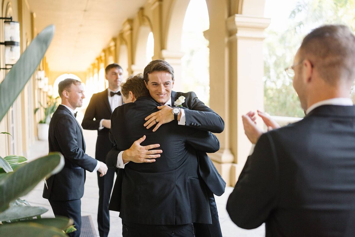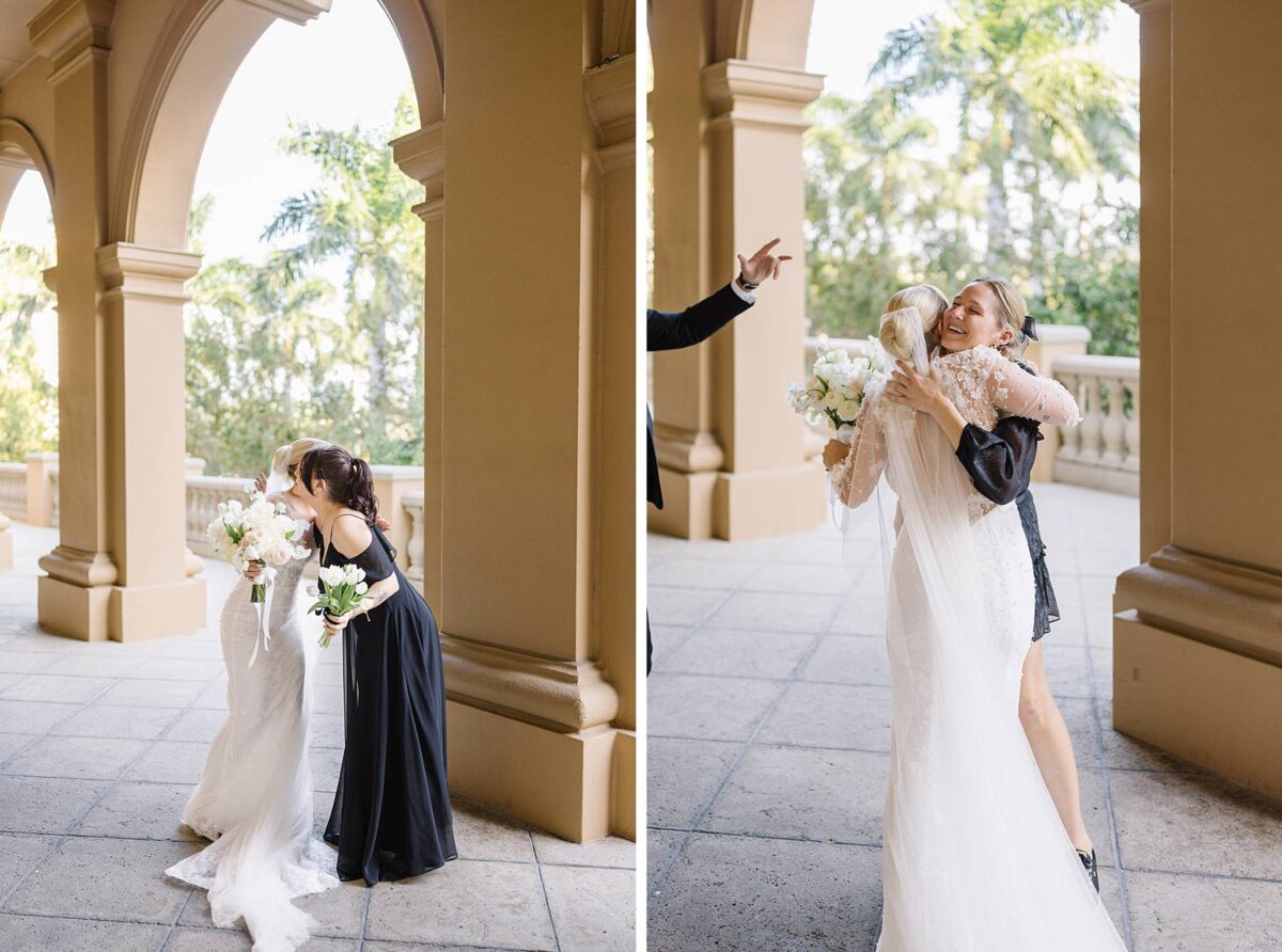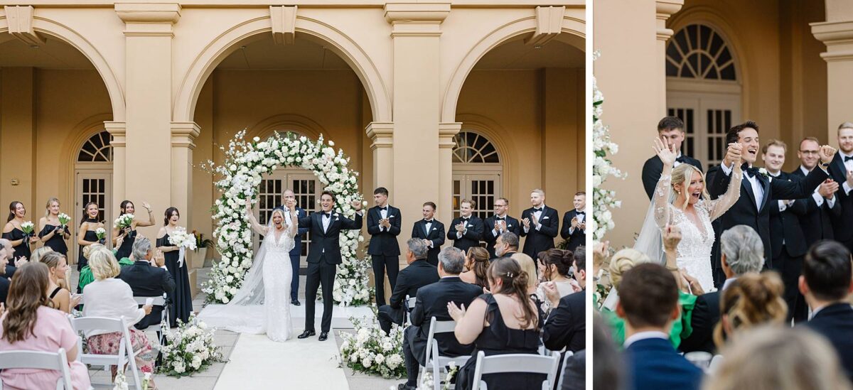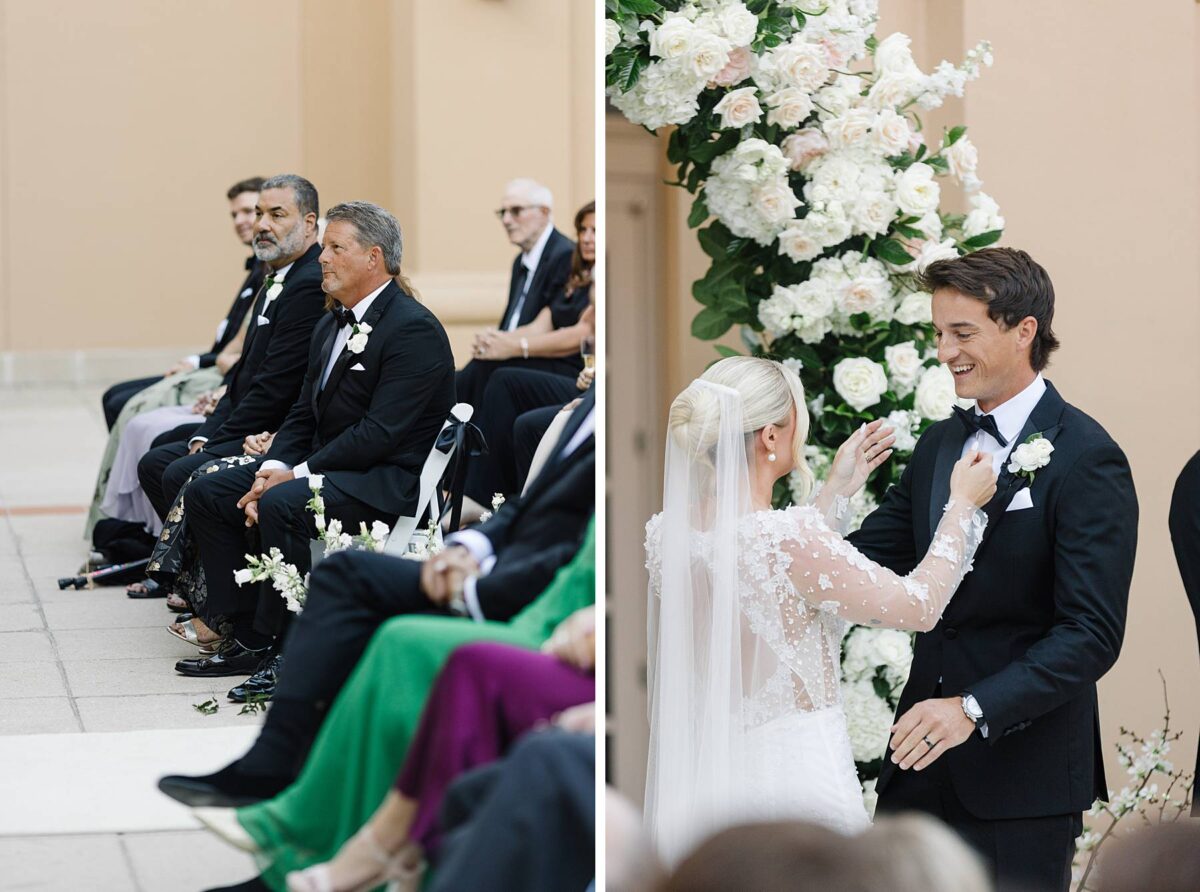 We began the morning by documenting the details including invitations by The Paper Merchant as the ladies prepared with Unbreakable Beauty on hair and makeup. Julia put on her gorgeous Beccar gown from Palm Bridal and headed to the Ritz for the sweetest first look with her groom! The tears began as Cooper turned to see his beautiful bride, and we set off to explore the grounds together for portraits. The wedding party joined us for photos, looking stunning in their Jenny Yoo dresses and suits from The Tuxxman, and we finished up with family portraits before guests arrived.