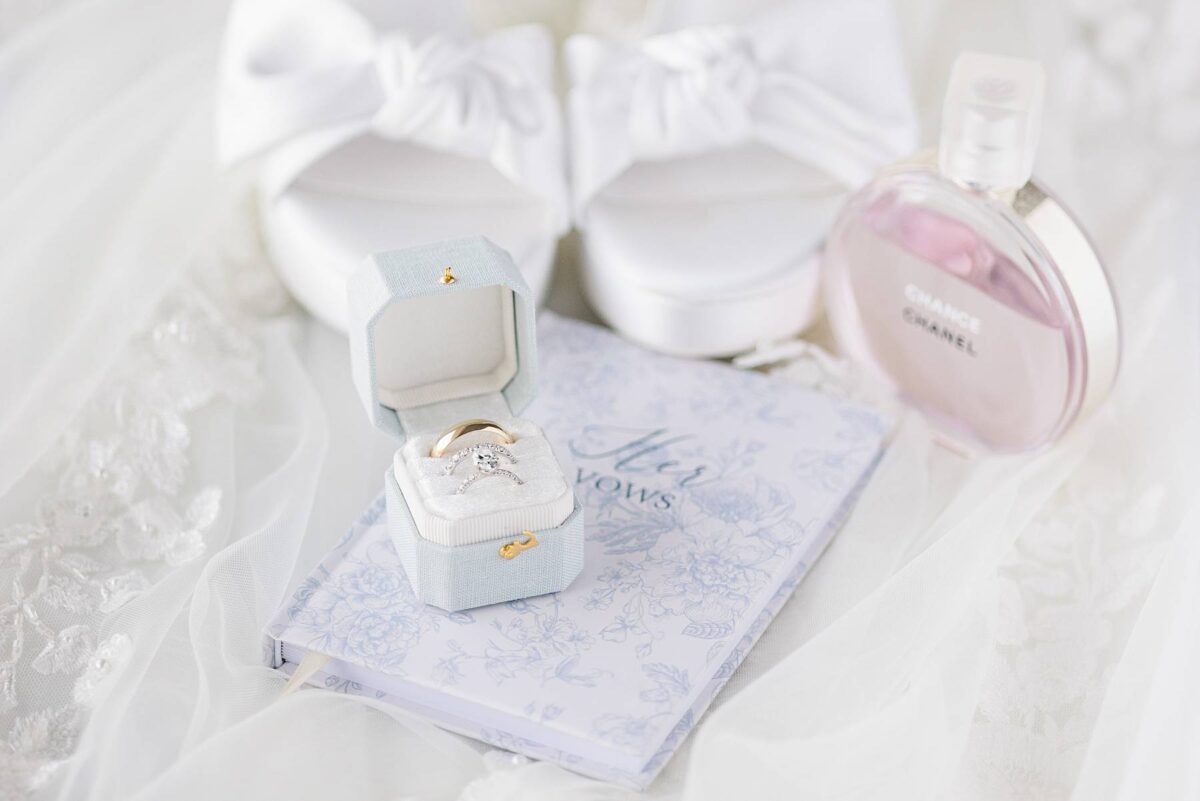 Adams Estate in Lake Alfred, Florida is an absolute dream wedding venue!  Overlooking the lake, this gorgeous Southern estate is surrounded by citrus groves and breathtaking oak trees covered in Spanish moss.  We could not have imagined a more perfect setting to host Jillian and Noah’s incredible wedding!  The amazingly talented Kelsey of Bloom & Grow Events coordinated the day and ensured every single element was stunning from start to finish.  We began by documenting the details, including Jillian’s beautiful ring from Diamonds Direct, while the ladies finished preparing with The Trendee Makeup.