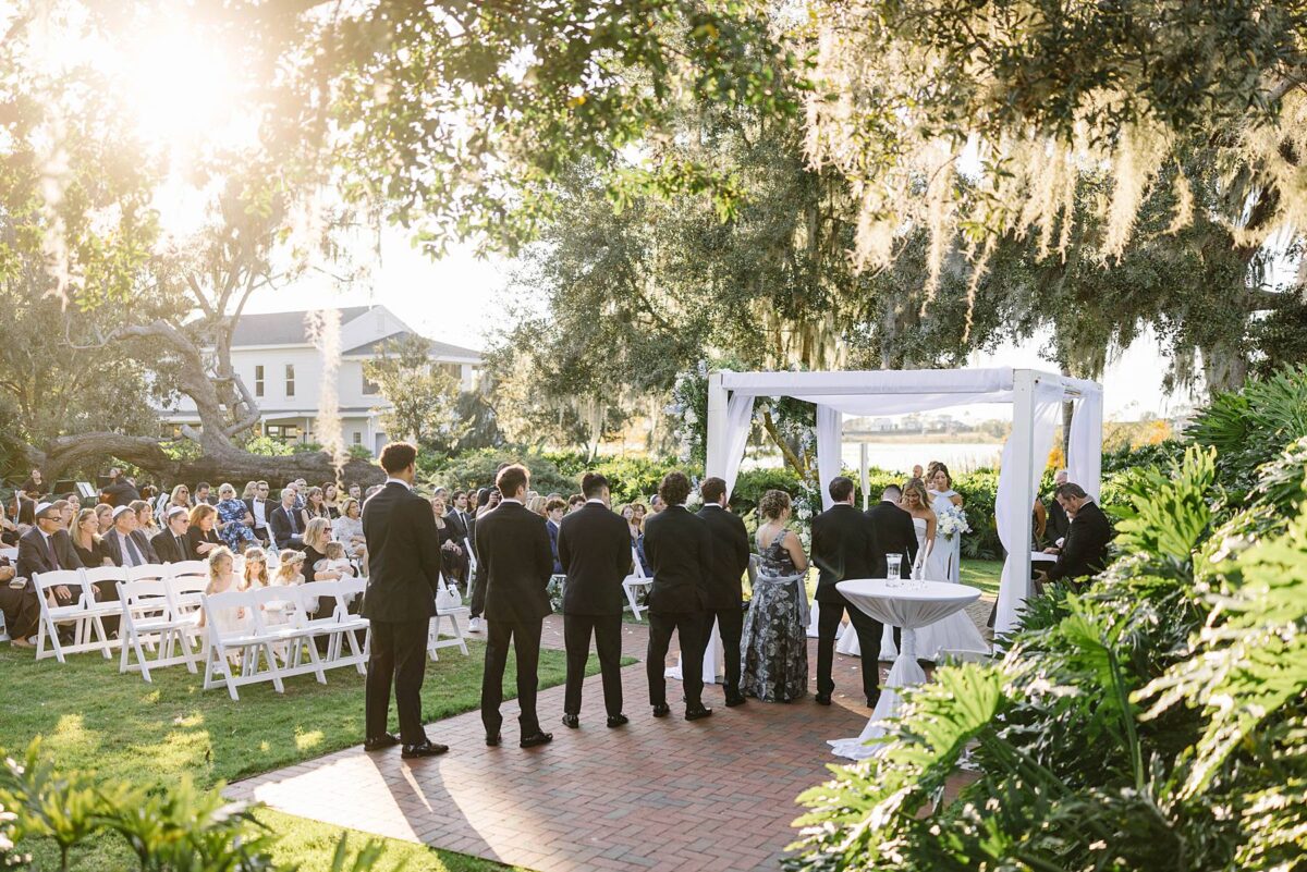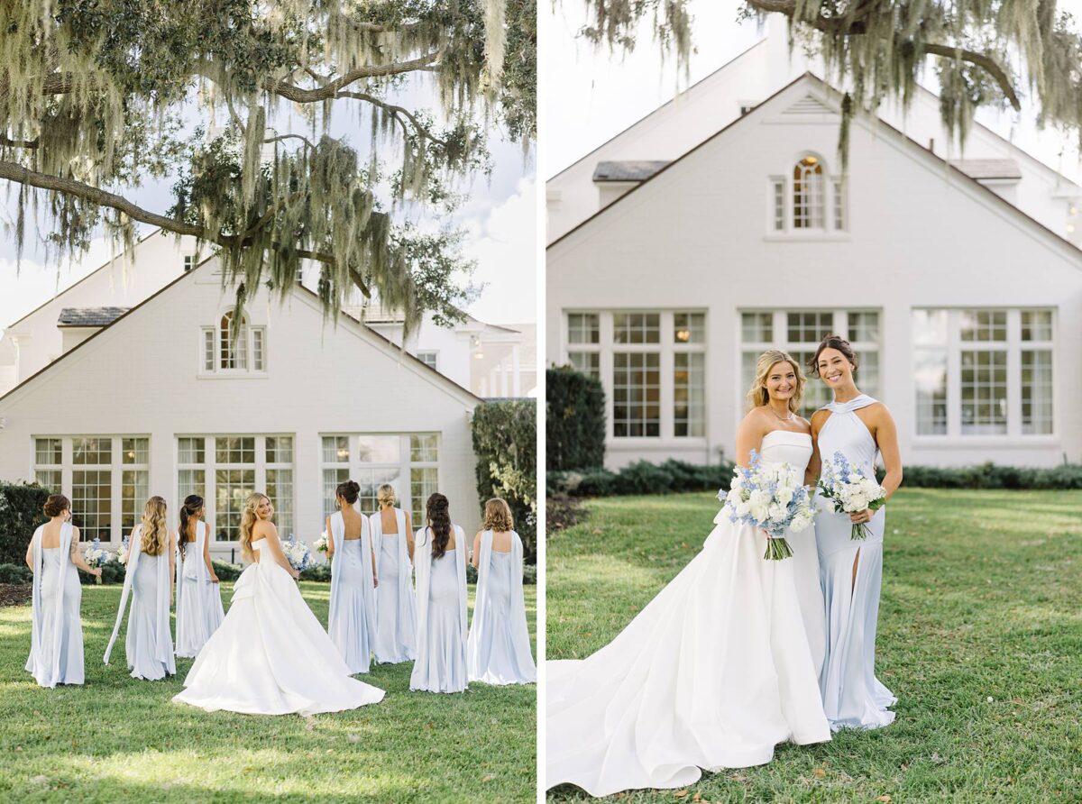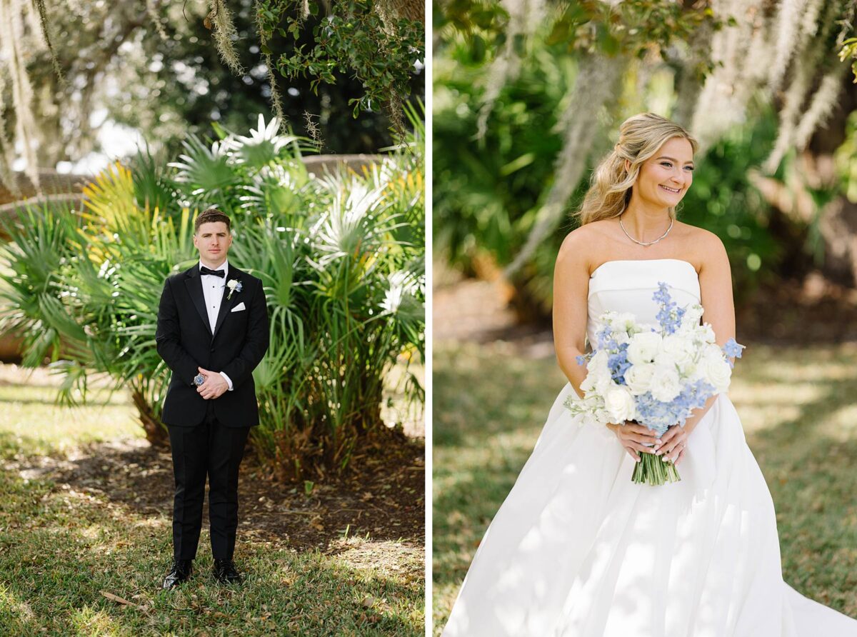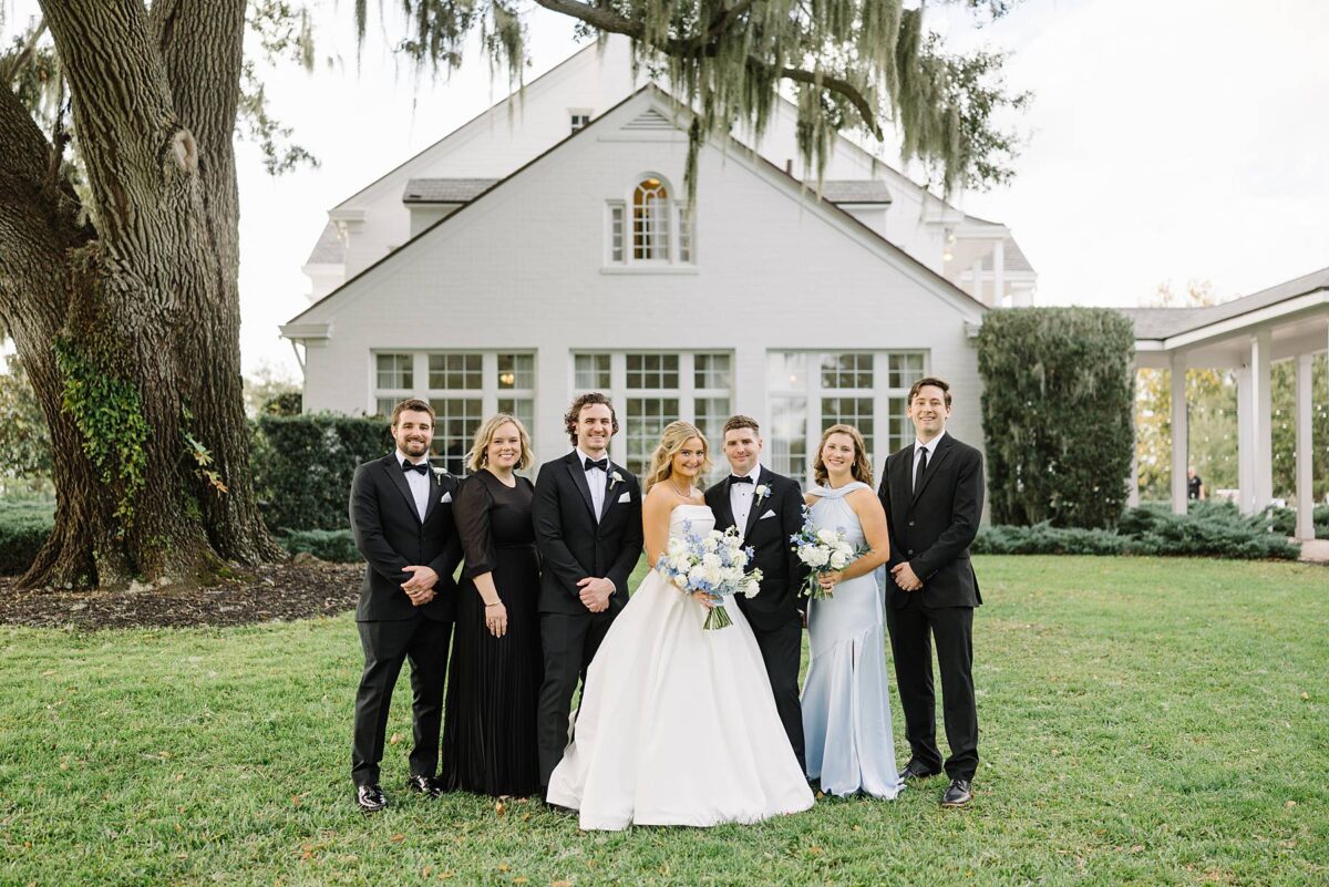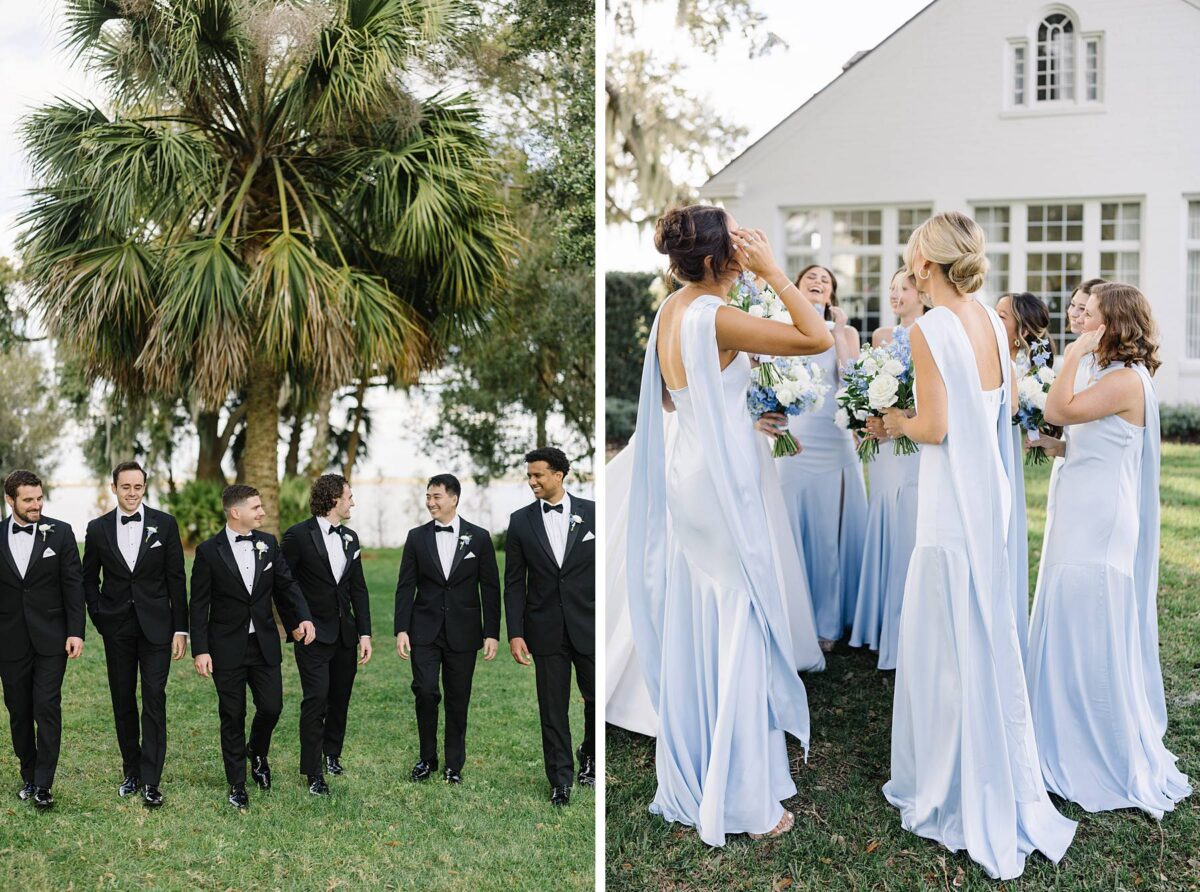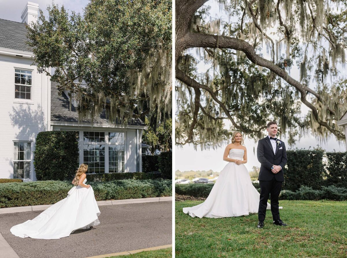 Jillian put on her gorgeous Rita Vinieris gown from Isabel O’Neil Bridal and stepped outside to greet her groom.  The two shared private vows under the oaks before we set off to explore the grounds for portraits.  The wedding party joined us for photos looking amazing in their Birdy Grey dresses and Men’s Wearhouse suits.  From the first time that we connected with Jillian and Noah for their engagement session on Sanibel Island, we were so excited for their wedding!  Their family and friends were a delight to serve, and we had the best time capturing portraits together, finishing up just before guests arrived.