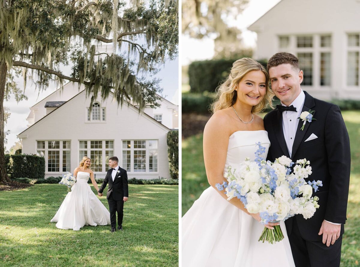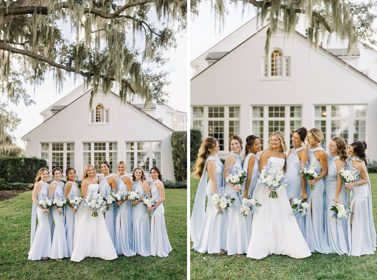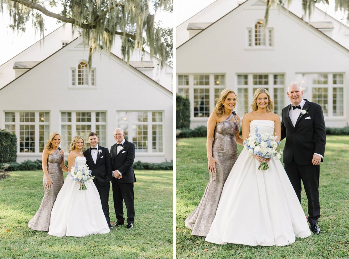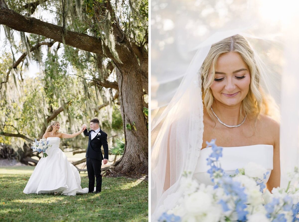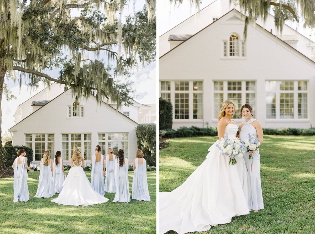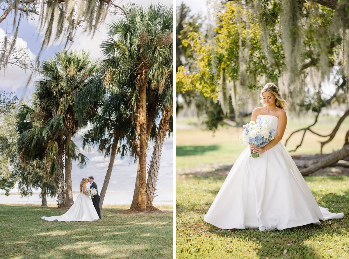 Jillian put on her gorgeous Rita Vinieris gown from Isabel O’Neil Bridal and stepped outside to greet her groom.  The two shared private vows under the oaks before we set off to explore the grounds for portraits.  The wedding party joined us for photos looking amazing in their Birdy Grey dresses and Men’s Wearhouse suits.  From the first time that we connected with Jillian and Noah for their engagement session on Sanibel Island, we were so excited for their wedding!  Their family and friends were a delight to serve, and we had the best time capturing portraits together, finishing up just before guests arrived.