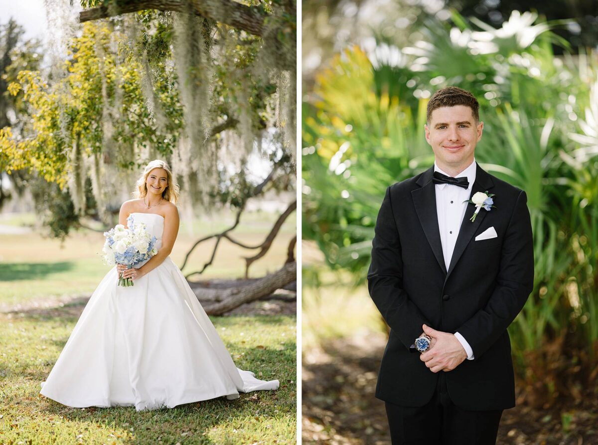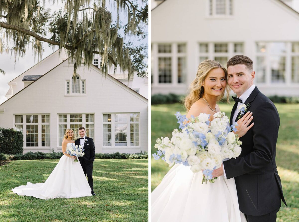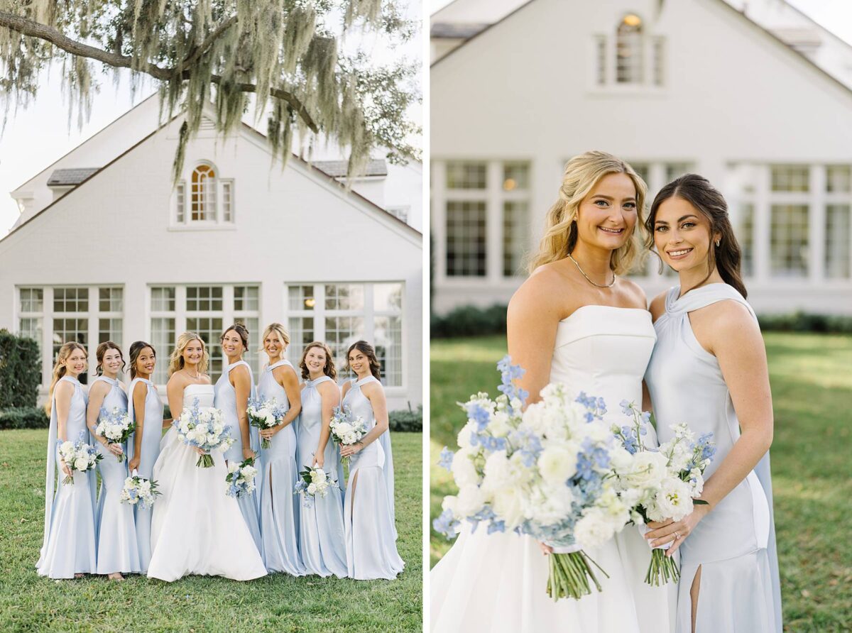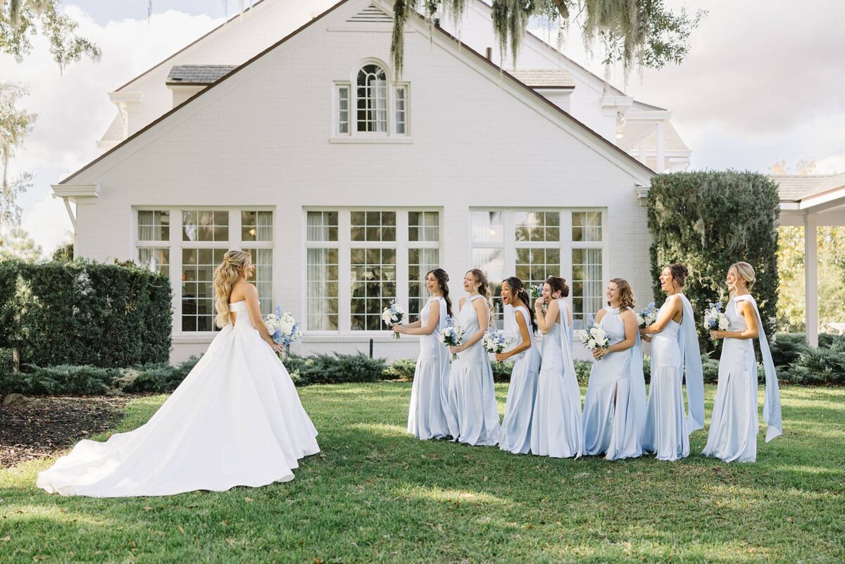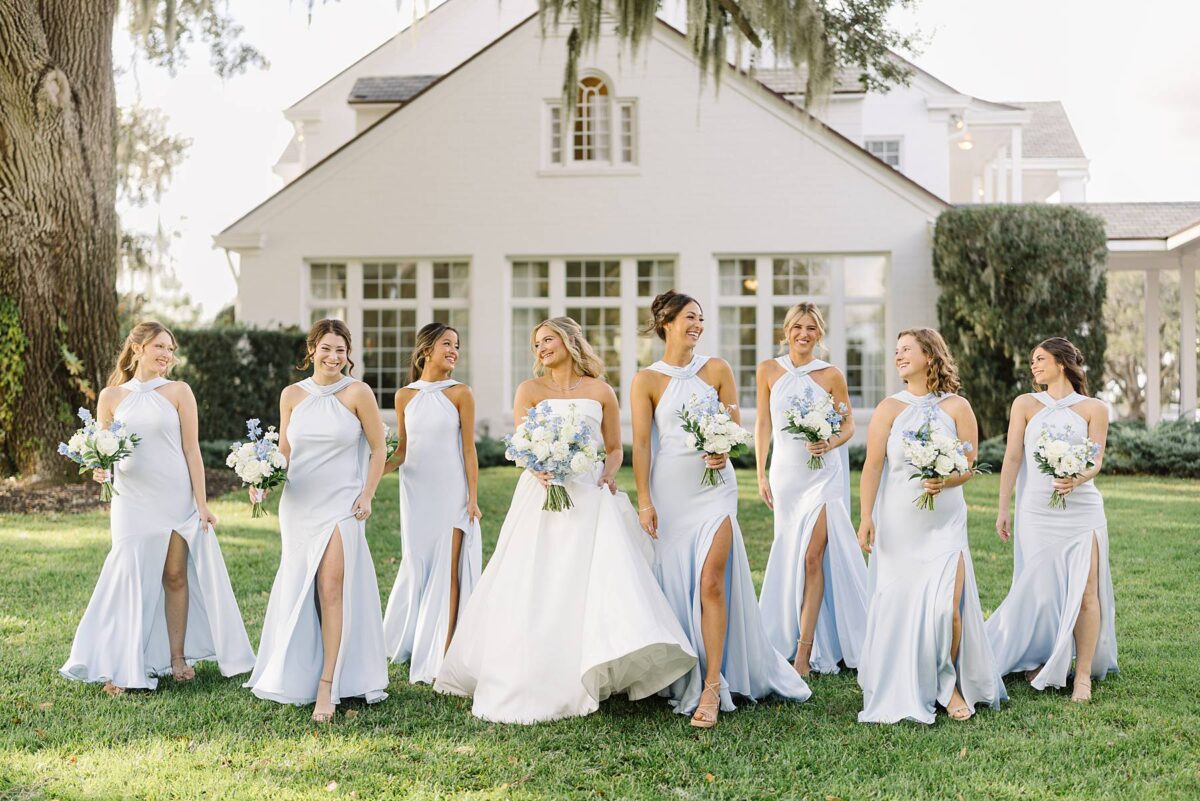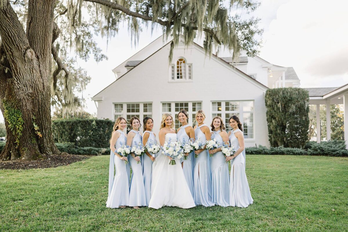 Jillian put on her gorgeous Rita Vinieris gown from Isabel O’Neil Bridal and stepped outside to greet her groom.  The two shared private vows under the oaks before we set off to explore the grounds for portraits.  The wedding party joined us for photos looking amazing in their Birdy Grey dresses and Men’s Wearhouse suits.  From the first time that we connected with Jillian and Noah for their engagement session on Sanibel Island, we were so excited for their wedding!  Their family and friends were a delight to serve, and we had the best time capturing portraits together, finishing up just before guests arrived.