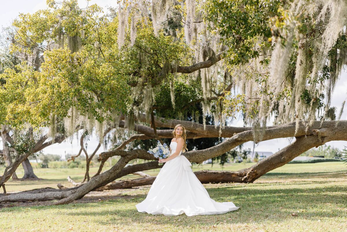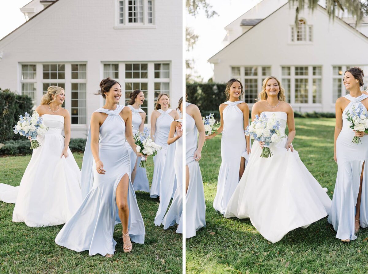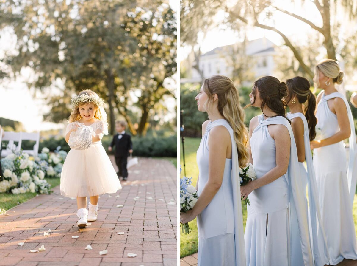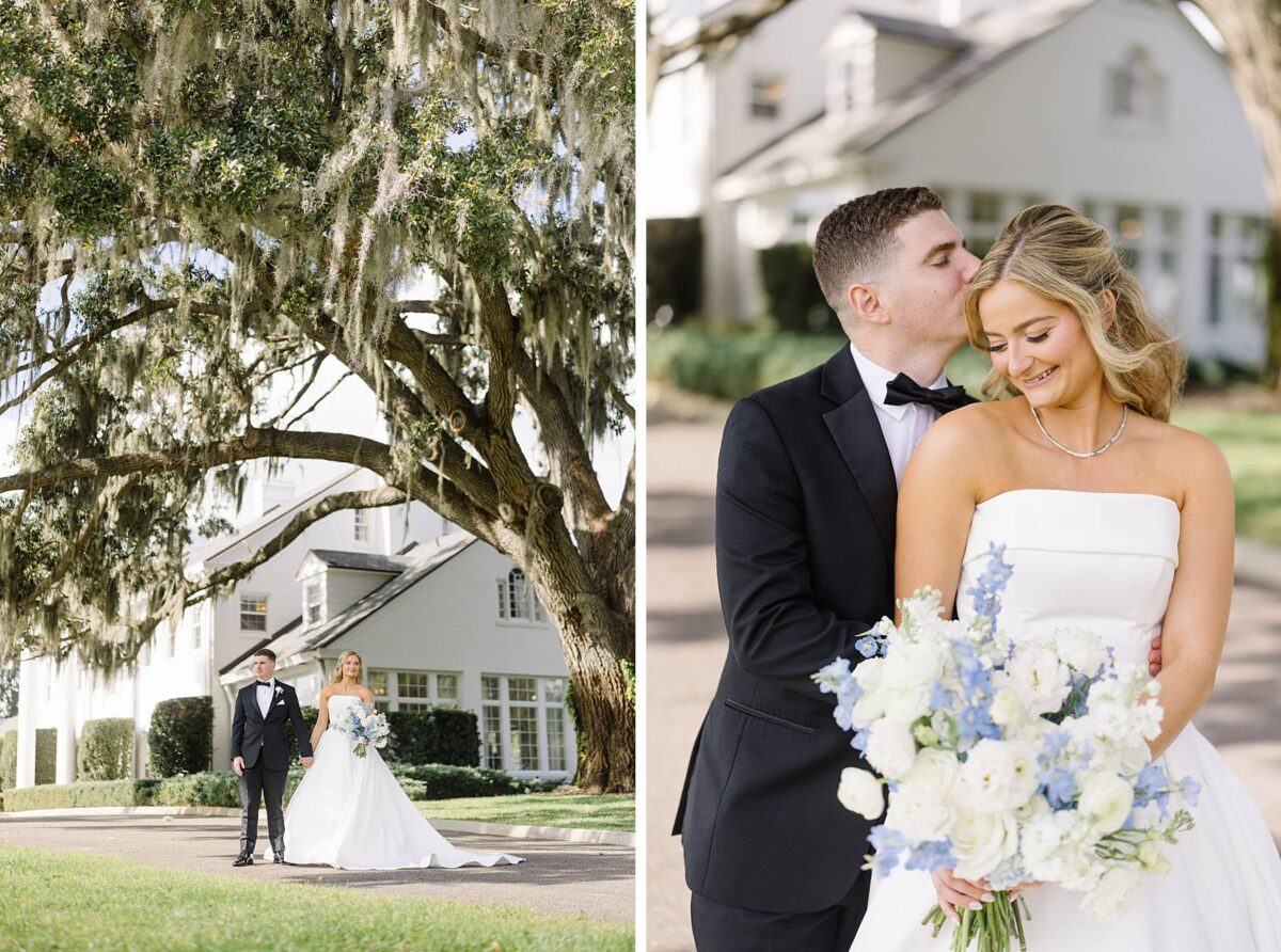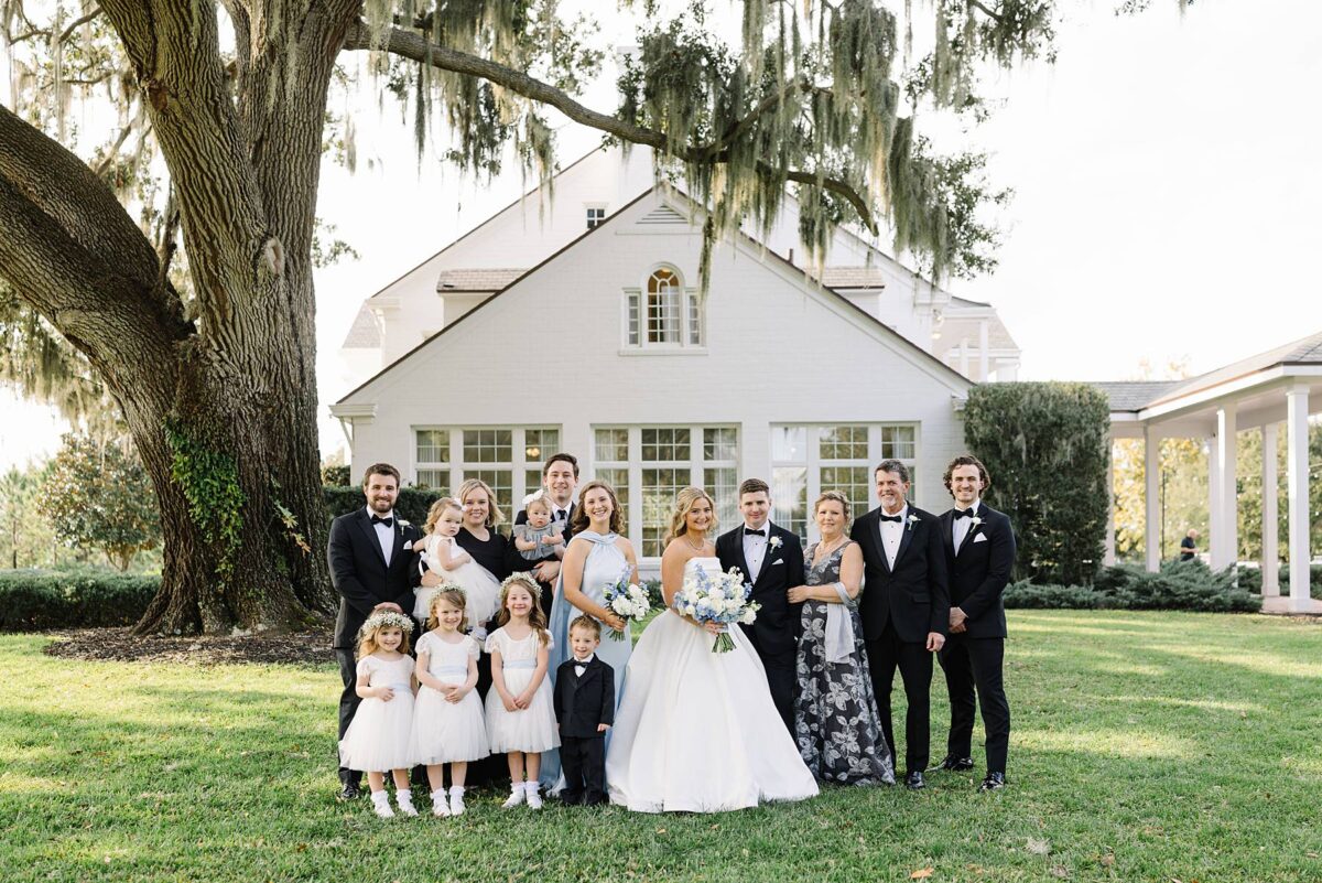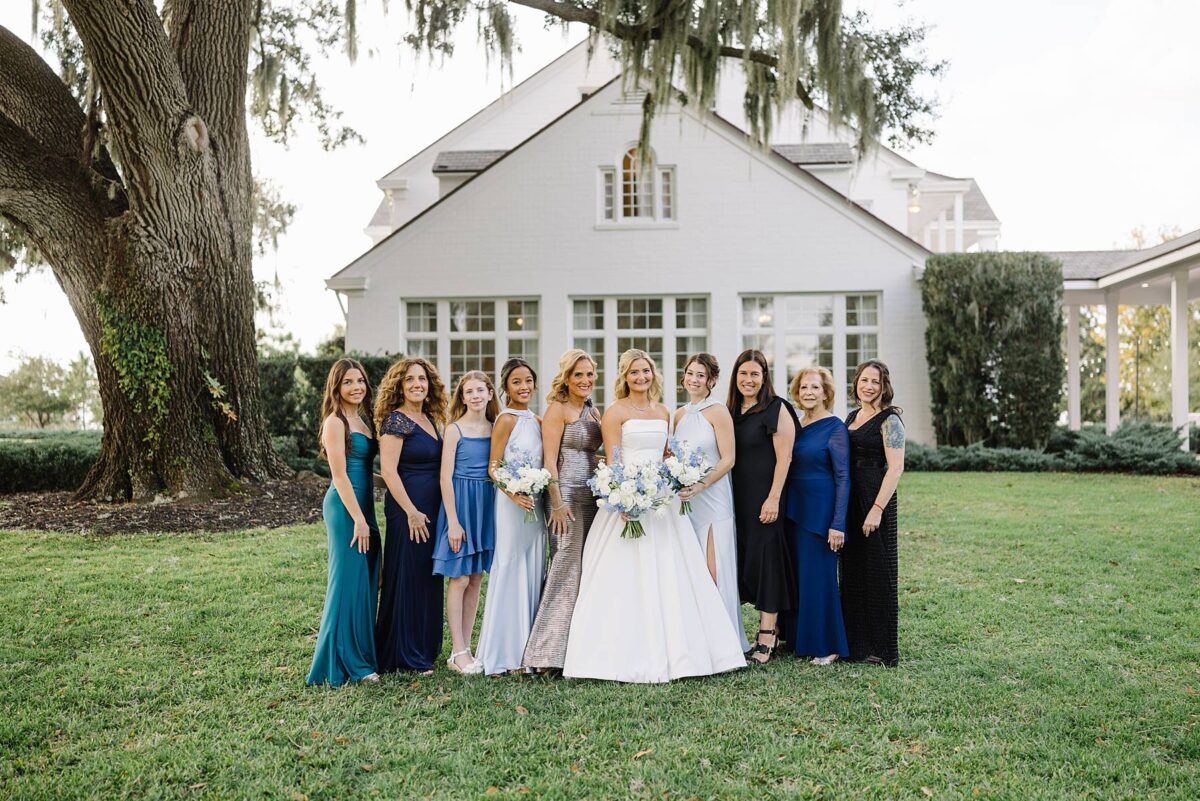 Jillian put on her gorgeous Rita Vinieris gown from Isabel O’Neil Bridal and stepped outside to greet her groom.  The two shared private vows under the oaks before we set off to explore the grounds for portraits.  The wedding party joined us for photos looking amazing in their Birdy Grey dresses and Men’s Wearhouse suits.  From the first time that we connected with Jillian and Noah for their engagement session on Sanibel Island, we were so excited for their wedding!  Their family and friends were a delight to serve, and we had the best time capturing portraits together, finishing up just before guests arrived.