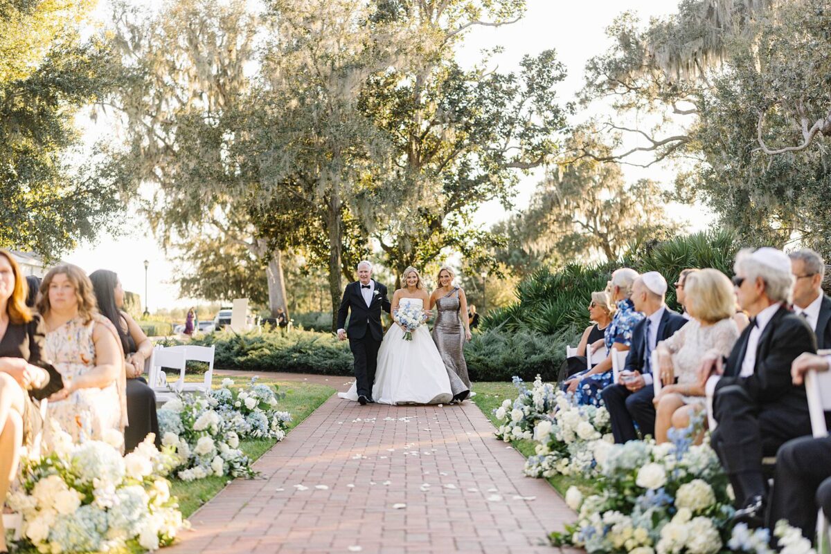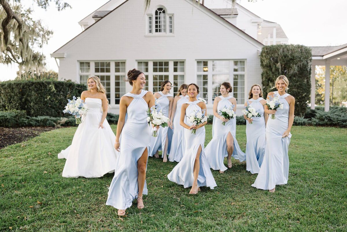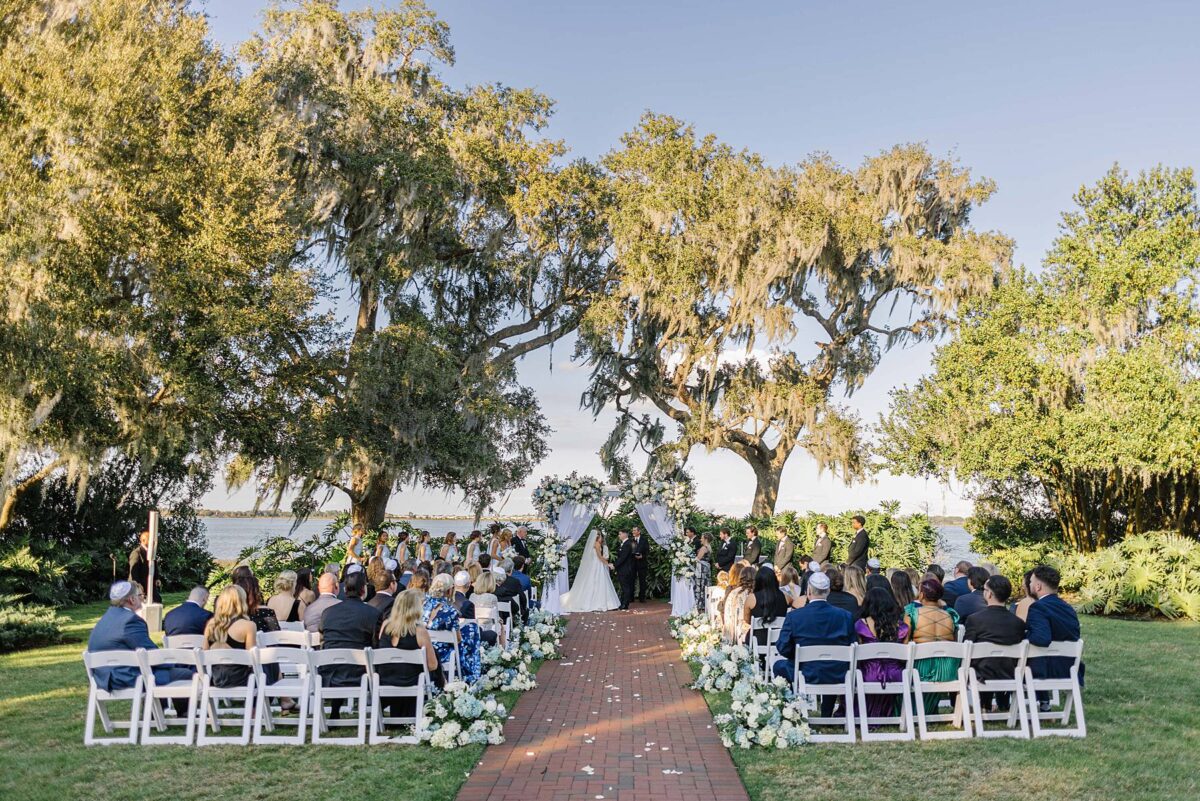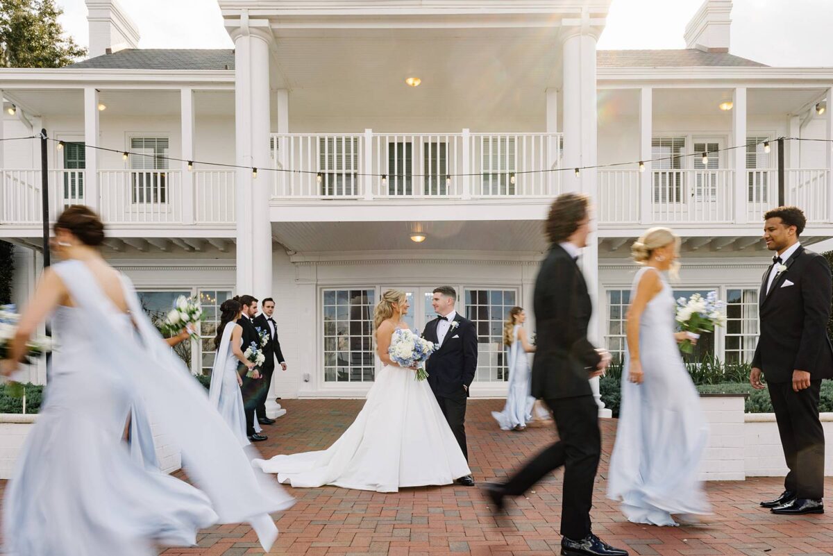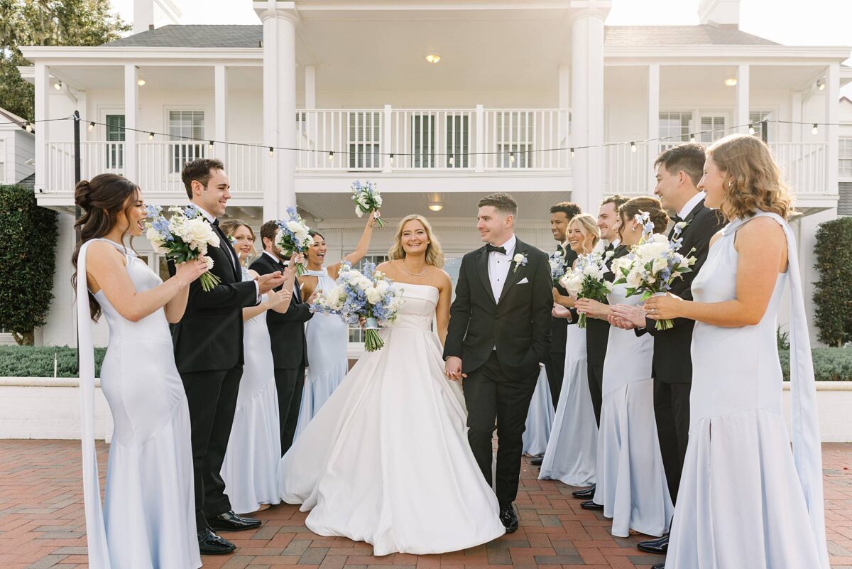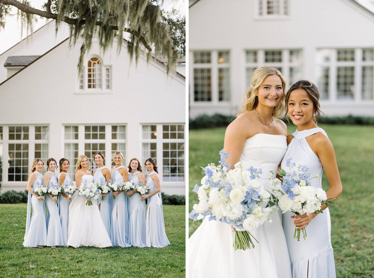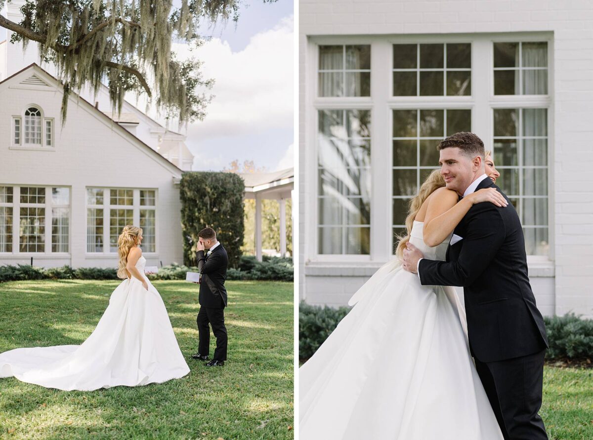 Jillian put on her gorgeous Rita Vinieris gown from Isabel O’Neil Bridal and stepped outside to greet her groom.  The two shared private vows under the oaks before we set off to explore the grounds for portraits.  The wedding party joined us for photos looking amazing in their Birdy Grey dresses and Men’s Wearhouse suits.  From the first time that we connected with Jillian and Noah for their engagement session on Sanibel Island, we were so excited for their wedding!  Their family and friends were a delight to serve, and we had the best time capturing portraits together, finishing up just before guests arrived.