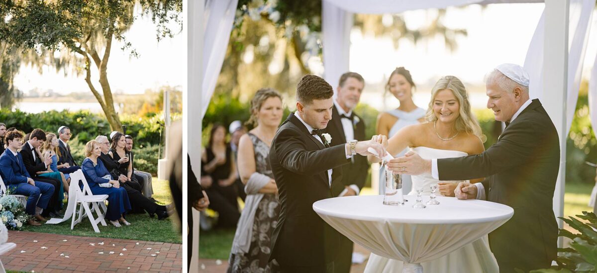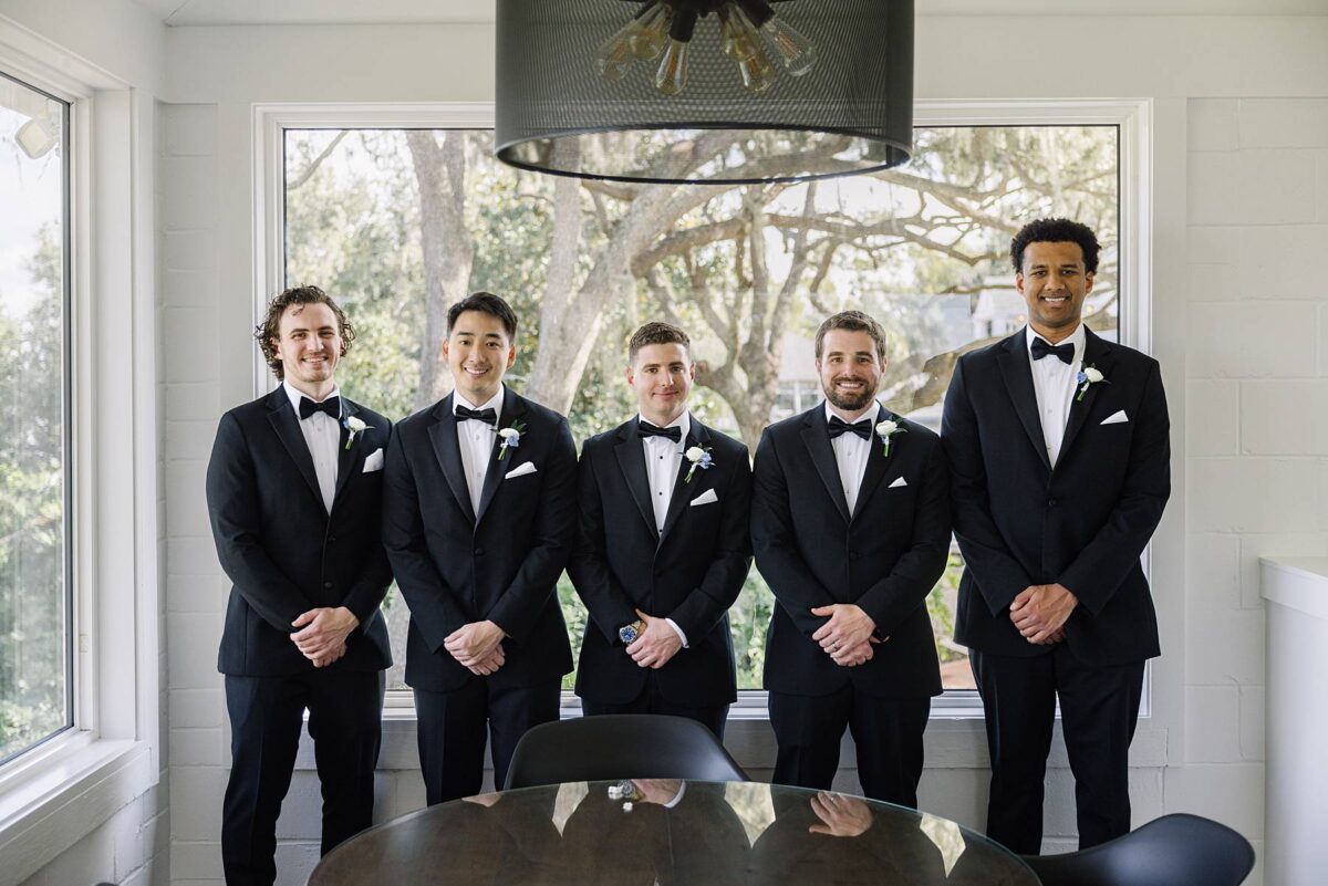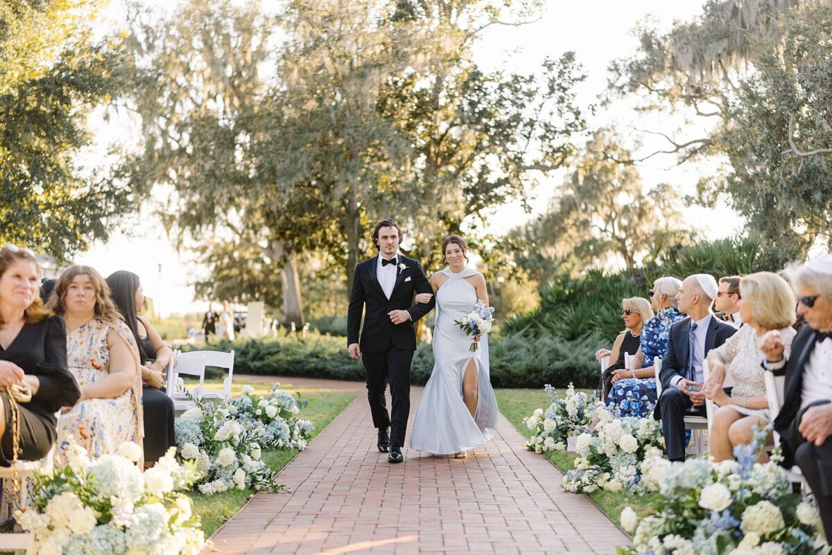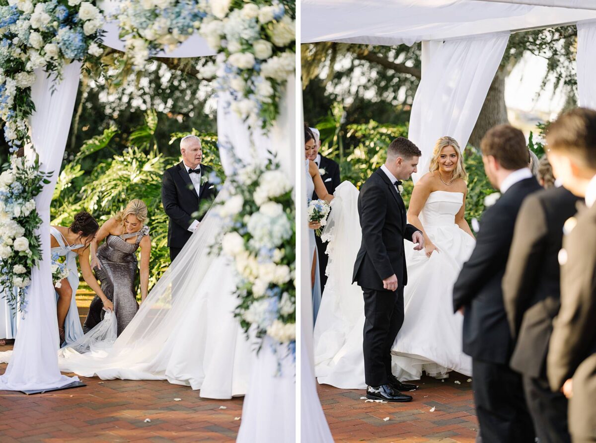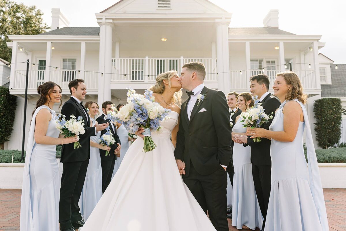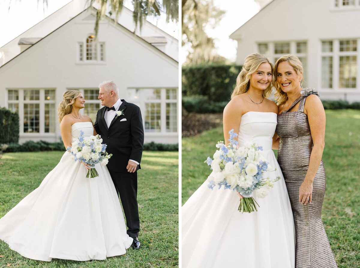 Jillian put on her gorgeous Rita Vinieris gown from Isabel O’Neil Bridal and stepped outside to greet her groom.  The two shared private vows under the oaks before we set off to explore the grounds for portraits.  The wedding party joined us for photos looking amazing in their Birdy Grey dresses and Men’s Wearhouse suits.  From the first time that we connected with Jillian and Noah for their engagement session on Sanibel Island, we were so excited for their wedding!  Their family and friends were a delight to serve, and we had the best time capturing portraits together, finishing up just before guests arrived.