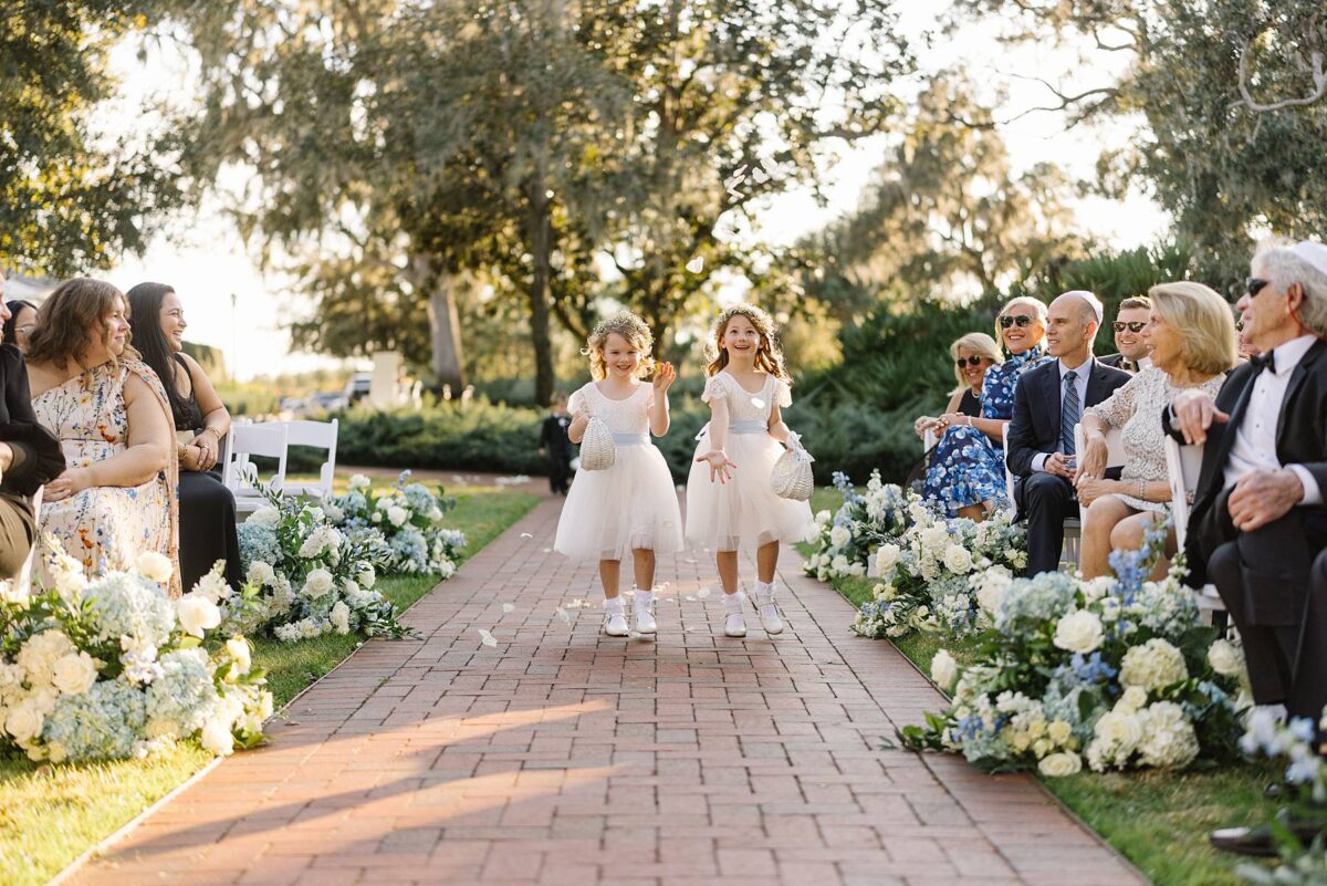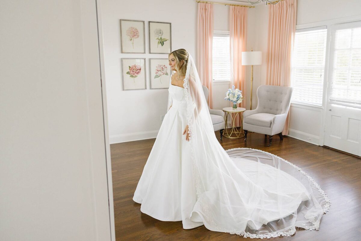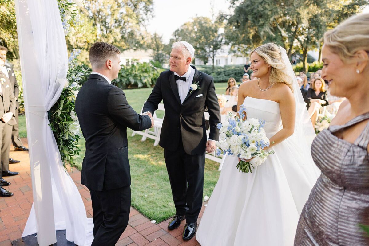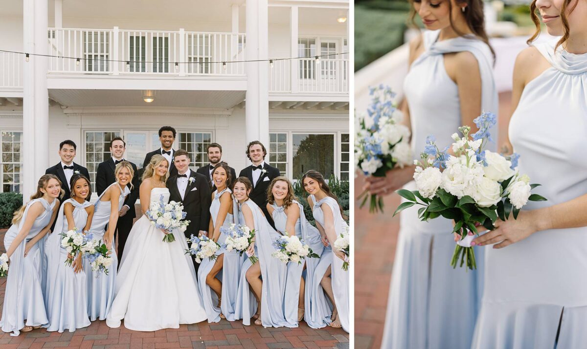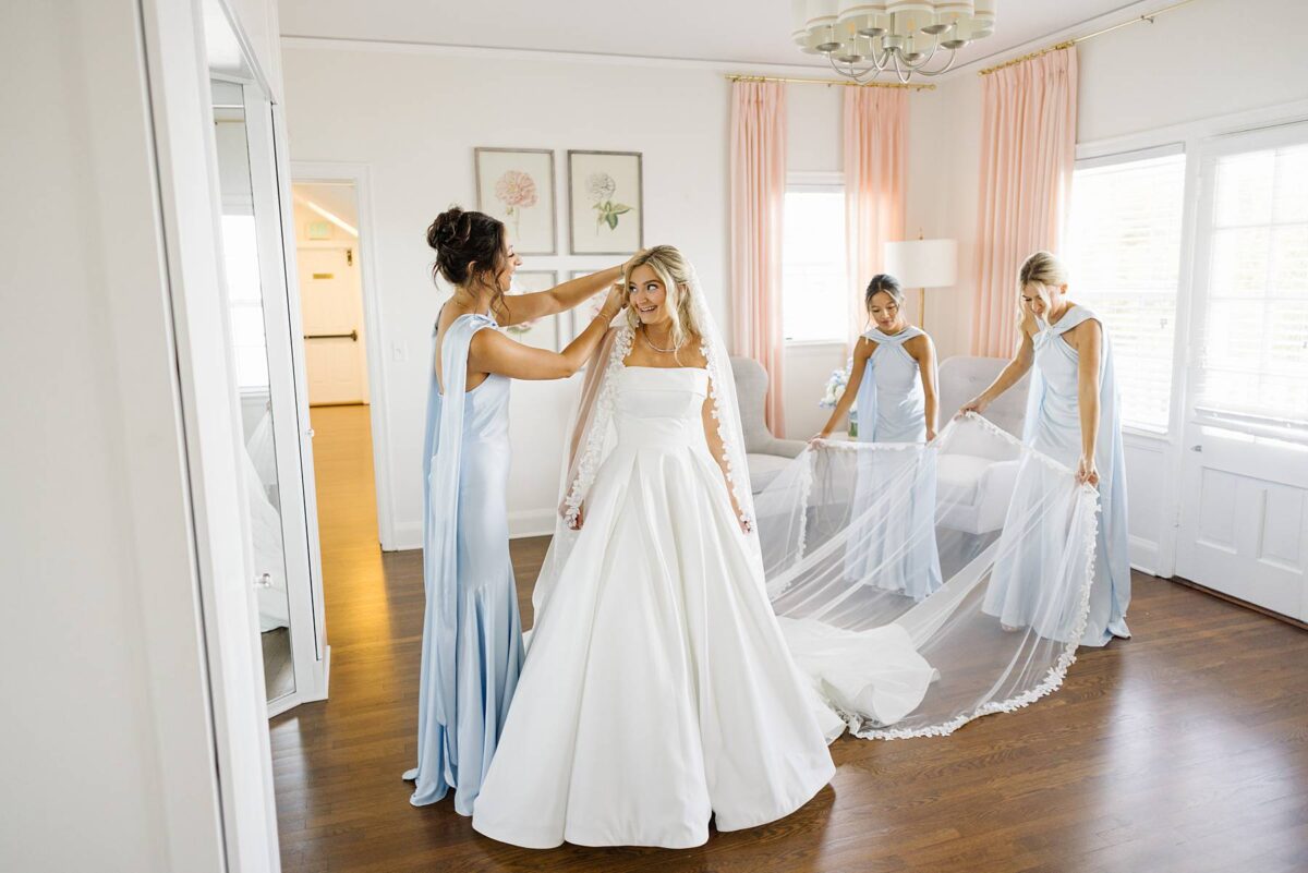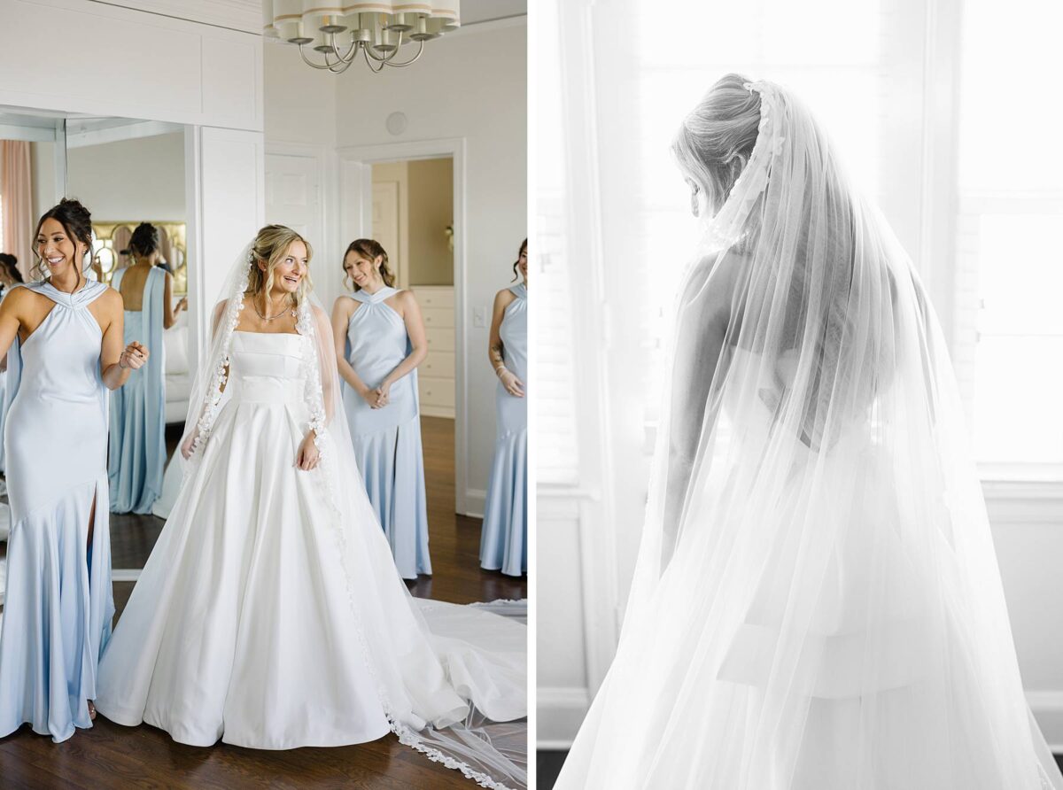 Jillian put on her gorgeous Rita Vinieris gown from Isabel O’Neil Bridal and stepped outside to greet her groom.  The two shared private vows under the oaks before we set off to explore the grounds for portraits.  The wedding party joined us for photos looking amazing in their Birdy Grey dresses and Men’s Wearhouse suits.  From the first time that we connected with Jillian and Noah for their engagement session on Sanibel Island, we were so excited for their wedding!  Their family and friends were a delight to serve, and we had the best time capturing portraits together, finishing up just before guests arrived.