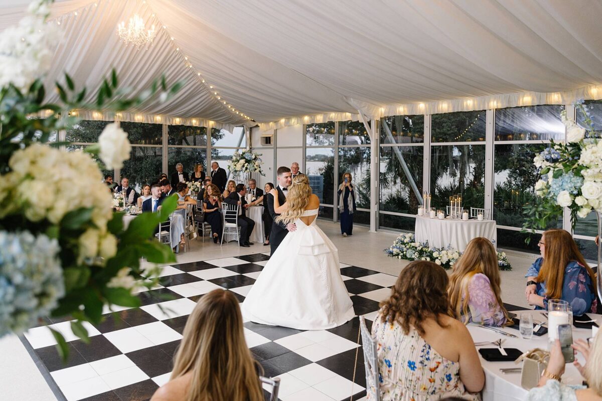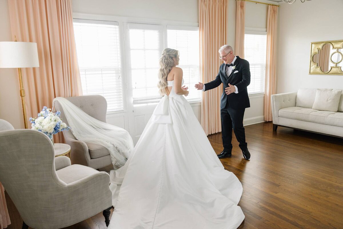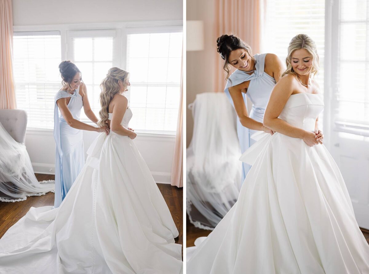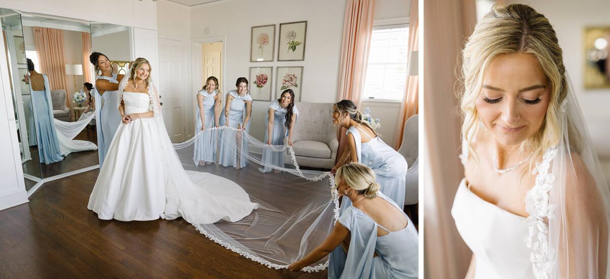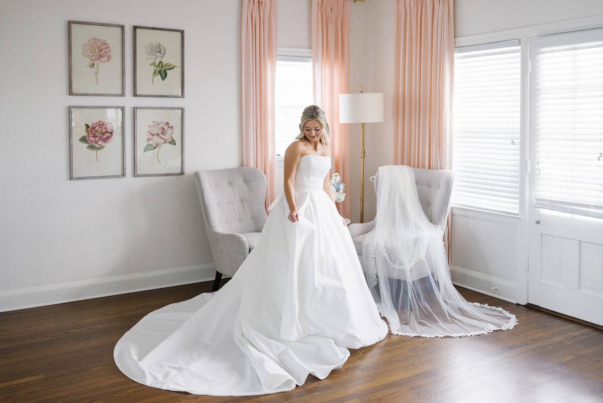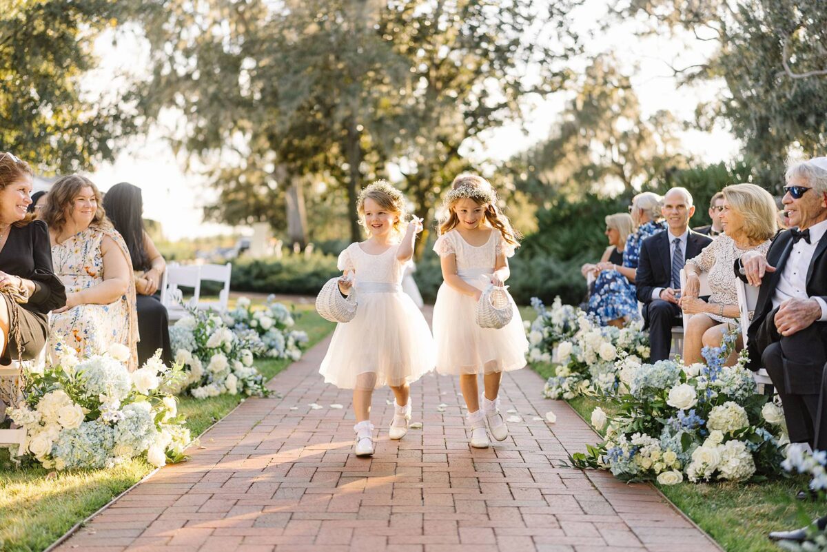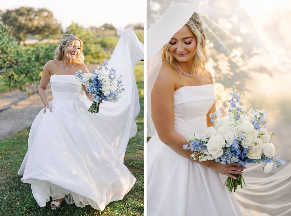 Jillian put on her gorgeous Rita Vinieris gown from Isabel O’Neil Bridal and stepped outside to greet her groom.  The two shared private vows under the oaks before we set off to explore the grounds for portraits.  The wedding party joined us for photos looking amazing in their Birdy Grey dresses and Men’s Wearhouse suits.  From the first time that we connected with Jillian and Noah for their engagement session on Sanibel Island, we were so excited for their wedding!  Their family and friends were a delight to serve, and we had the best time capturing portraits together, finishing up just before guests arrived.