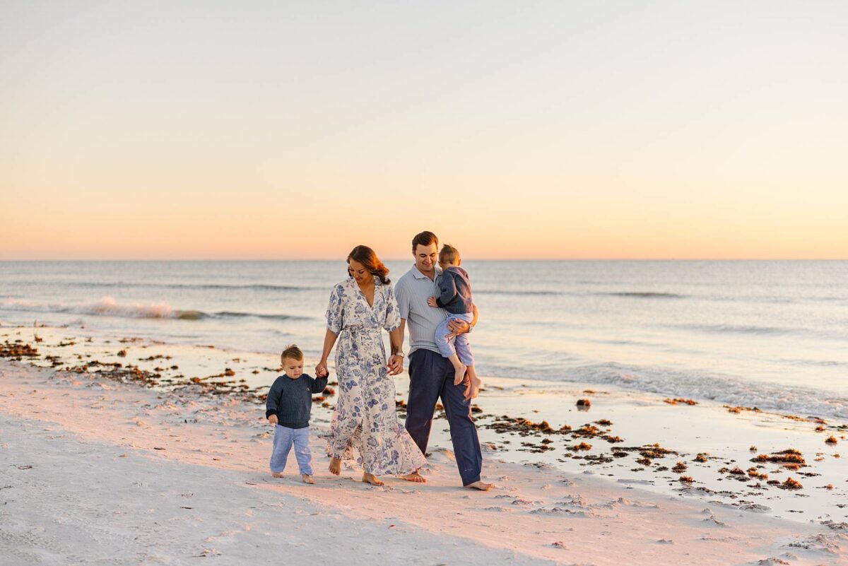 Far beyond the breathtaking tones and scenery, what made this session truly meaningful was the privilege of documenting another chapter in this family’s story. Watching Megan and her husband laugh with their boys, scoop them into sandy hugs, and soak in this season of life was such a sweet reminder of why we love what we do. Being trusted to preserve these memories of sandy toes, and holding tiny hands while strolling the stunning shoreline of SW Florida is something we will never take for granted. Megan, it was a complete joy to photograph your beautiful family again! Soak in this sweet season with your boys – it is truly a treasure!