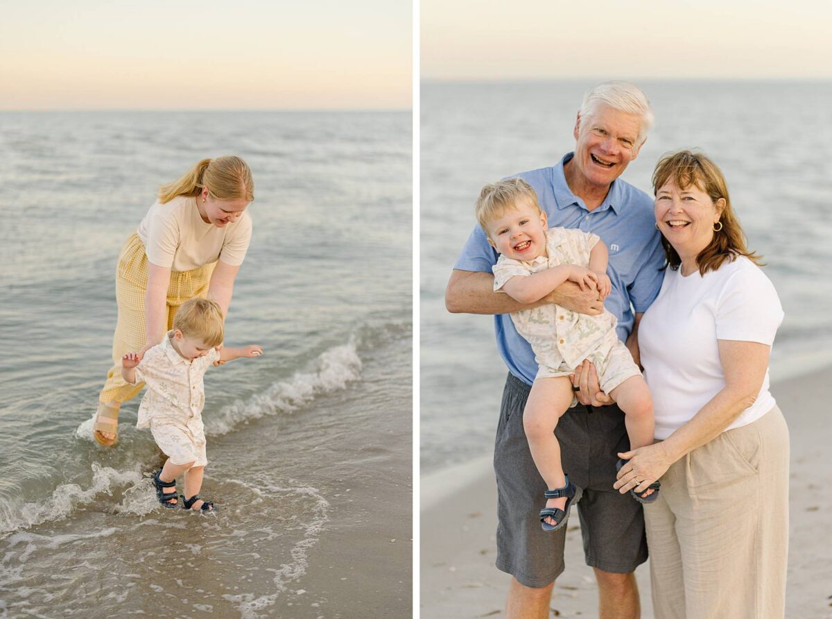 Jane and Gavin’s son was an absolute delight to photograph as he explored. There is something amazing about the beach when you are two. Everything feels larger than life with the waves gently rolling in, the sand between tiny toes, and the birds flying overhead. He was completely captivated by it all. Not only were there boats passing by, but dolphins were even playing close to shore! Beyond all of that, our highlight was photographing him as he laughed and snuggled with his grandparents. Capturing the bond between generations is truly such a gift. This sweet family was an absolute joy to serve once again, and we are so honored to be chosen to document this season of life for them. Moments like these are why we love what we do!