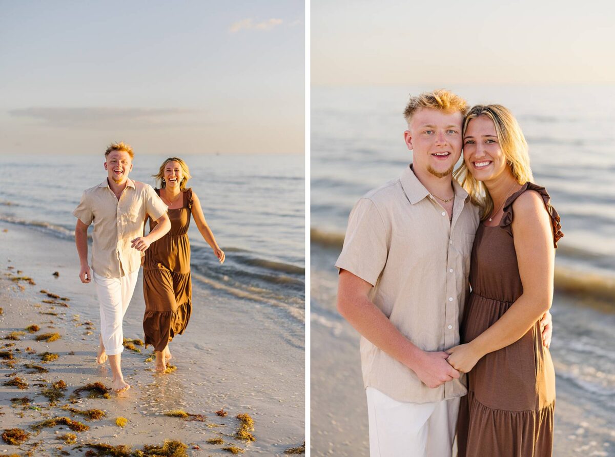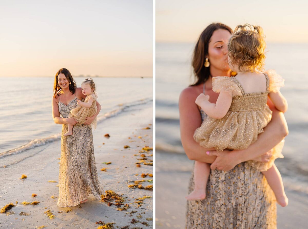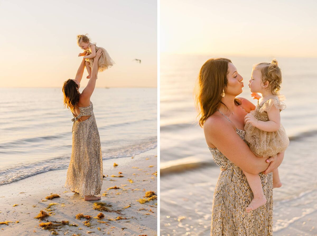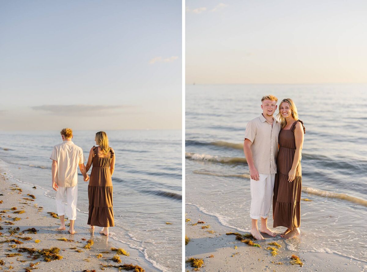 As we finished out the session, golden hour was absolute perfection. The sun wrapped the beach in a gorgeous warm glow, slowly shifting into soft pink and purple tones as it dipped below the horizon. Alyssa’s family chose outfits that complemented the setting flawlessly with blues, greens, browns, tans, and neutrals that blended beautifully with the sand and sea. As the sun set, we couldn’t help but reflect on how incredible it has been to photograph families in Florida. Capturing love, connection, and joy in a place as stunning as Fort Myers Beach is something we will never take for granted!