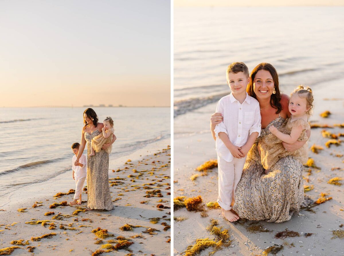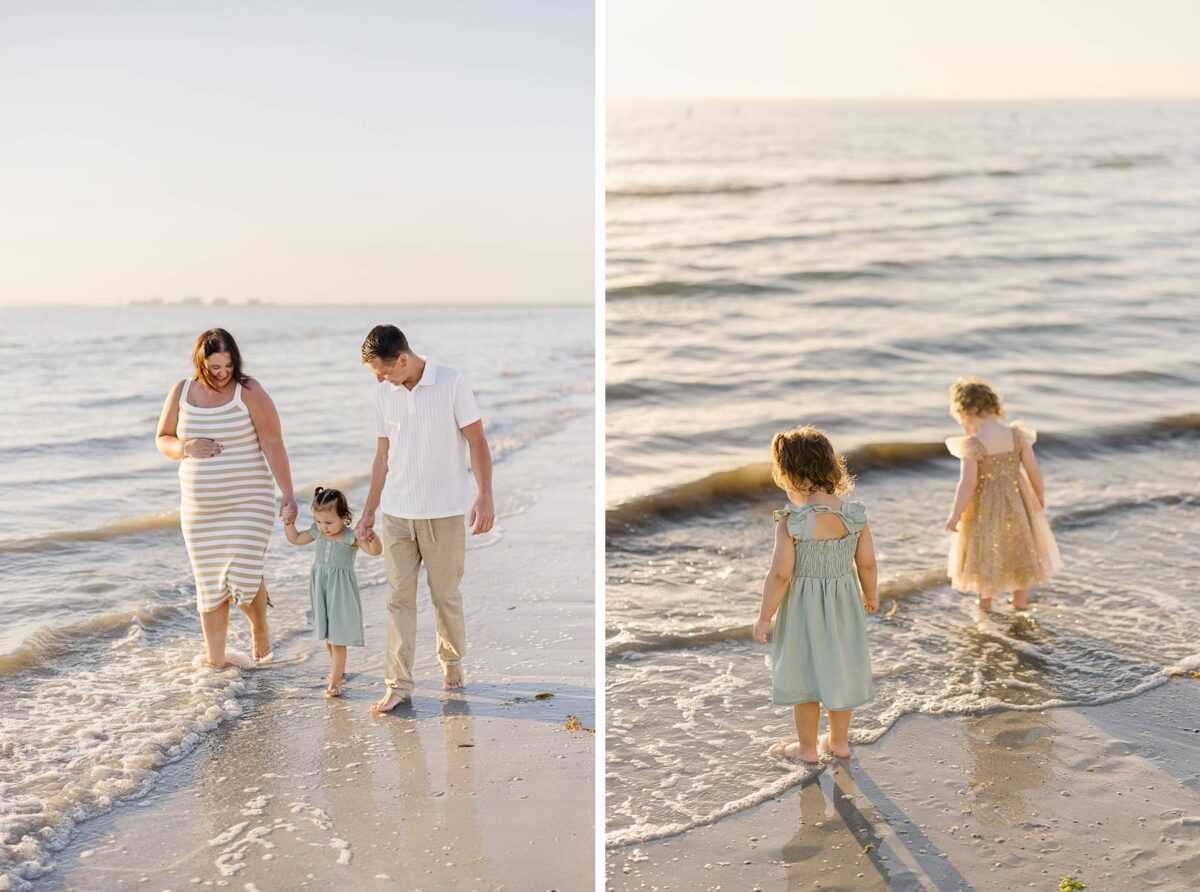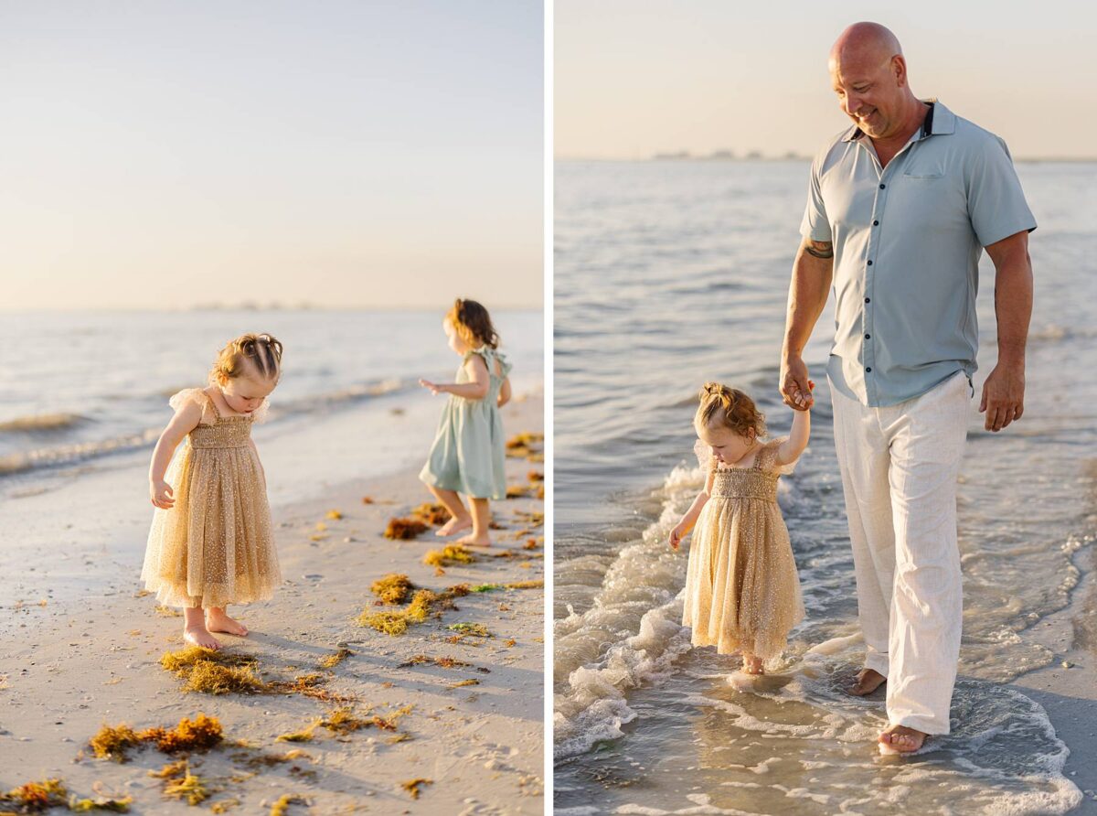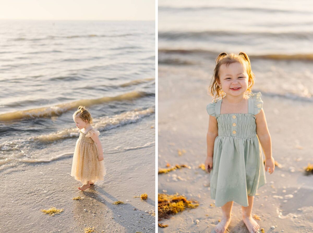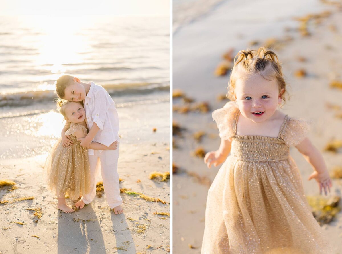 We began their session tucked among the palm trees, capturing photos of each group. There is something especially meaningful about photographing multiple generations. Watching great-grandparents, and grandparents with their kids and grandkids soaking enjoying this short but sweet season of life together is always such a gift. We could hardly believe how much the kids had grown in just one year! As we made our way out onto the beach, the kids had a blast running, splashing, and playing in the waves, completely carefree. The water, tiny shells, and the endless stretch of sand felt simply magical, and there is nothing quite like the beach through a child’s eyes!
