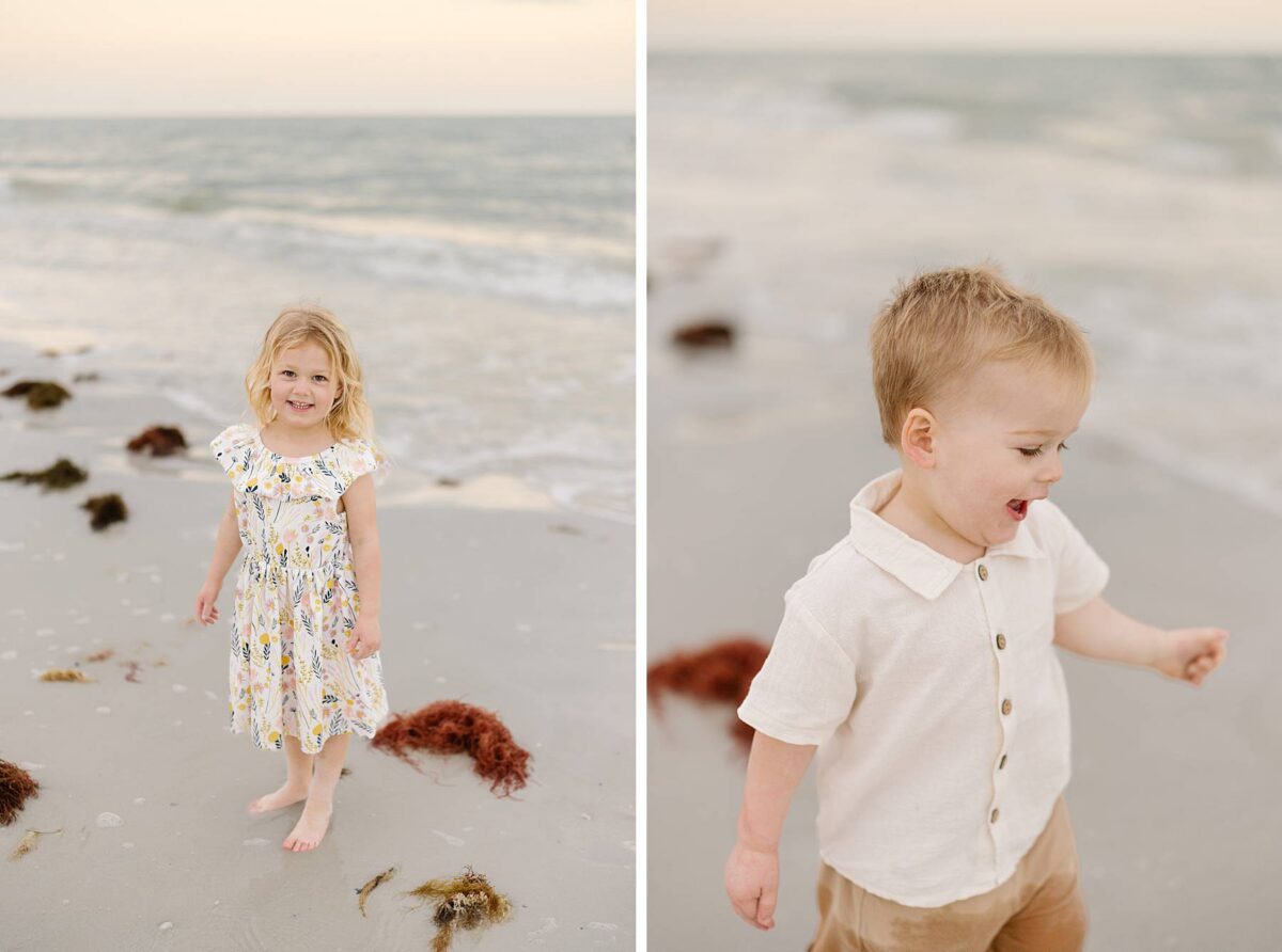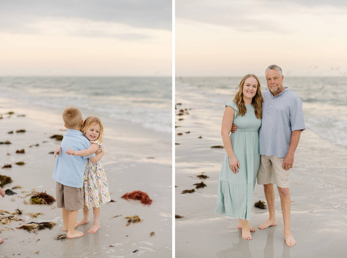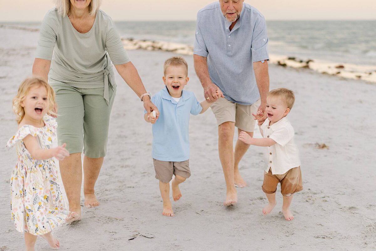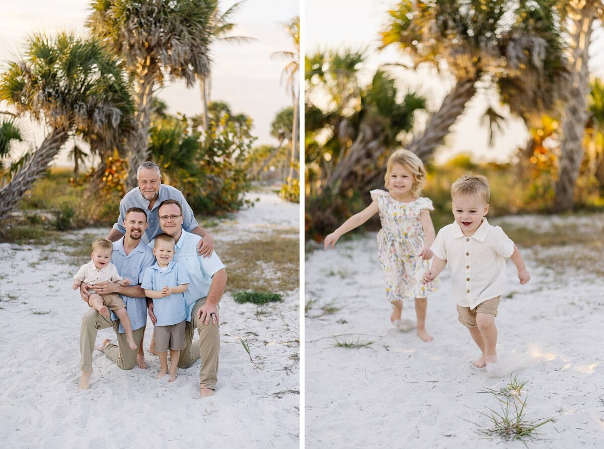 Sunsets on Fort Myers Beach never disappoint, and this evening was no exception. The soft warm light created a gorgeous glowing backdrop as we captured candid moments by the water’s edge. One of our favorite things about photographing sessions at Bowditch Point Park is that it offers the perfect mix of coastal greenery and wide open shoreline. Watching Jenny’s parents run down the beach hand in hand with their giggling grandkids was definitely of the sweetest parts of the evening! We are always so grateful to capture these memories for families vacationing in Florida.