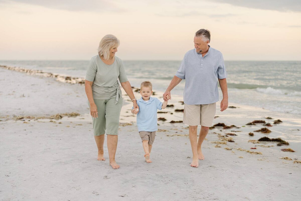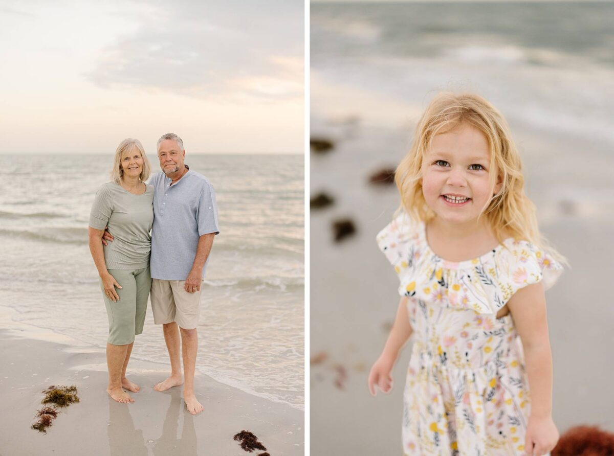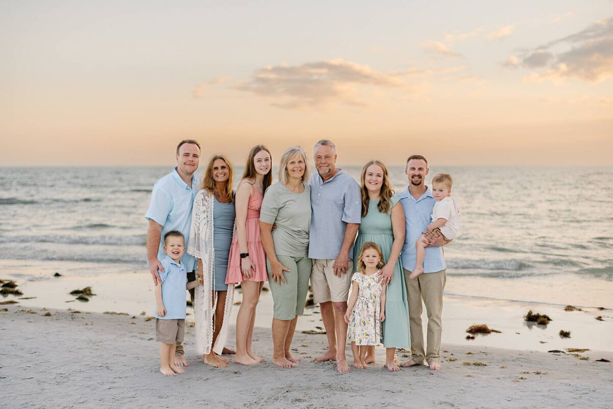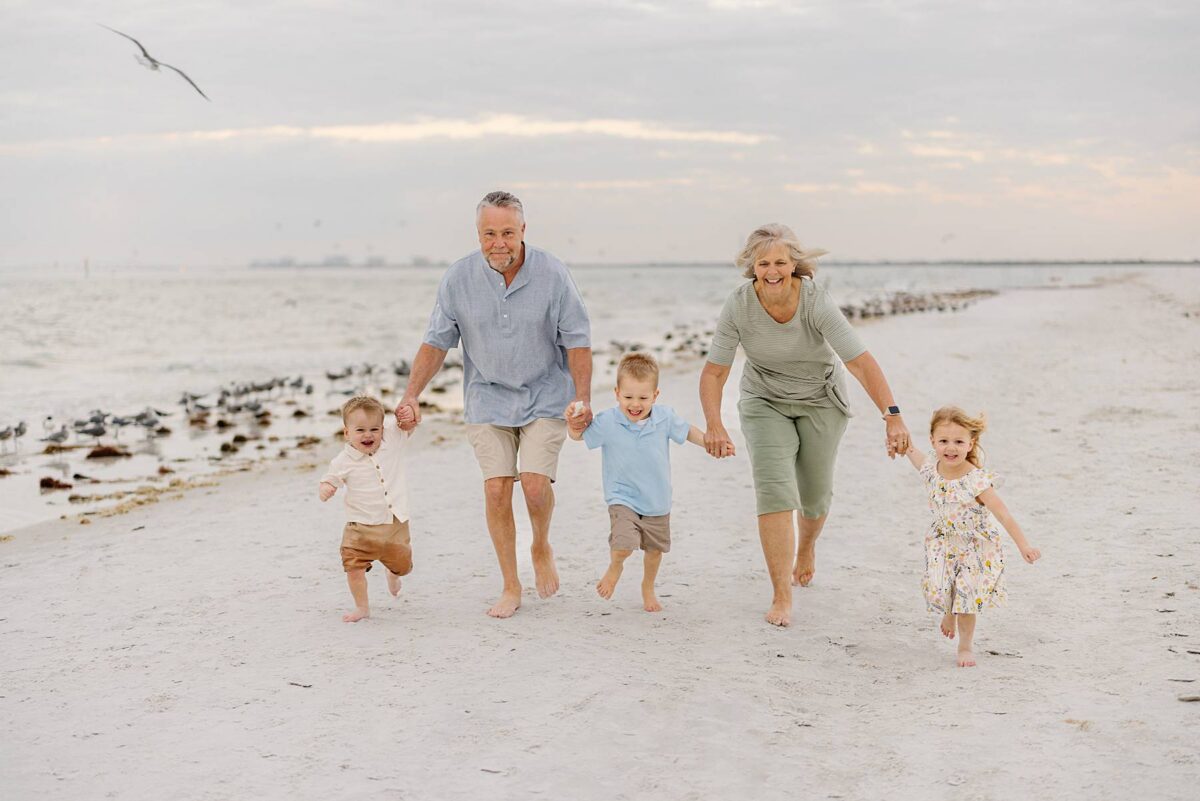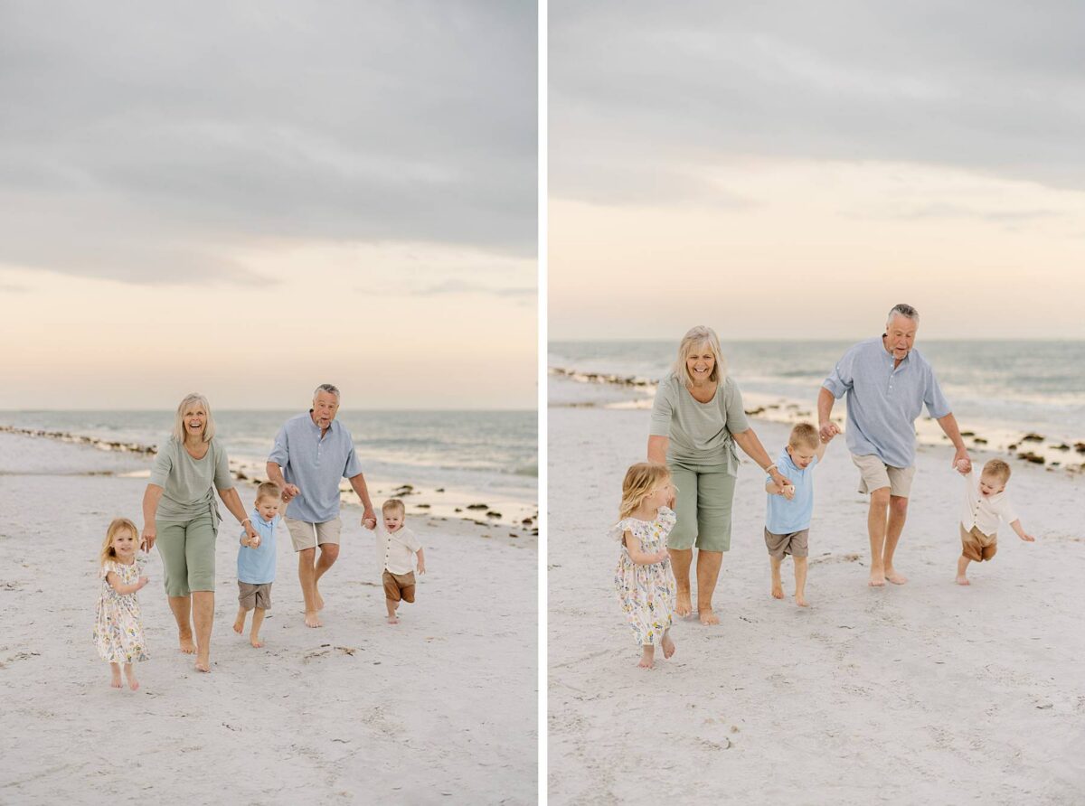 Sunsets on Fort Myers Beach never disappoint, and this evening was no exception. The soft warm light created a gorgeous glowing backdrop as we captured candid moments by the water’s edge. One of our favorite things about photographing sessions at Bowditch Point Park is that it offers the perfect mix of coastal greenery and wide open shoreline. Watching Jenny’s parents run down the beach hand in hand with their giggling grandkids was definitely of the sweetest parts of the evening! We are always so grateful to capture these memories for families vacationing in Florida.