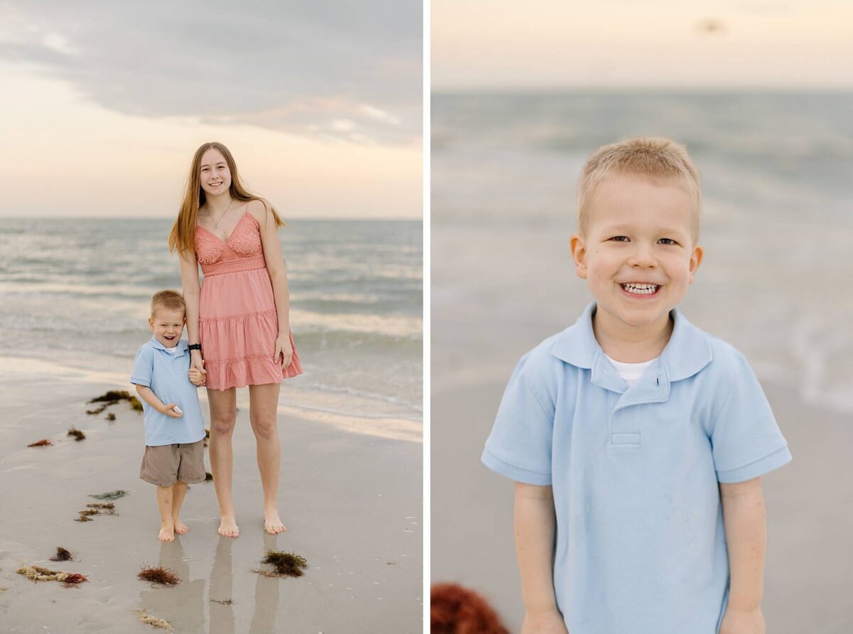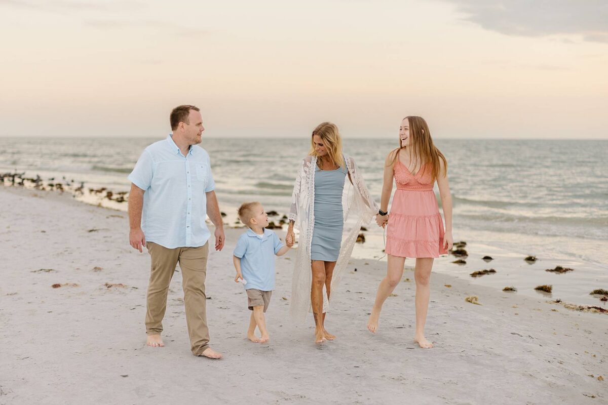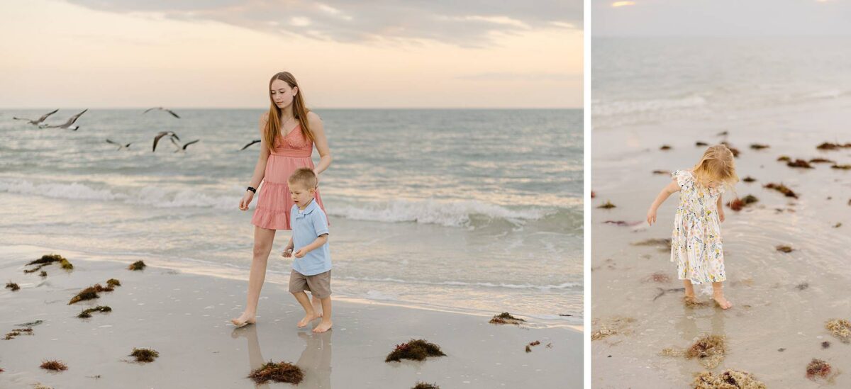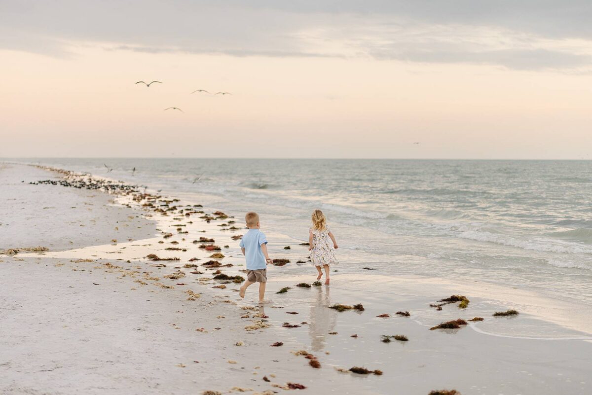 We remember our first visit to Fort Myers Beach, FL like it was yesterday. At the time, we could have never imagined that one day we would be photographing destination portrait sessions in Southwest Florida, serving couples and families seasonally out of two states! We are always so grateful to connect with so many amazing families as they experience the beauty of the sunshine state. Jenny’s family had travelled down from Minnesota, and it was their kids’ very first time seeing the ocean. Documenting their reactions as they discovered the beach was such a sweet reminder of why we love what we do! The excitement on their faces as they stepped out onto the sand, hunted for shells, and chased after the birds was priceless.